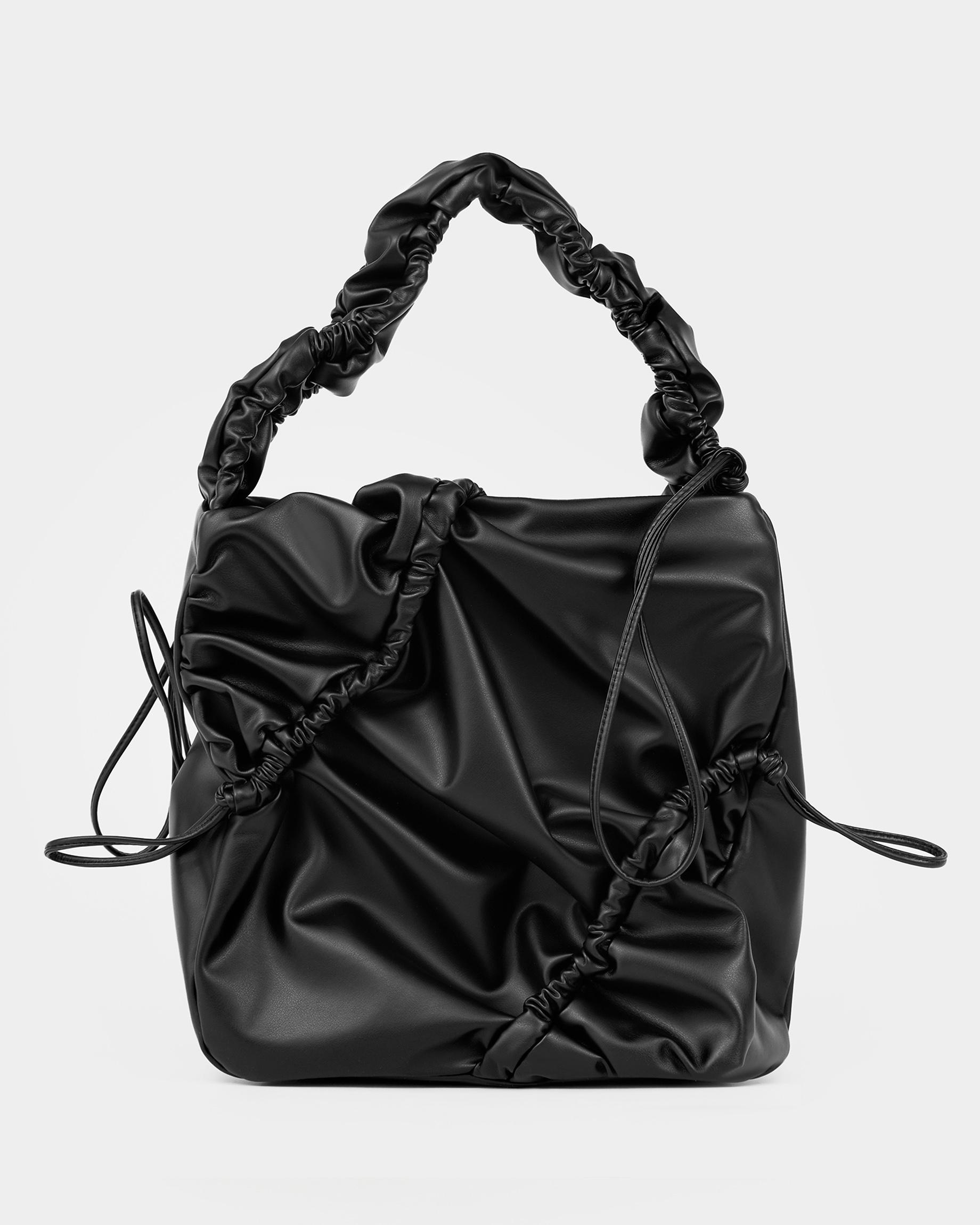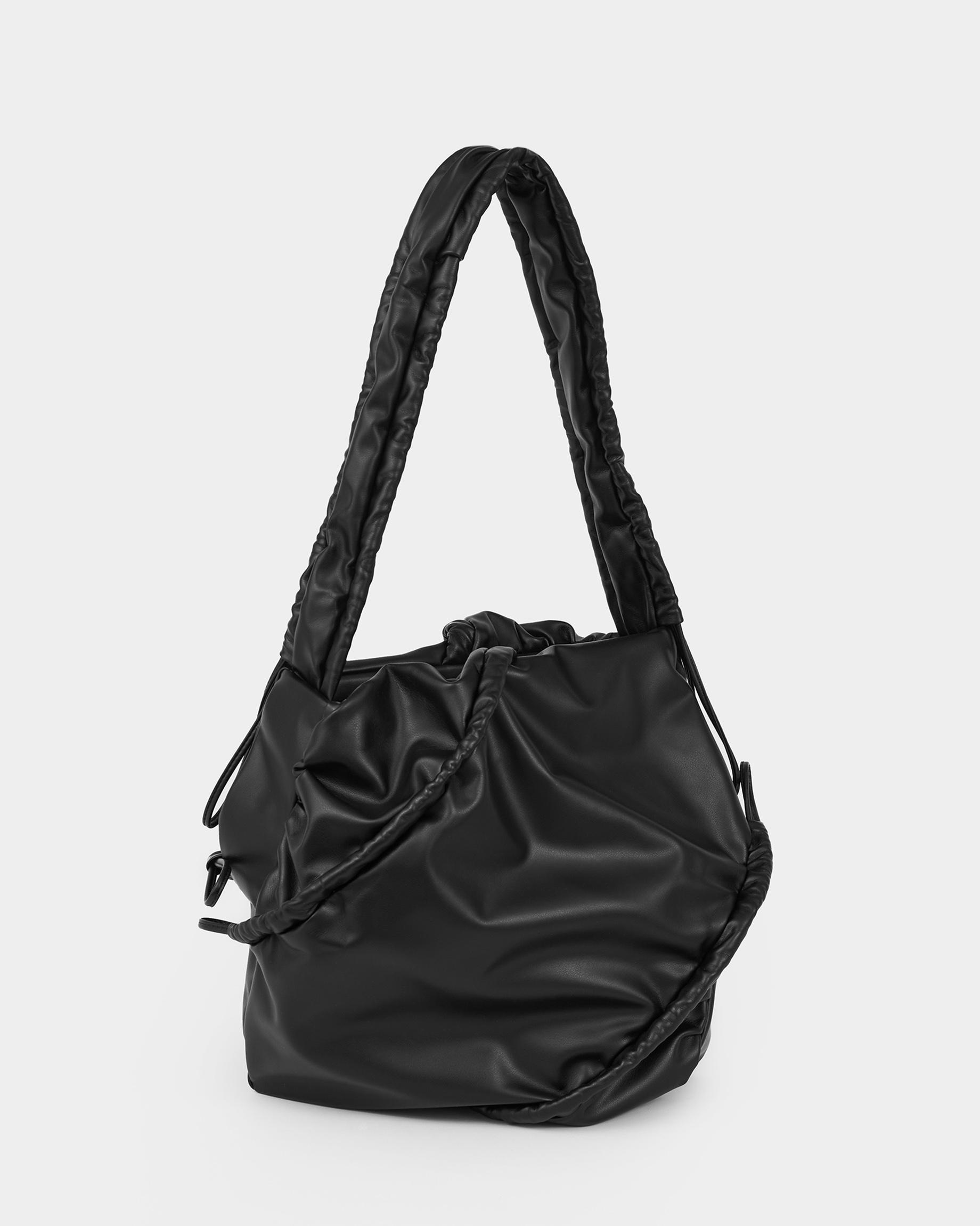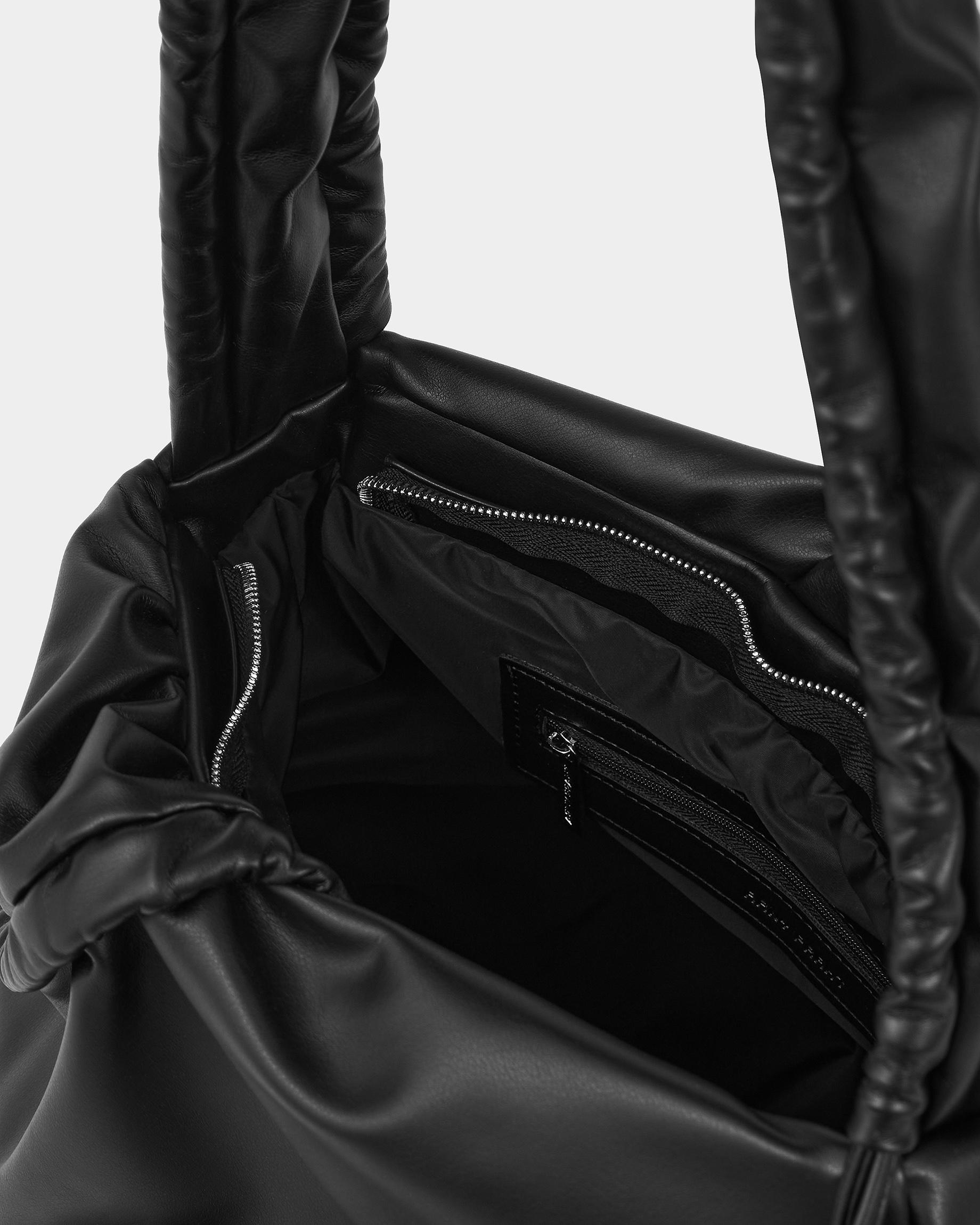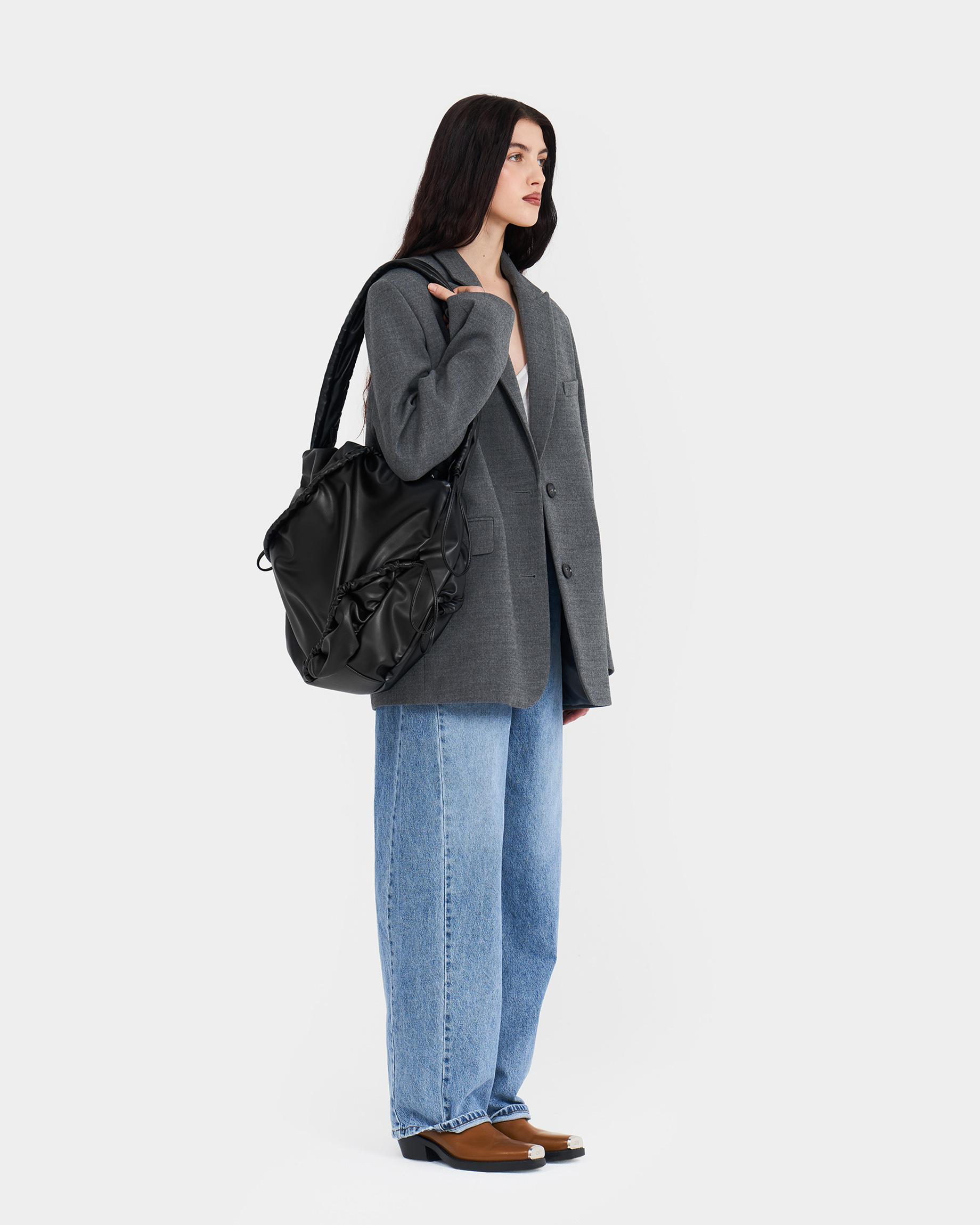 Мягкая сумка-шоппер со сборками в черном цвете