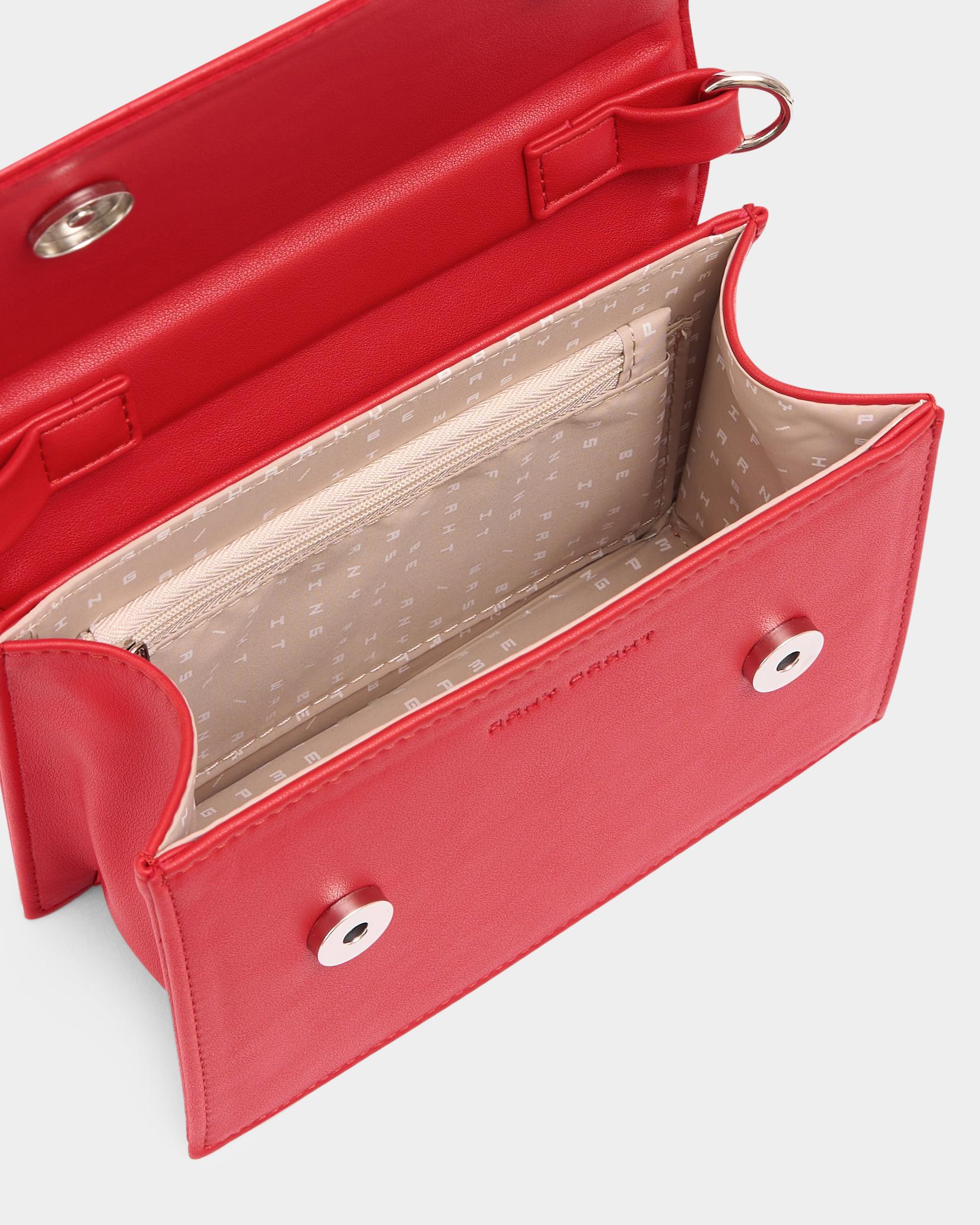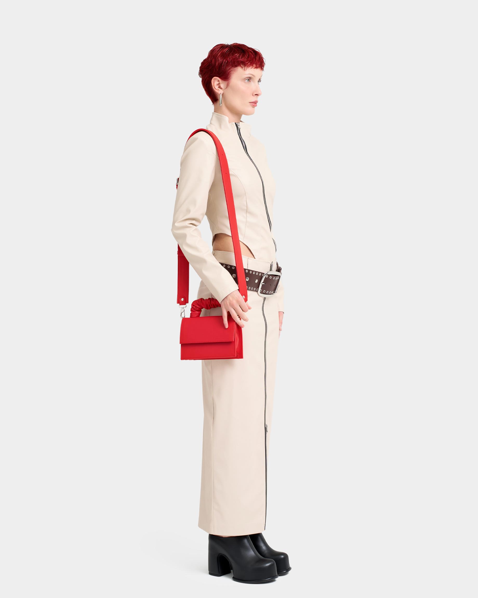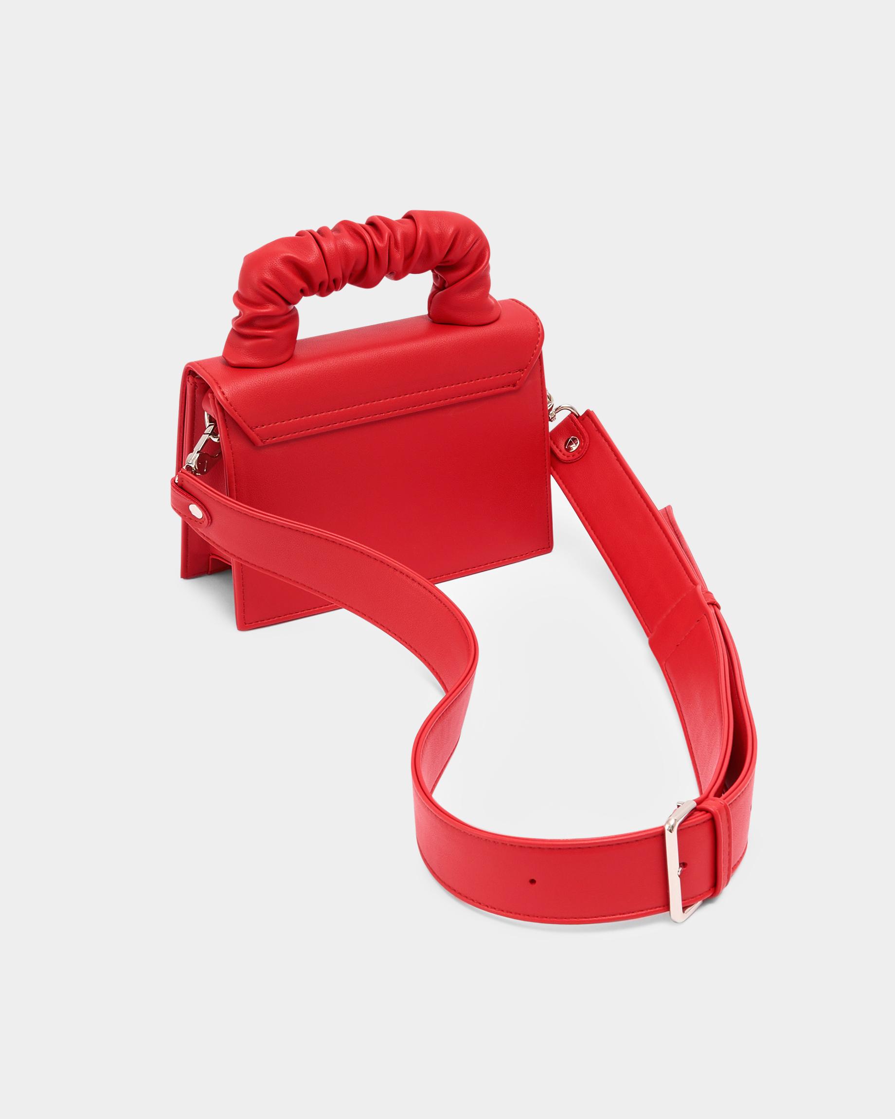 Маленькая сумка с широким ремнем в красном цвете