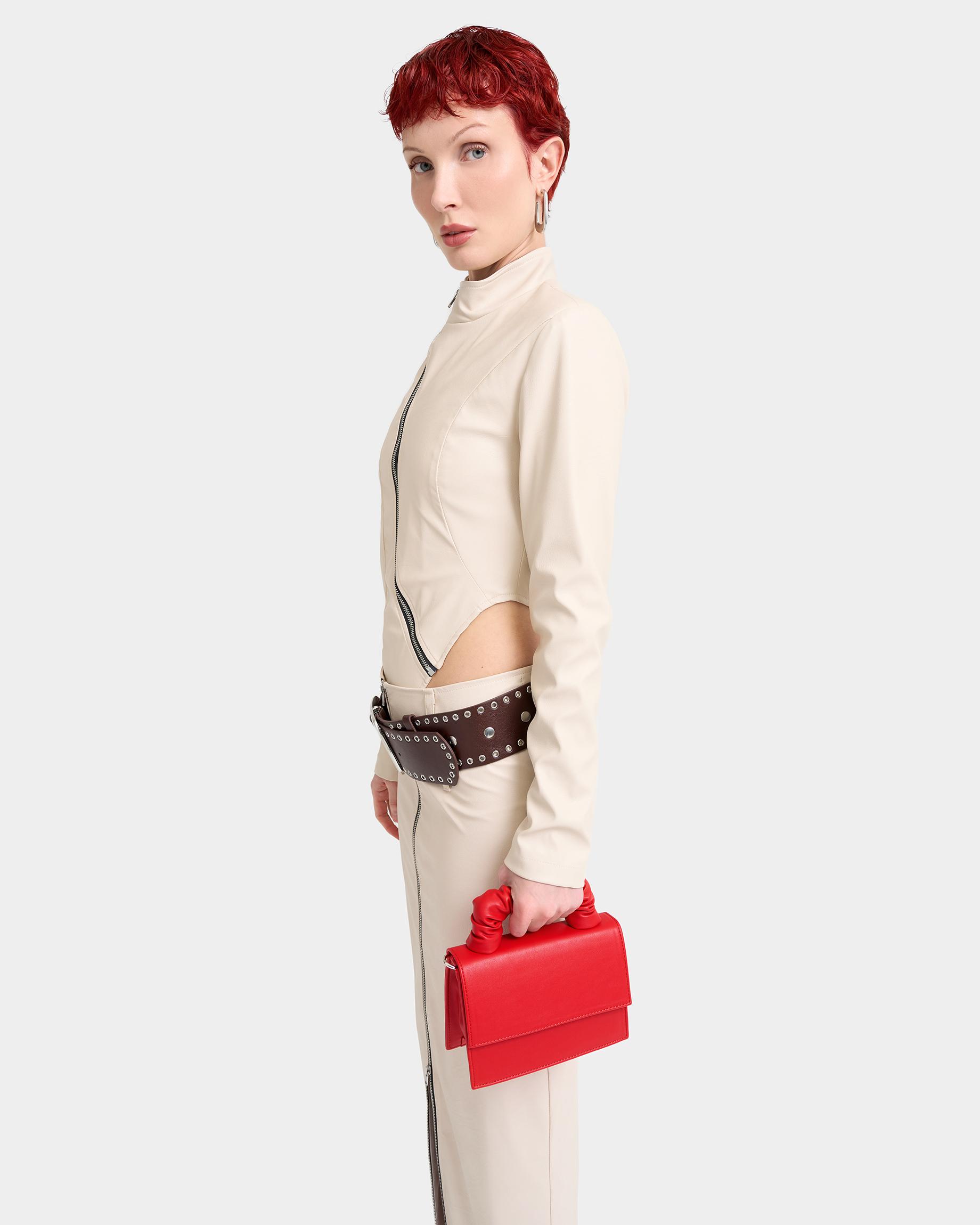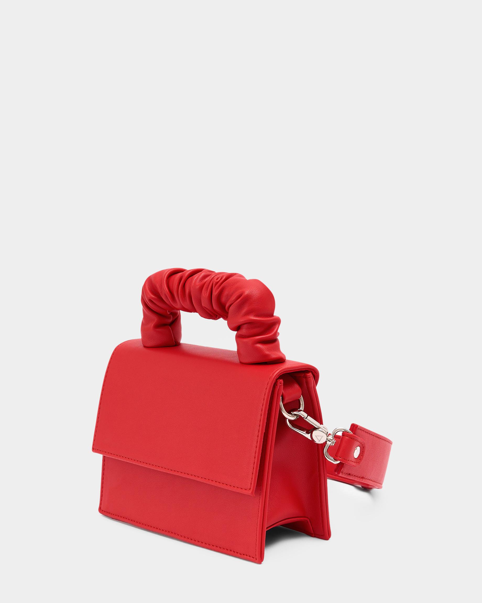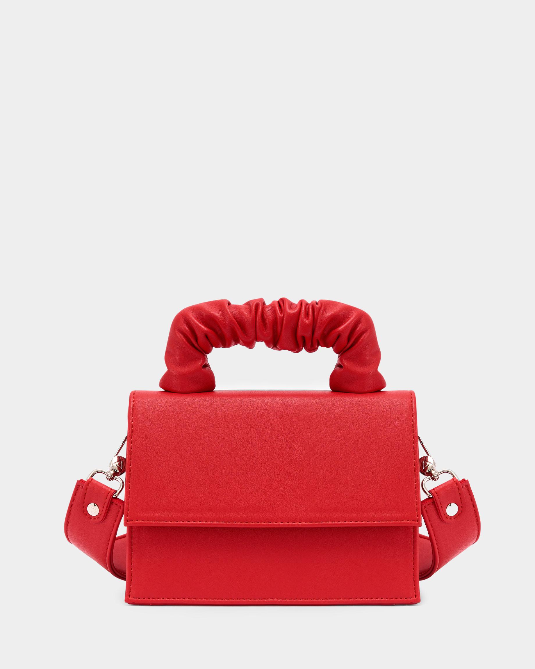 Маленькая сумка с широким ремнем в красном цвете