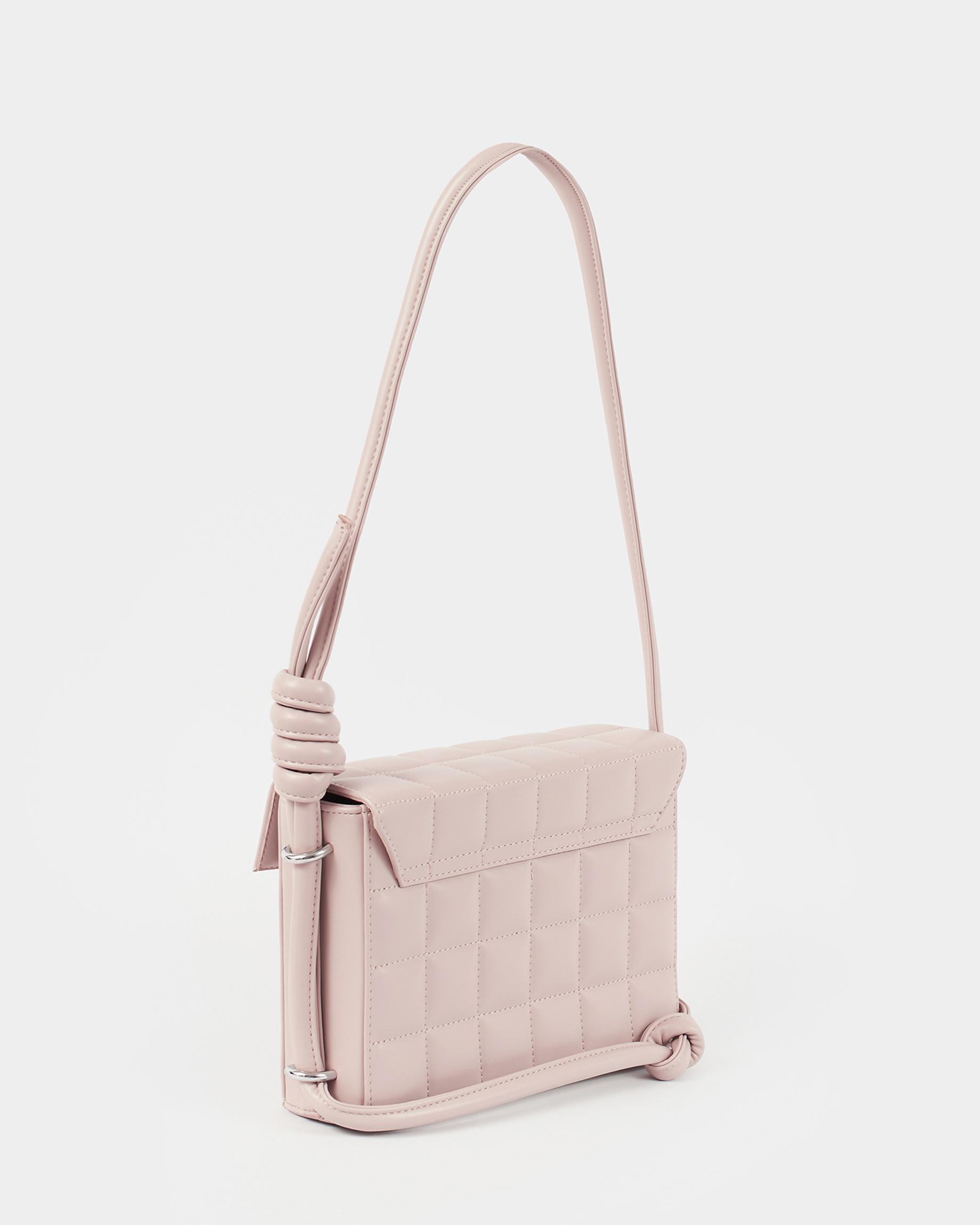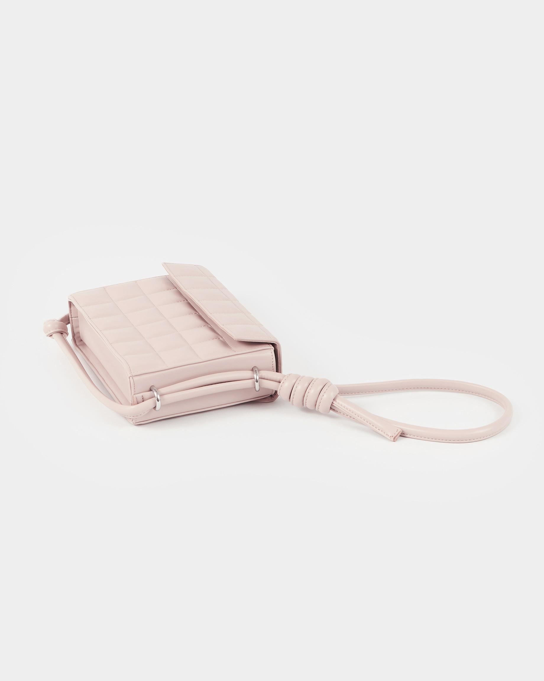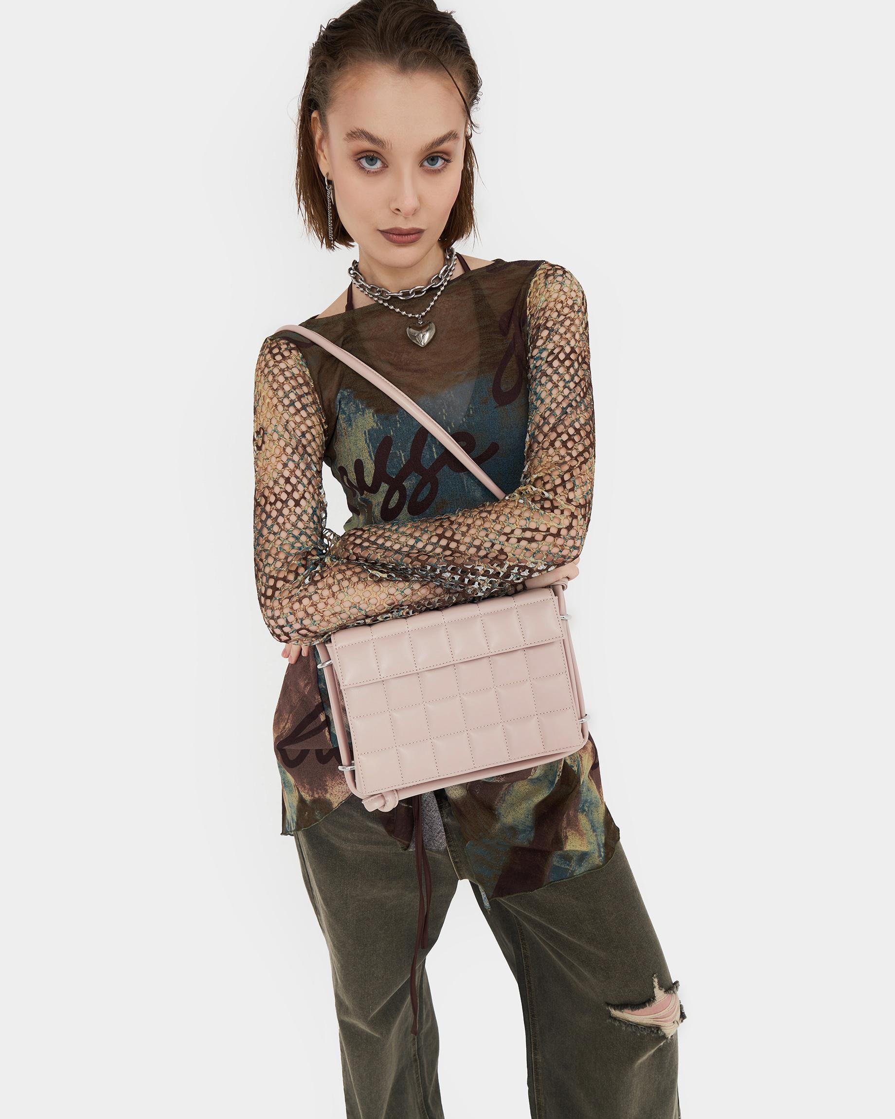 Стёганая прямоугольная каркасная сумка с тонким ремнем в виде жгута в цвете нюд