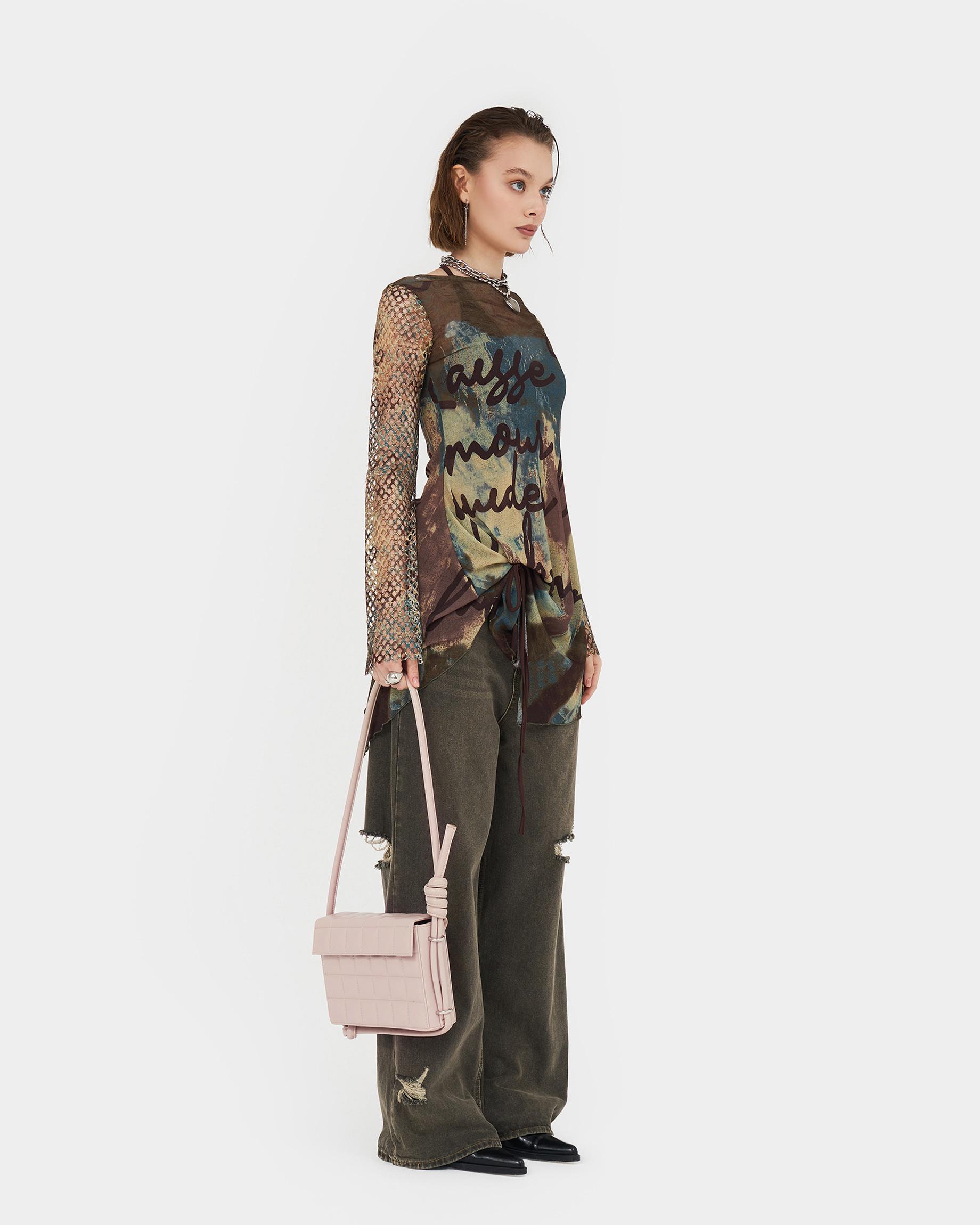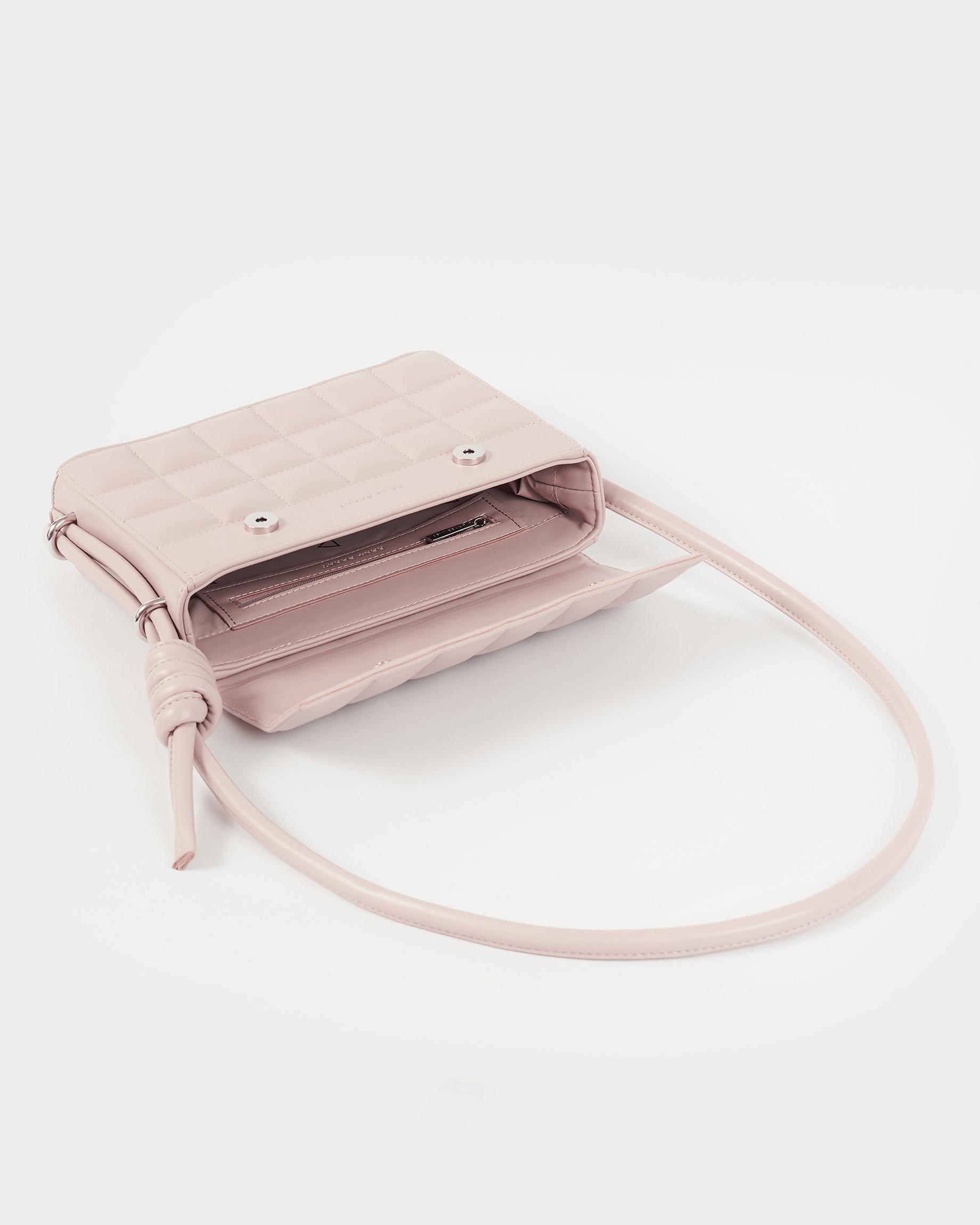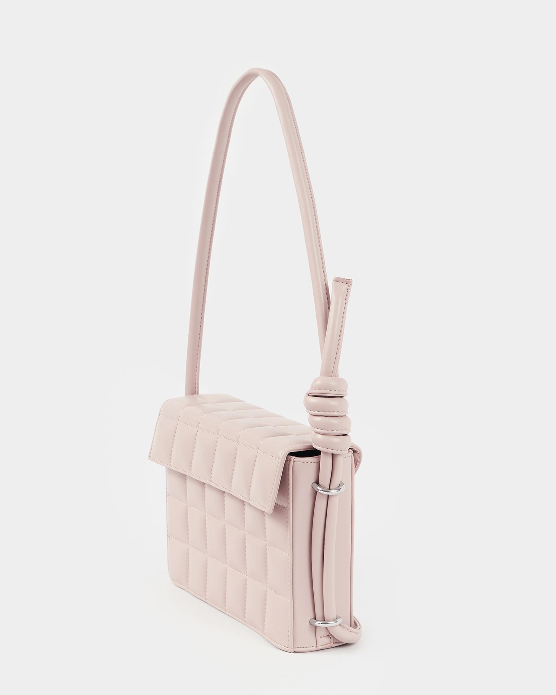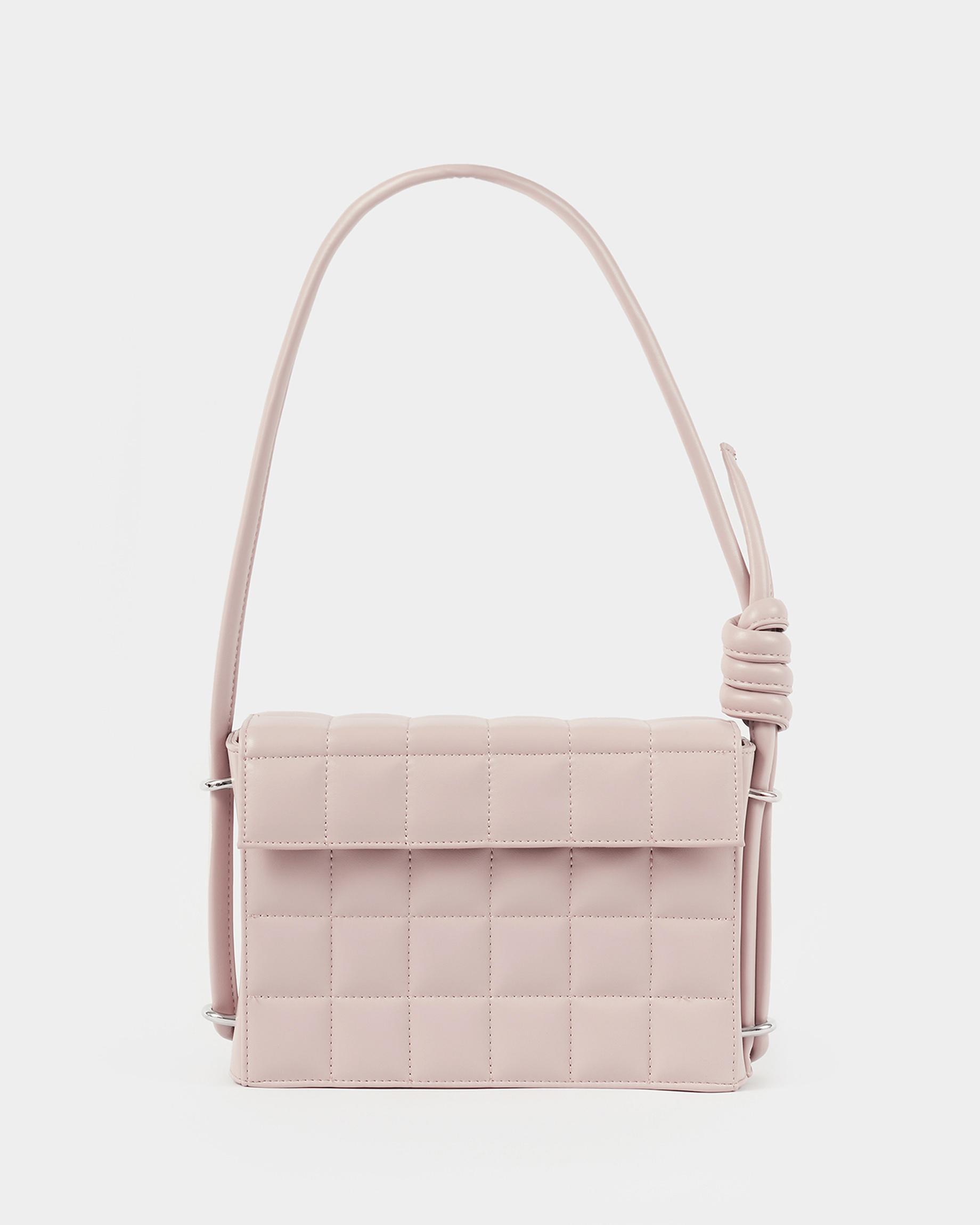 Стёганая прямоугольная каркасная сумка с тонким ремнем в виде жгута в цвете нюд