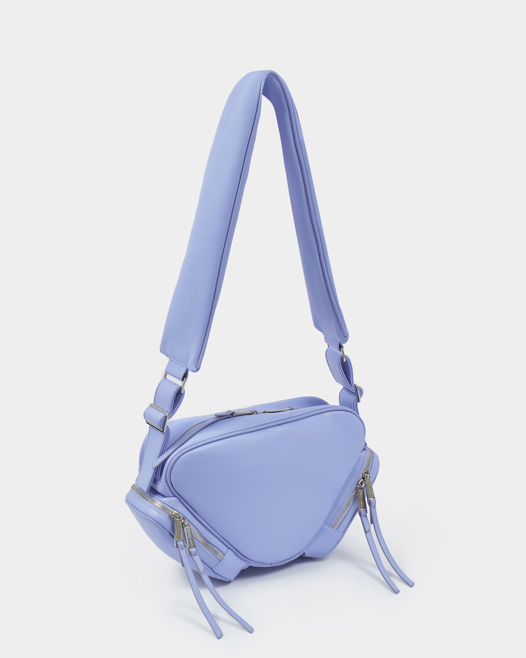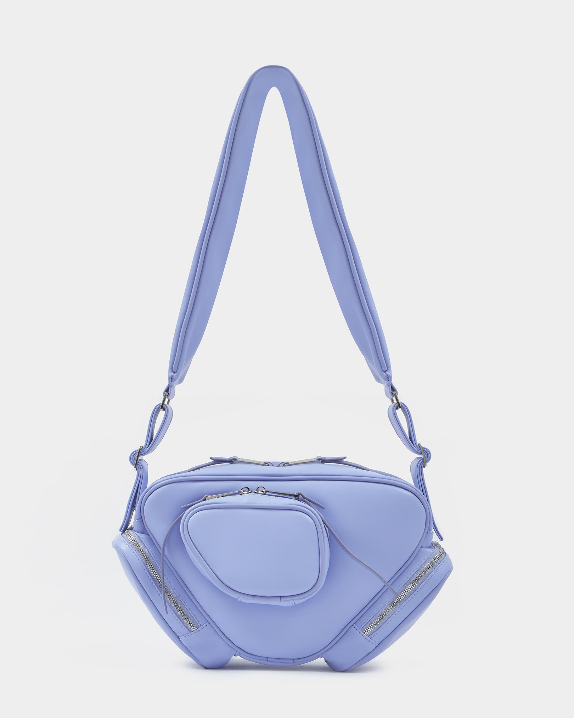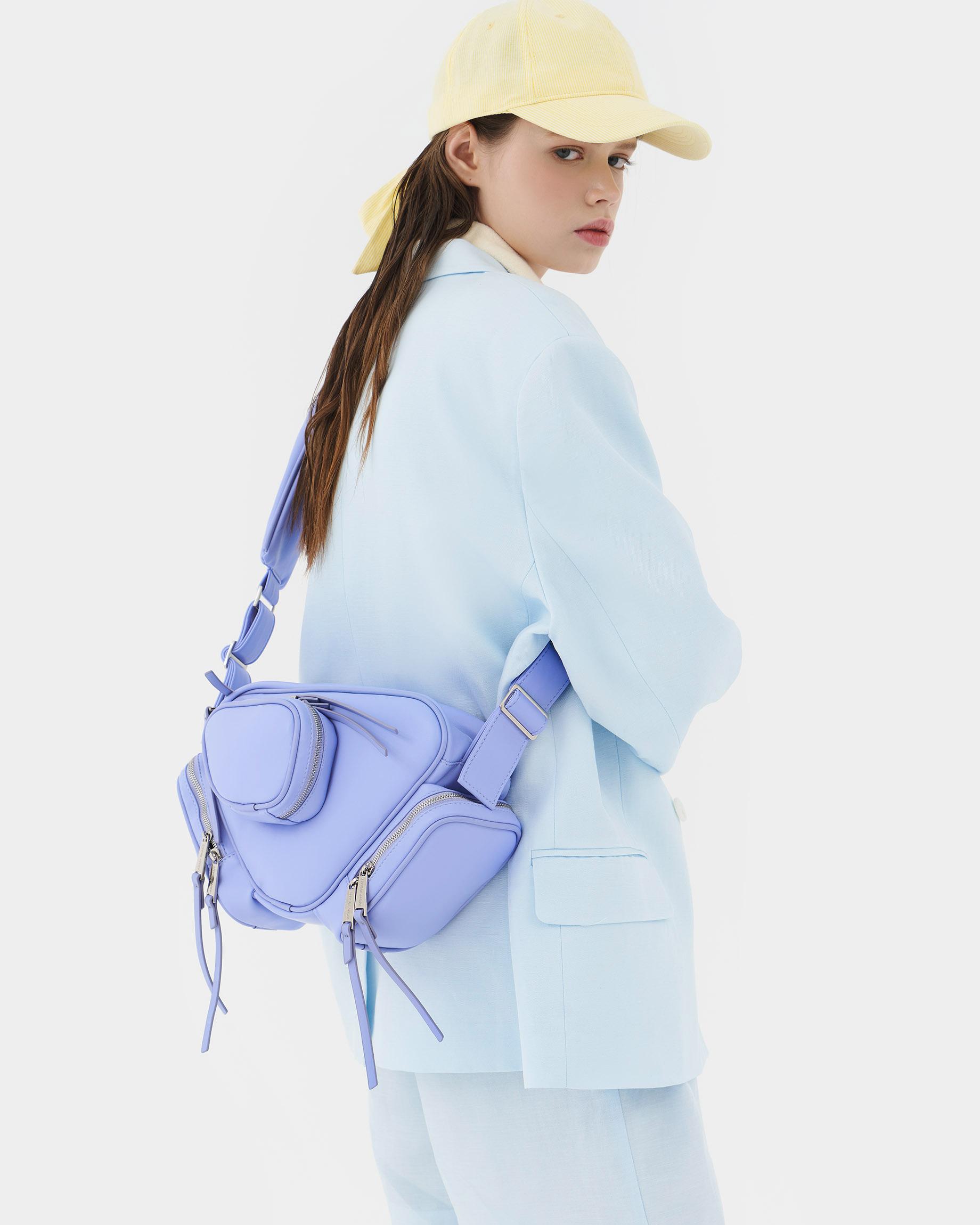 Сумка треугольной формы с объёмными накладными карманами в цвете голубая матча