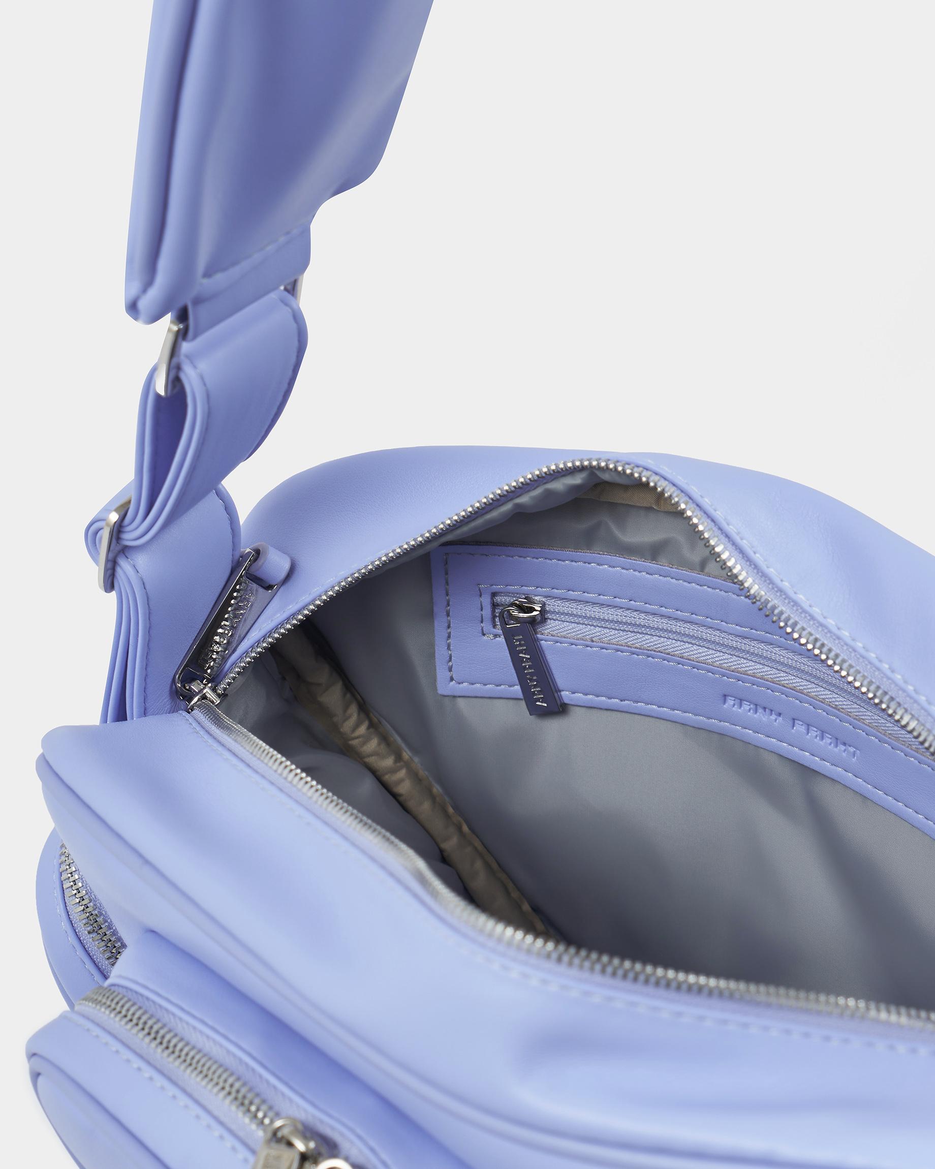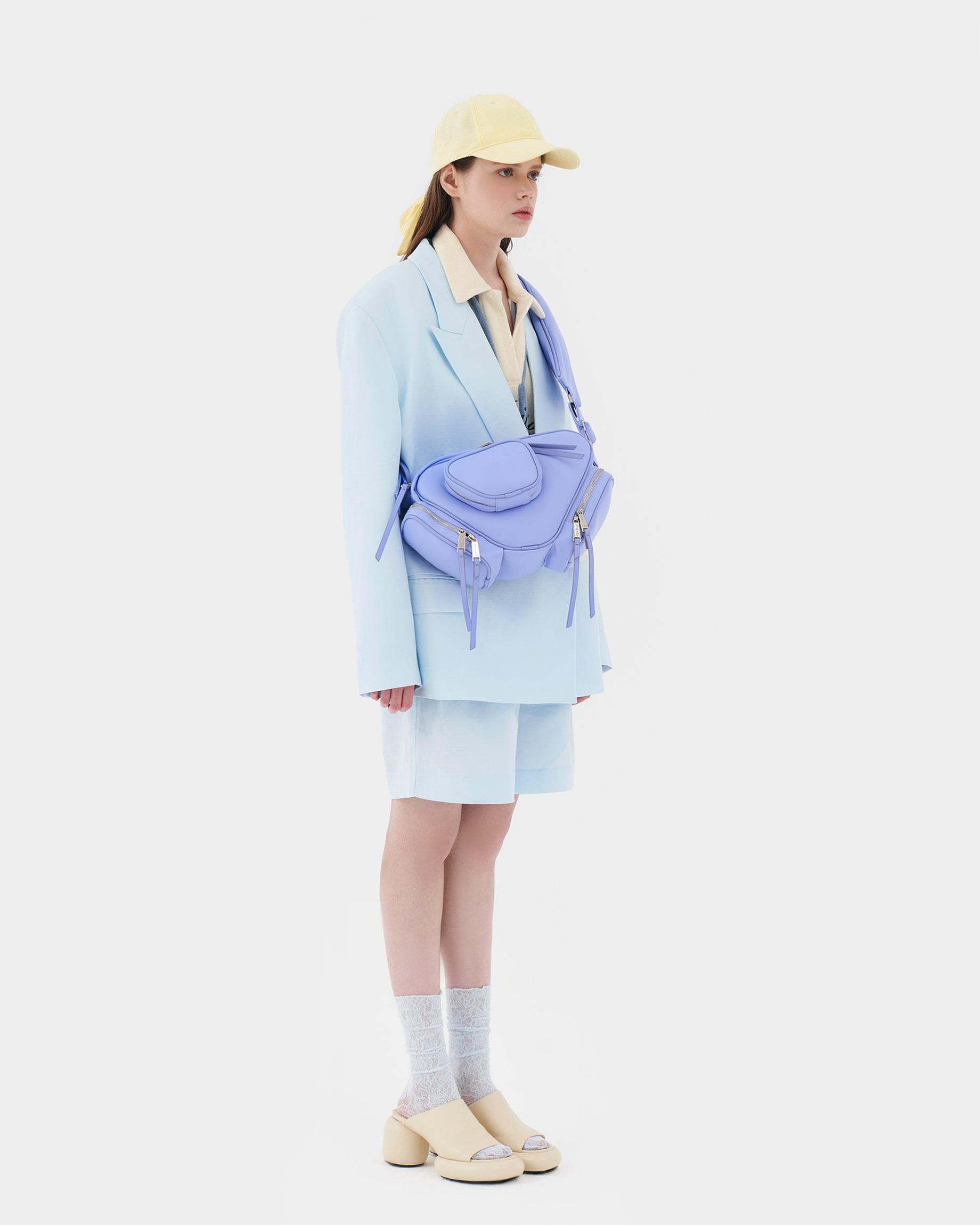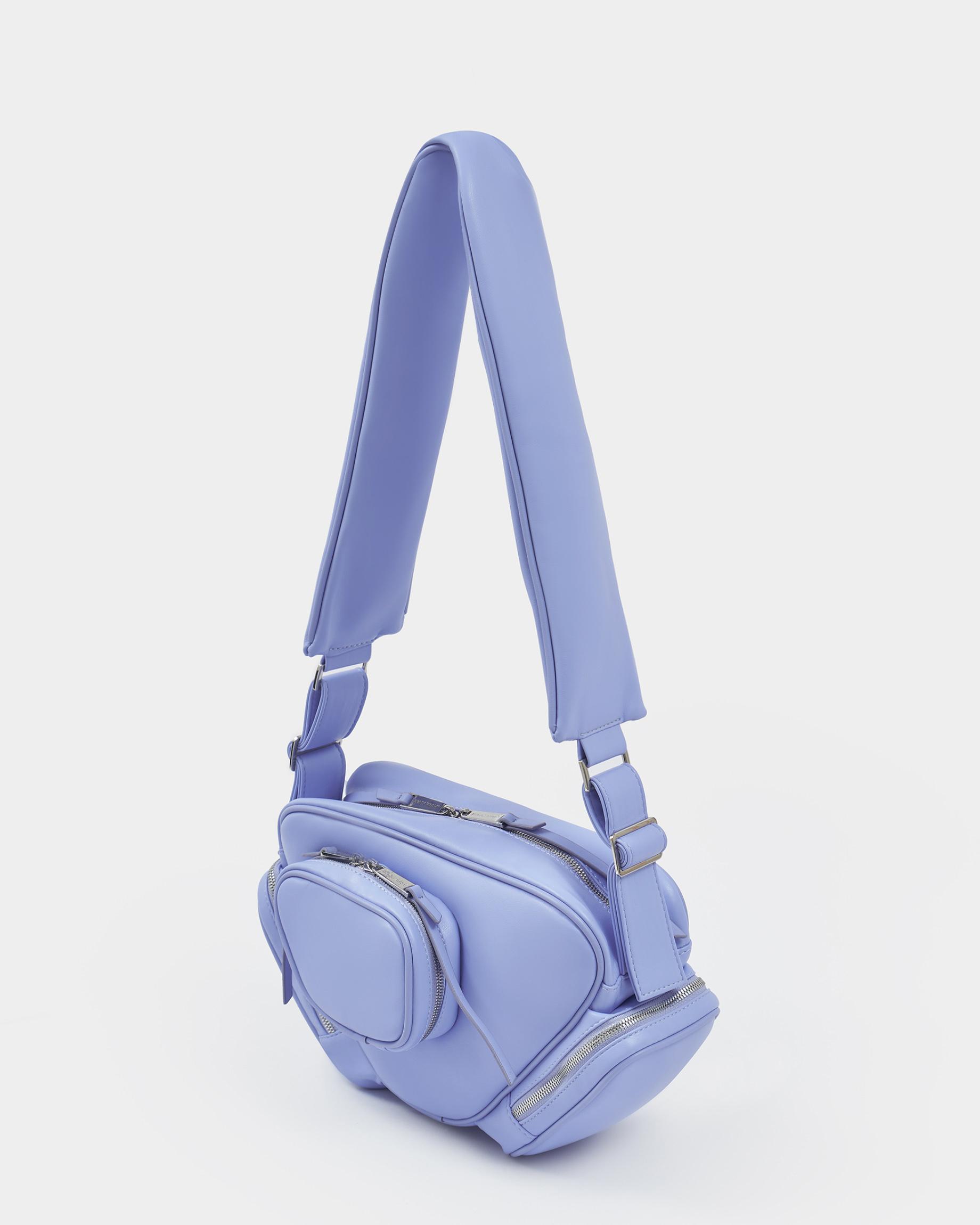 Сумка треугольной формы с объёмными накладными карманами в цвете голубая матча