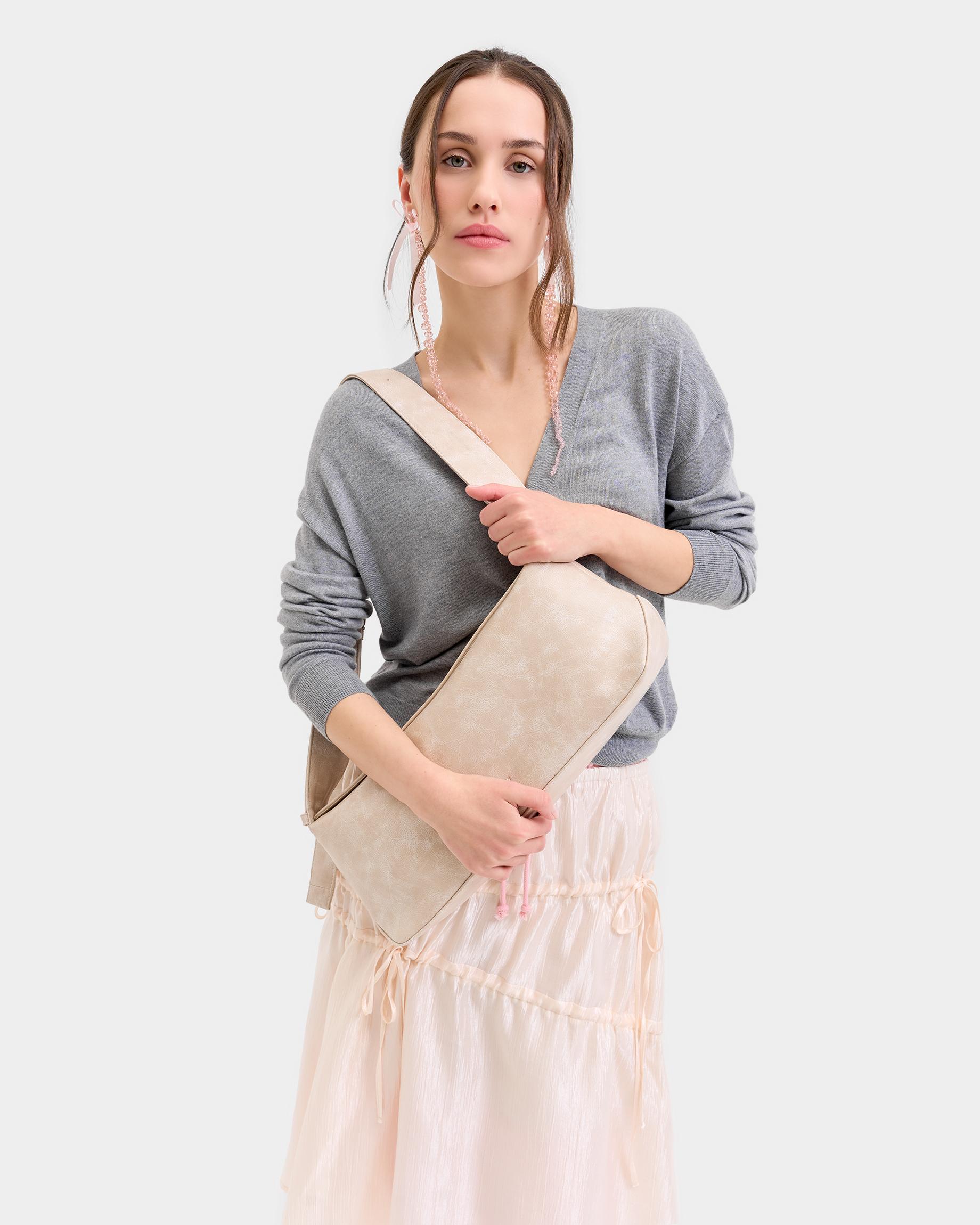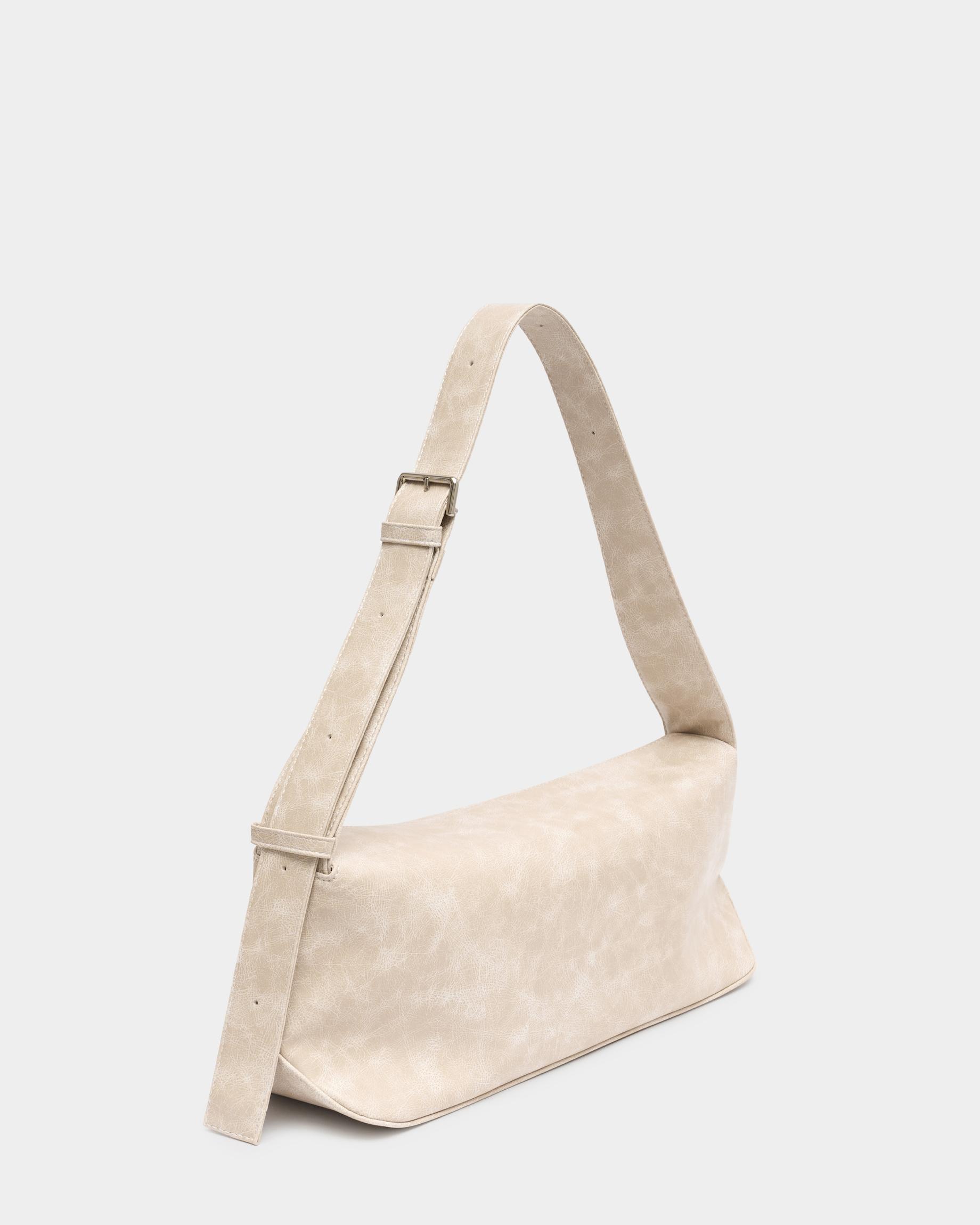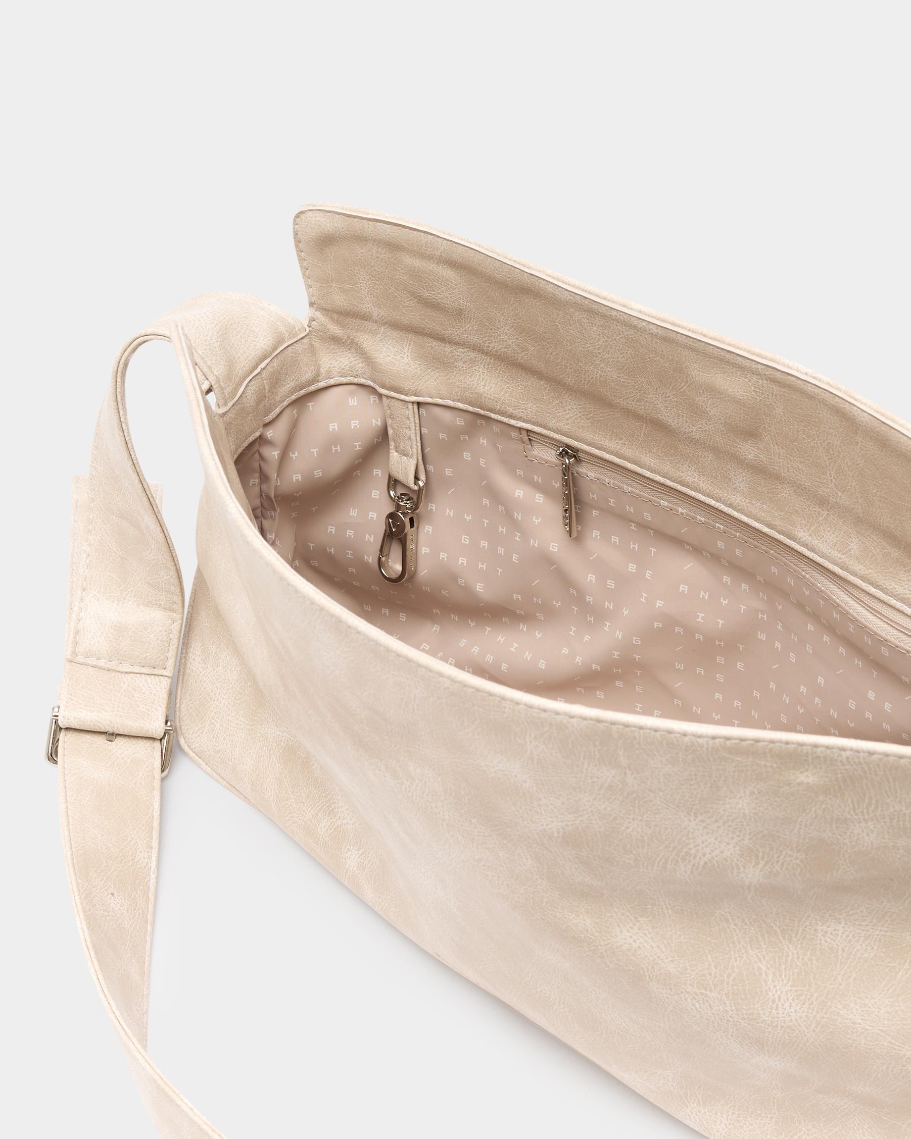 Небольшая прямоугольная мягкая сумка из экокожи в цвете кремовый кракле с регулируемым ремнем