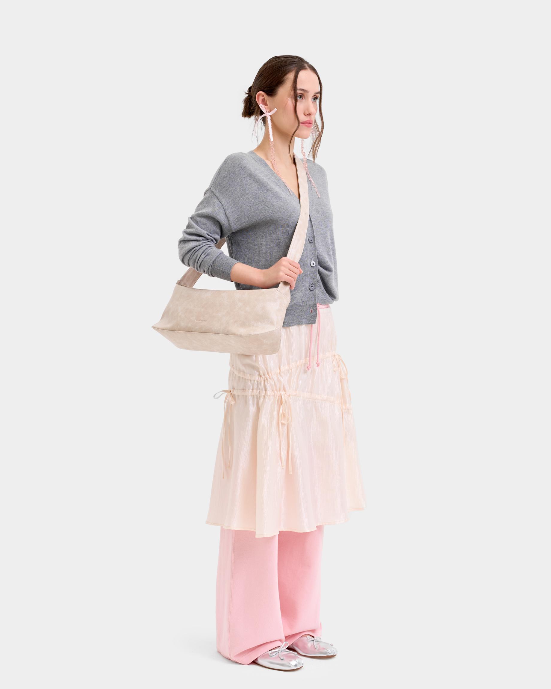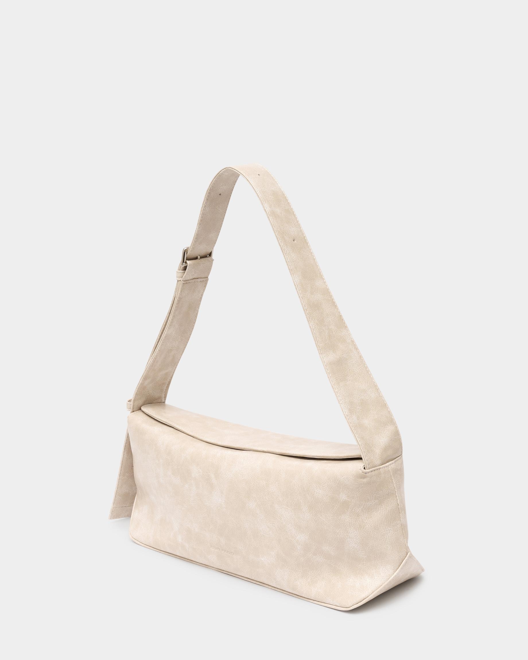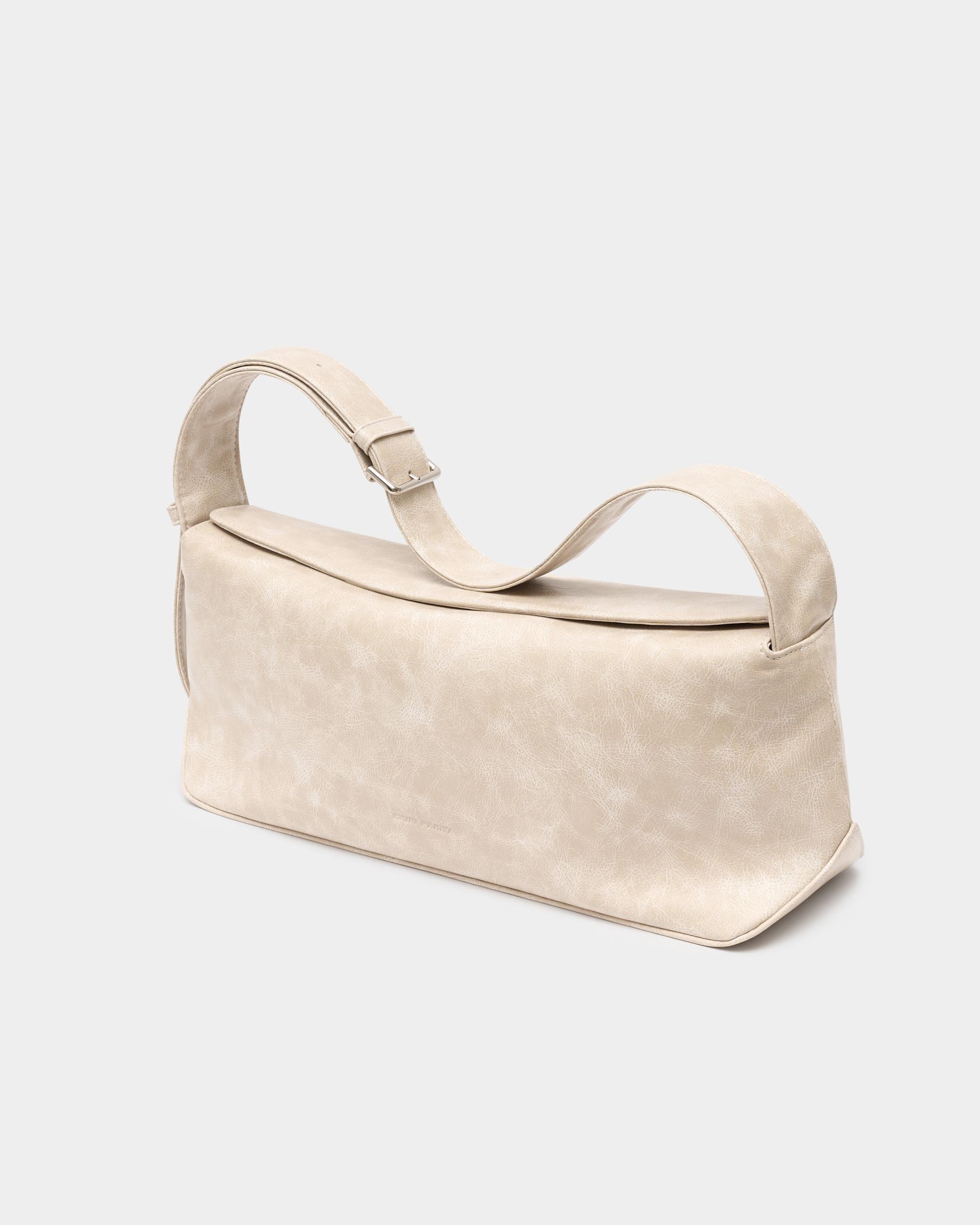 Небольшая прямоугольная мягкая сумка из экокожи в цвете кремовый кракле с регулируемым ремнем