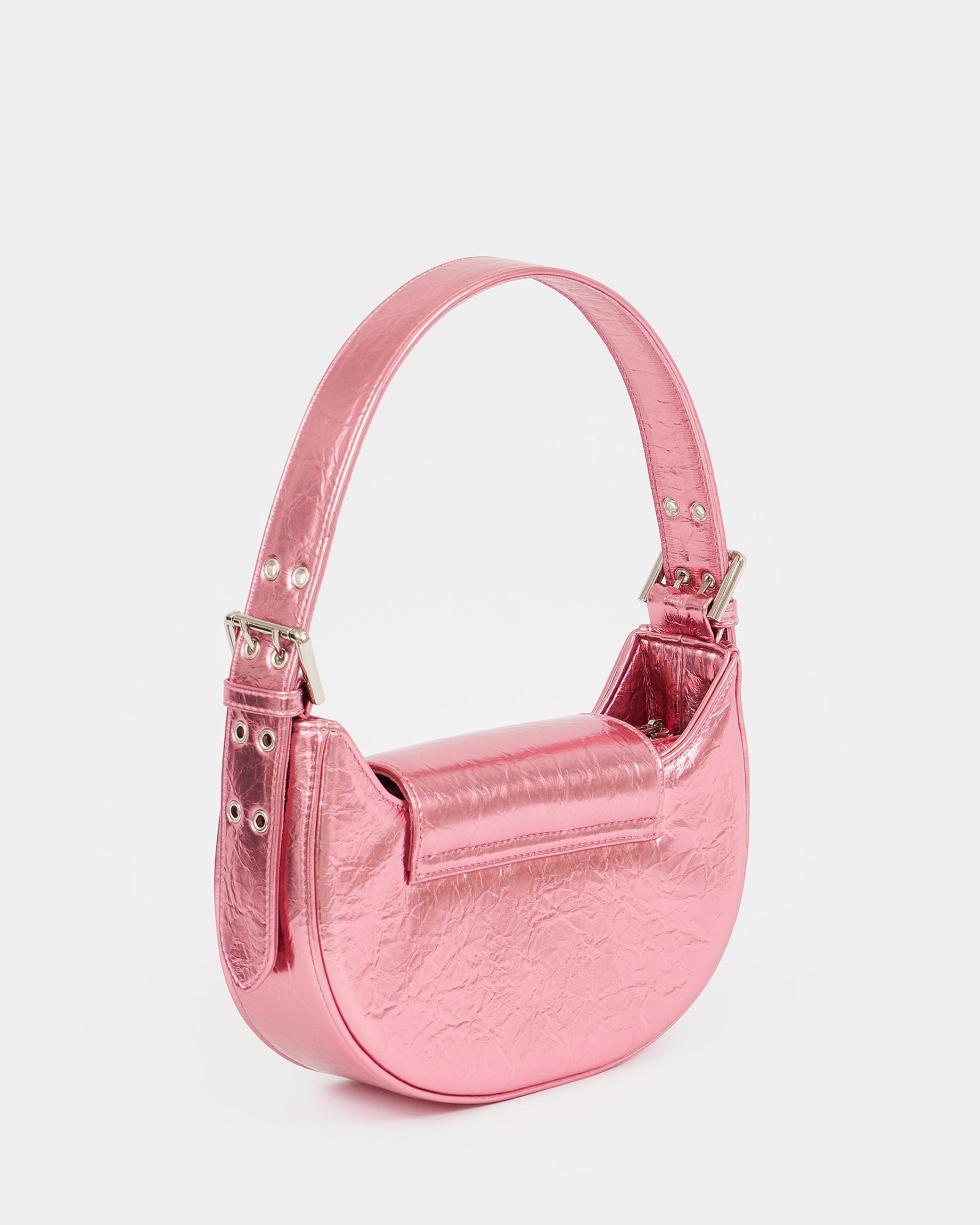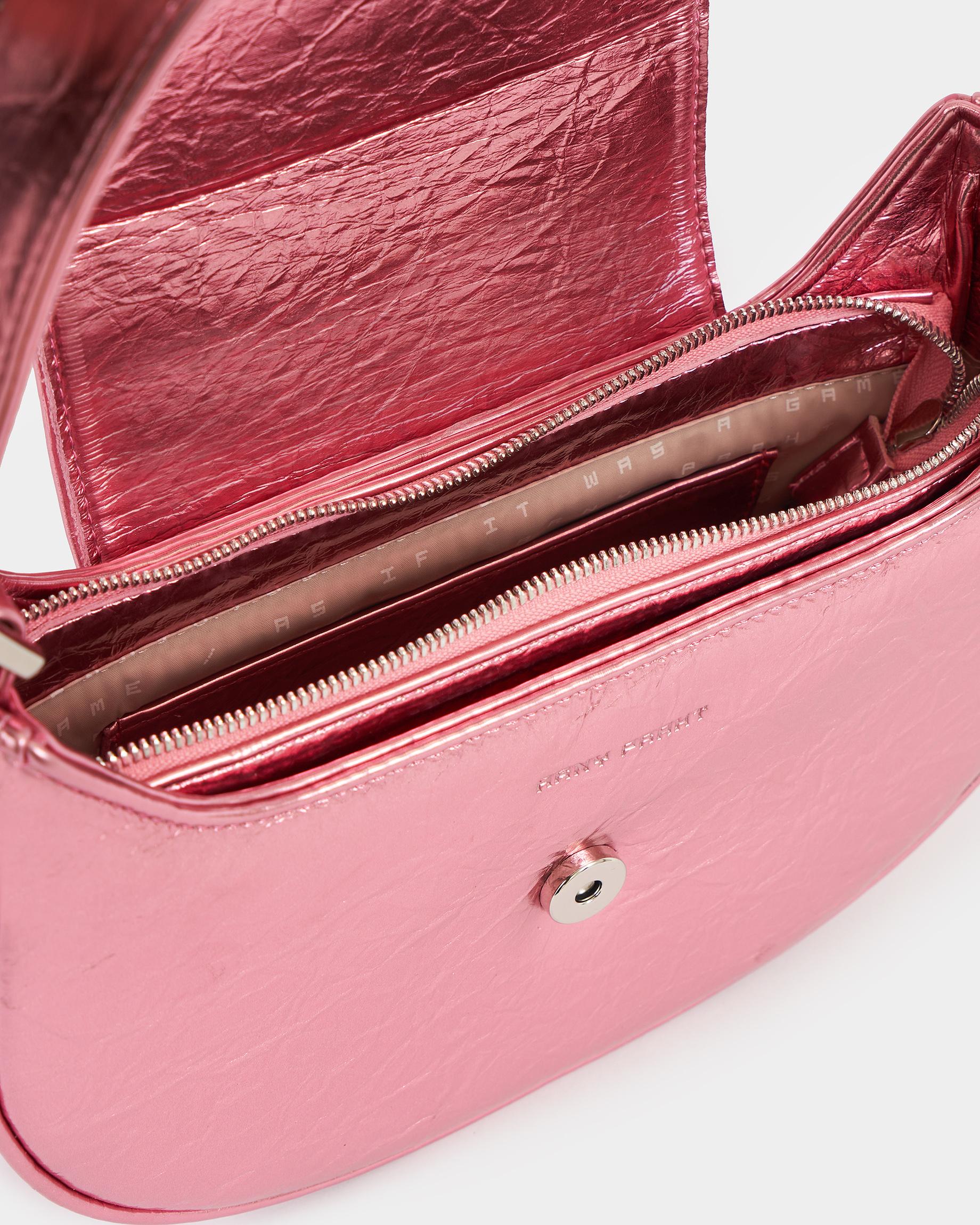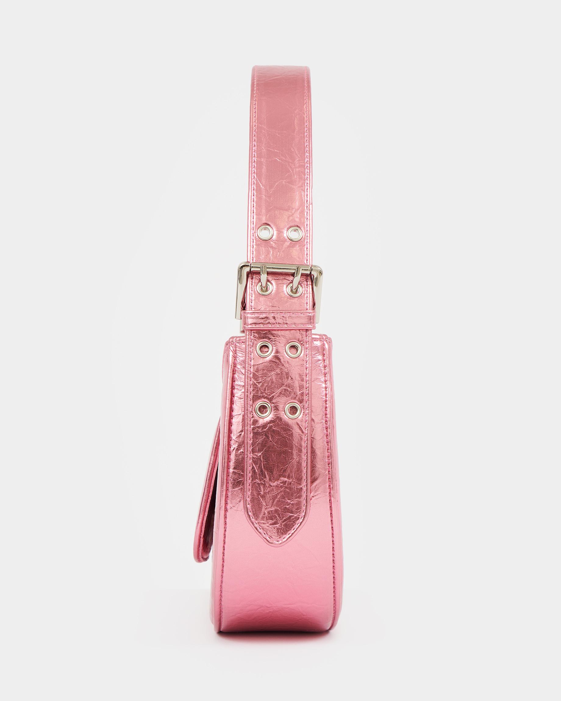 Сумка-багет цвета розовый лимонад из экокожи с широким ремнем