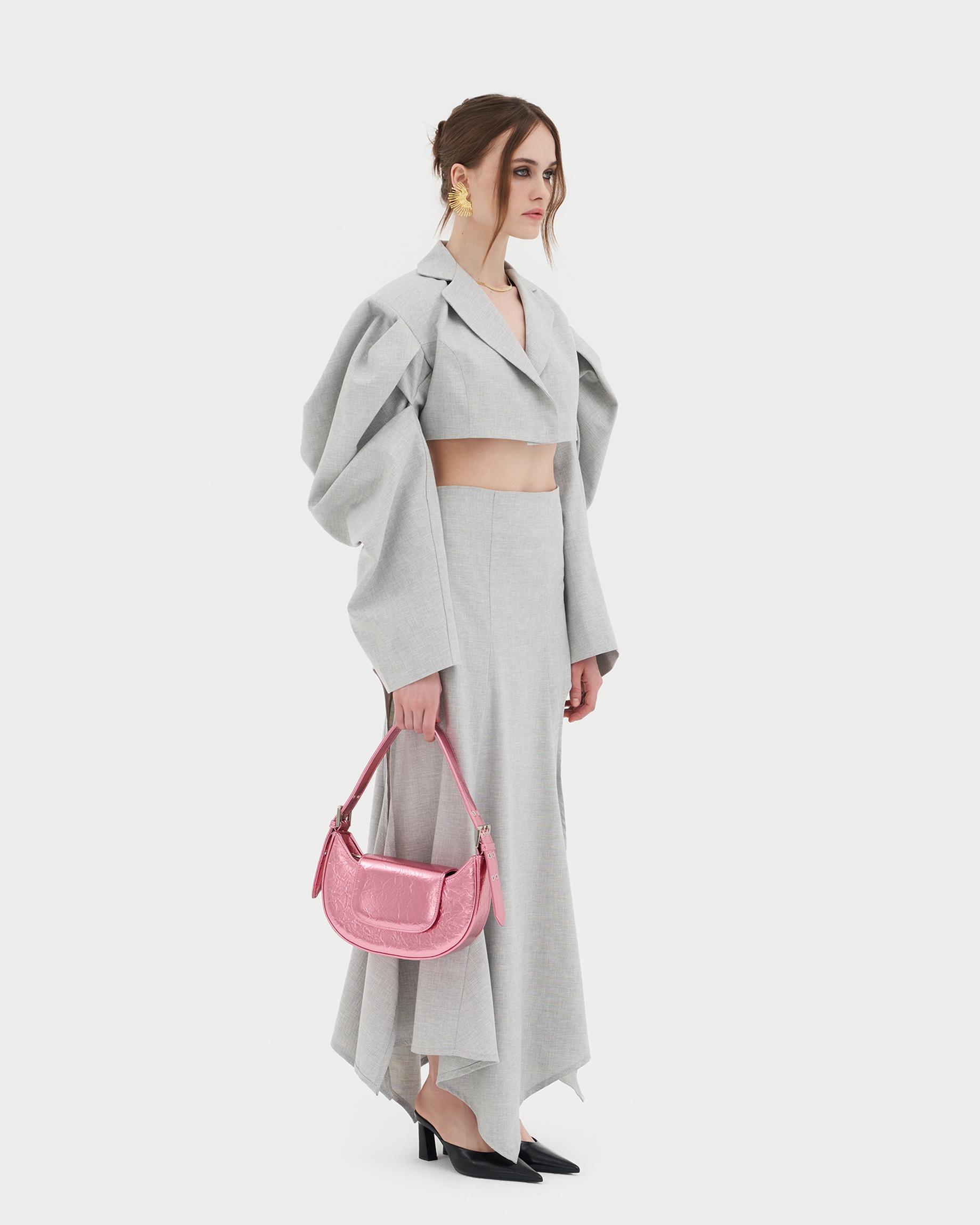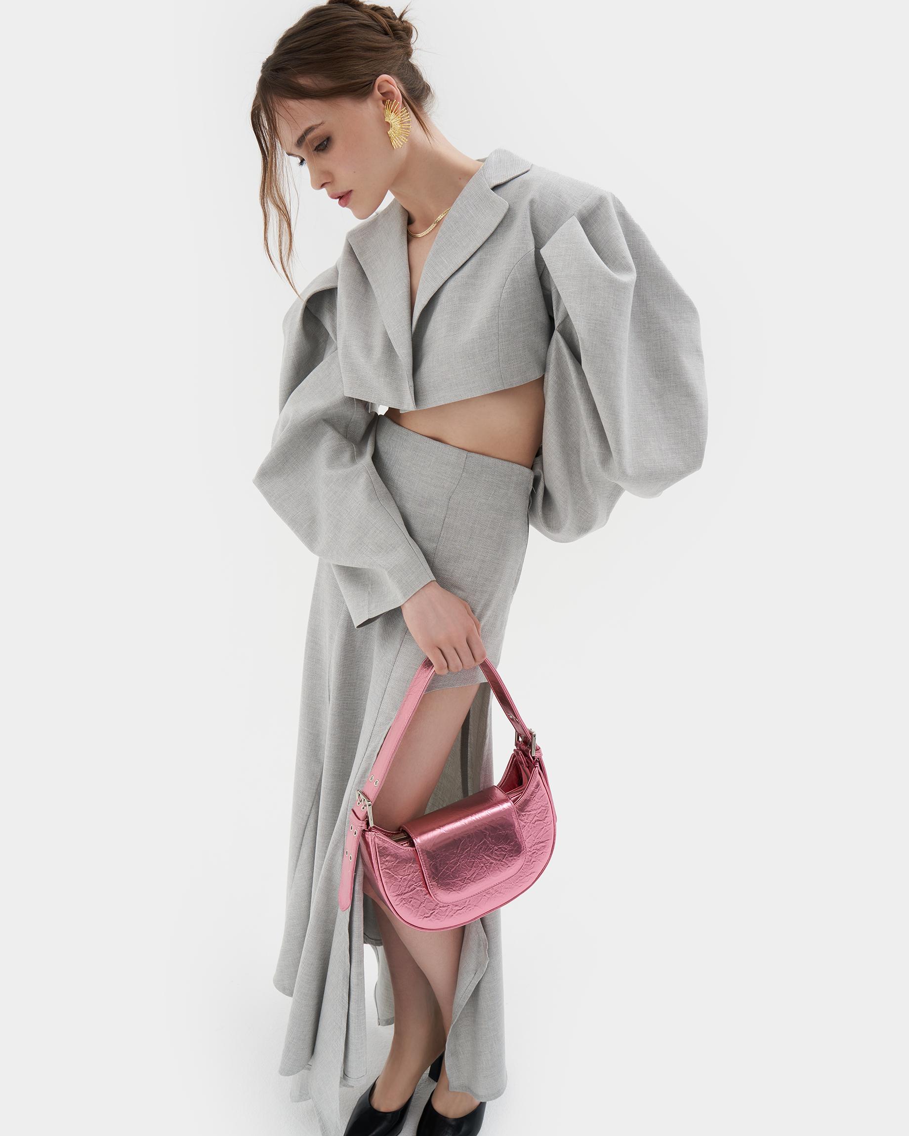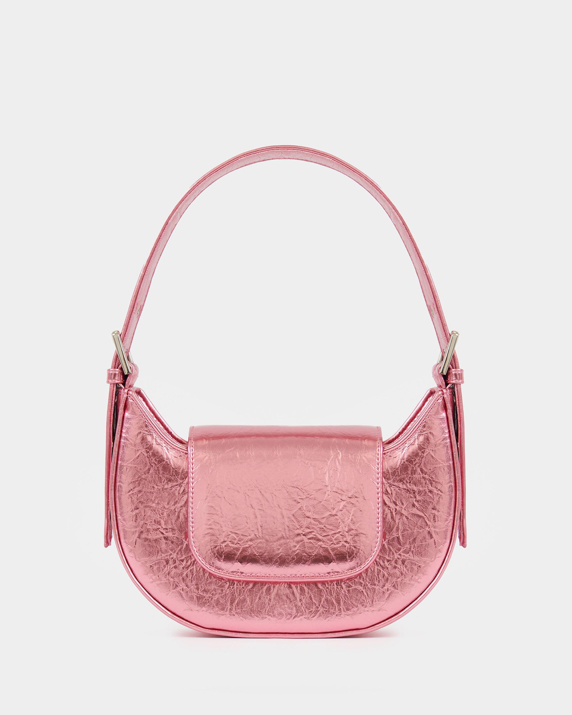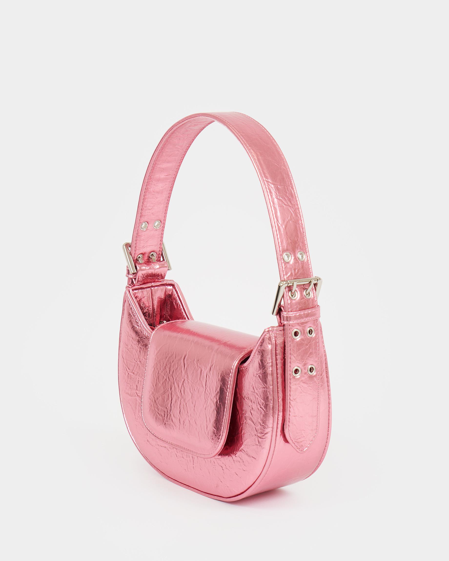 Сумка-багет цвета розовый лимонад из экокожи с широким ремнем