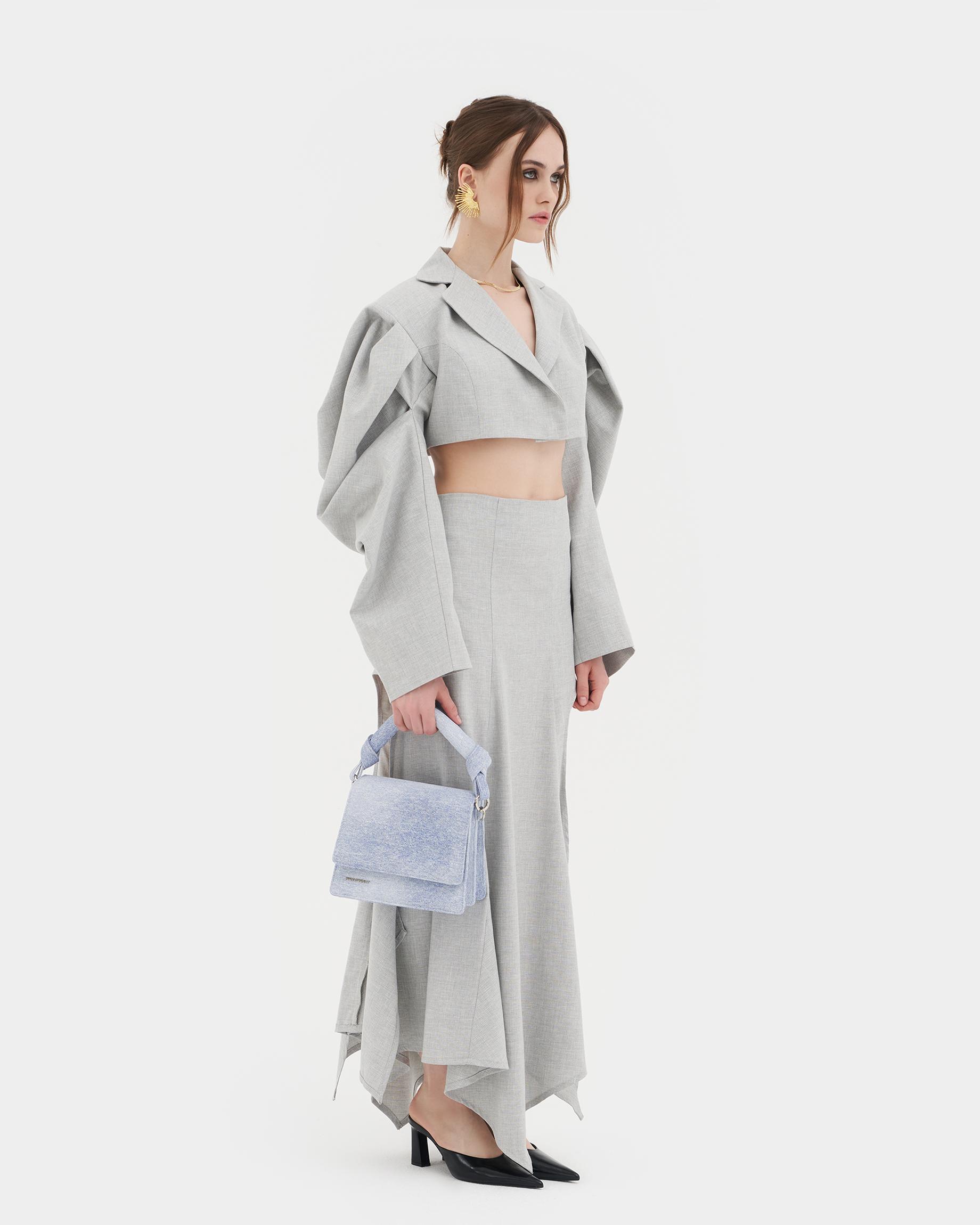 Универсальная каркасная сумка с двумя ремнями в цвете потертый деним
