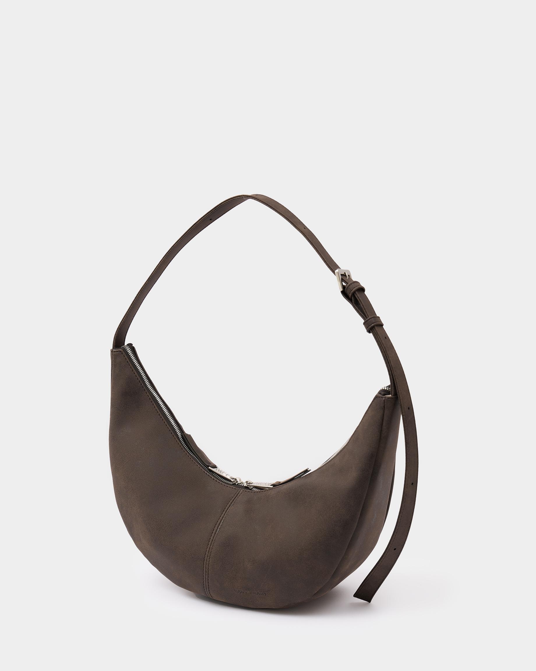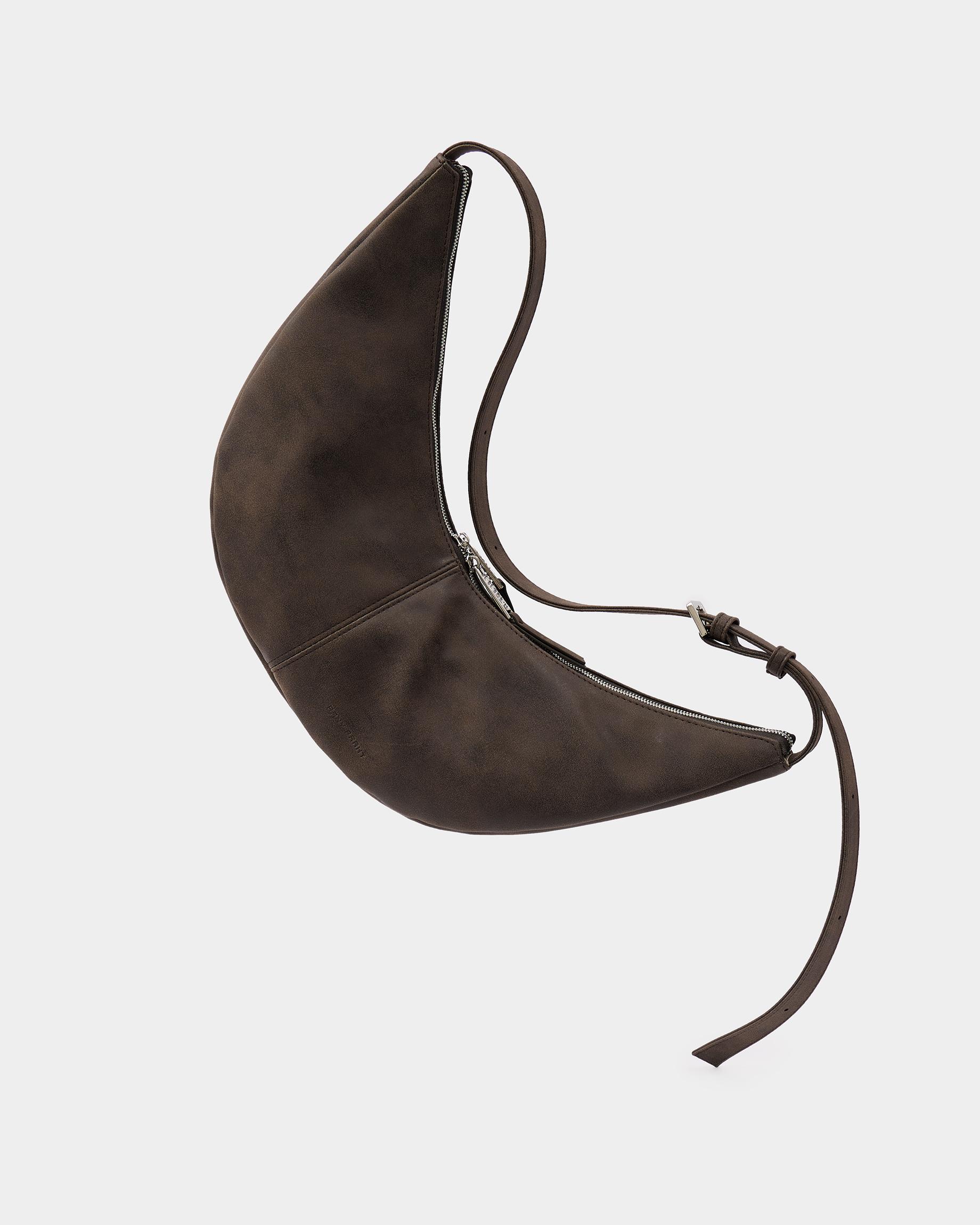 Минималистичная сумка-бананка из замшевой экокожи с регулируемым ремнем в цвете брауни