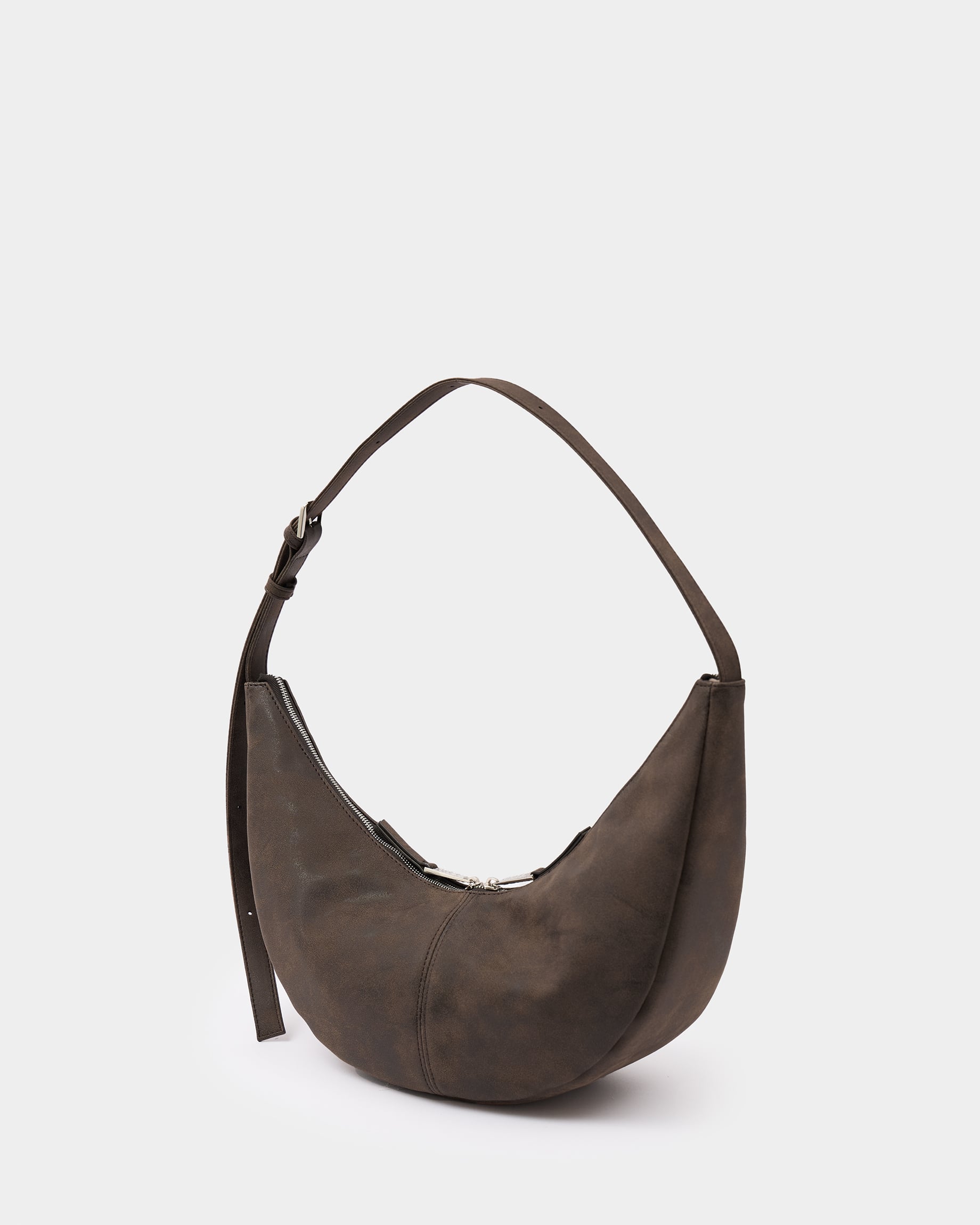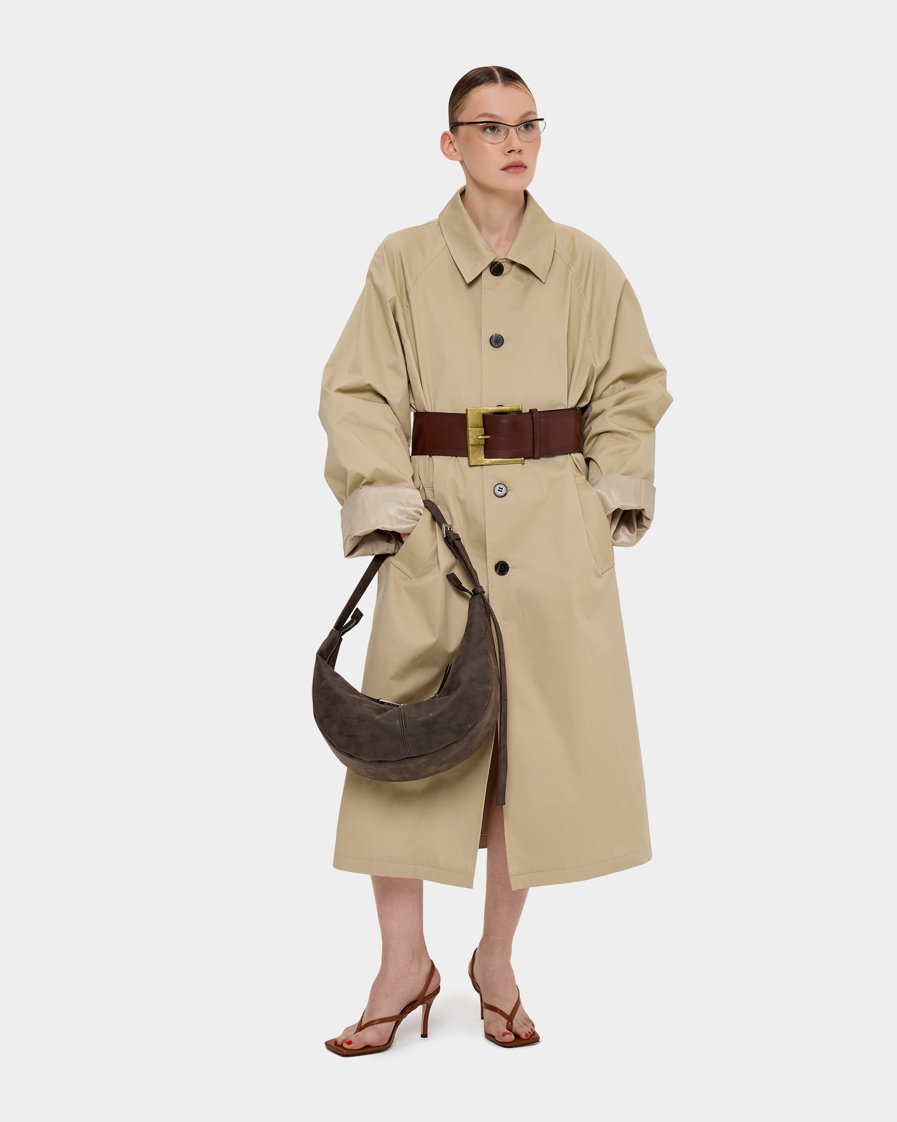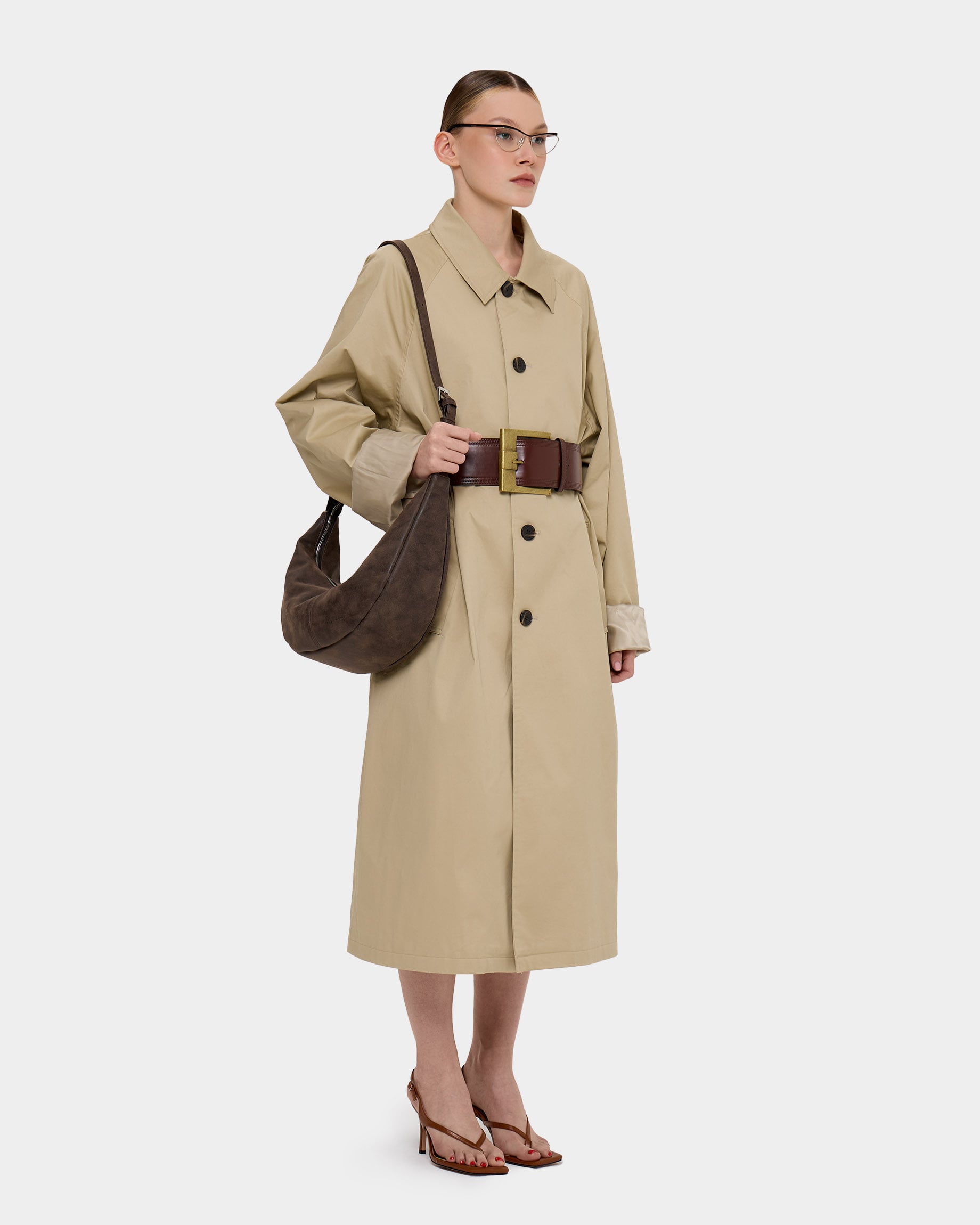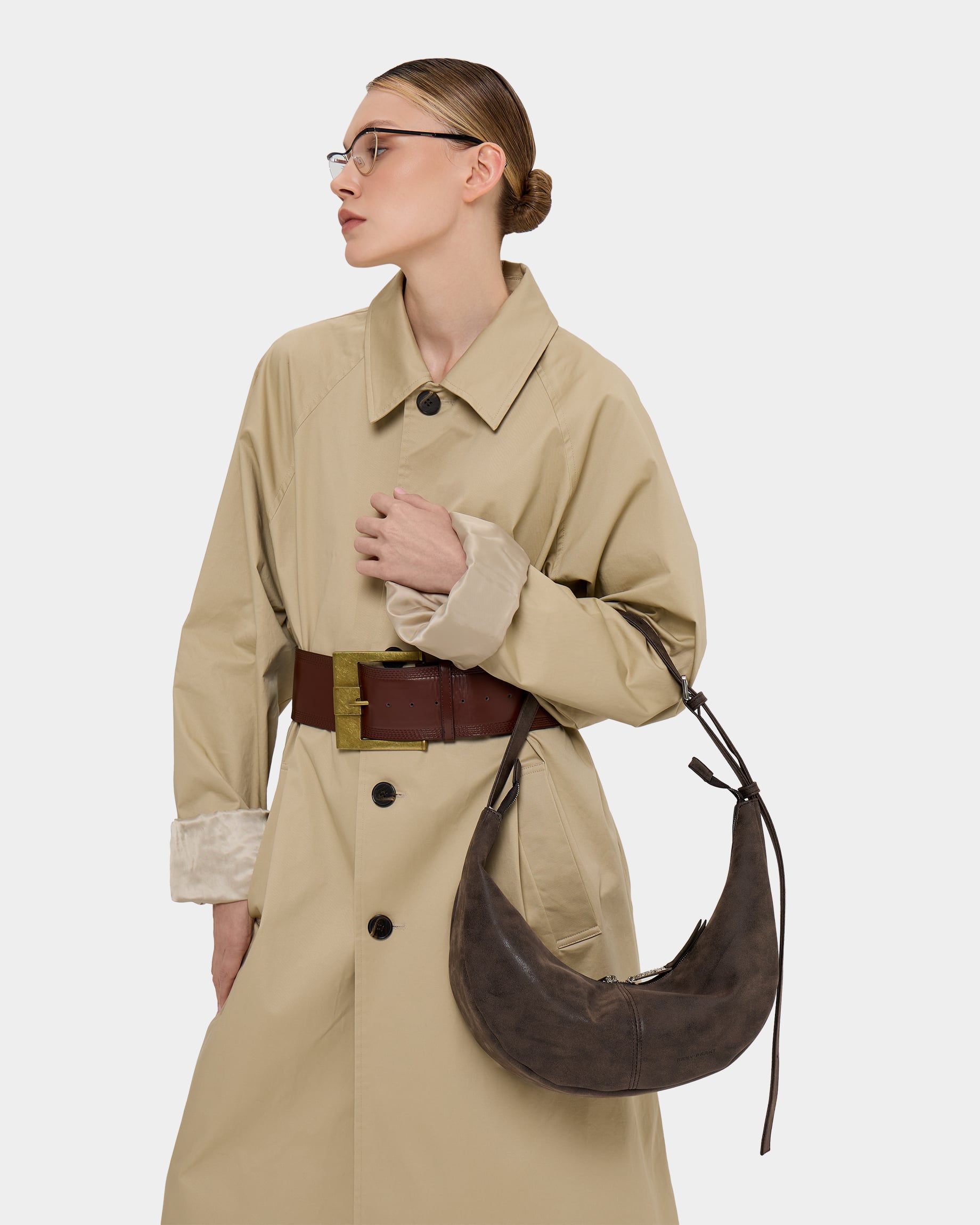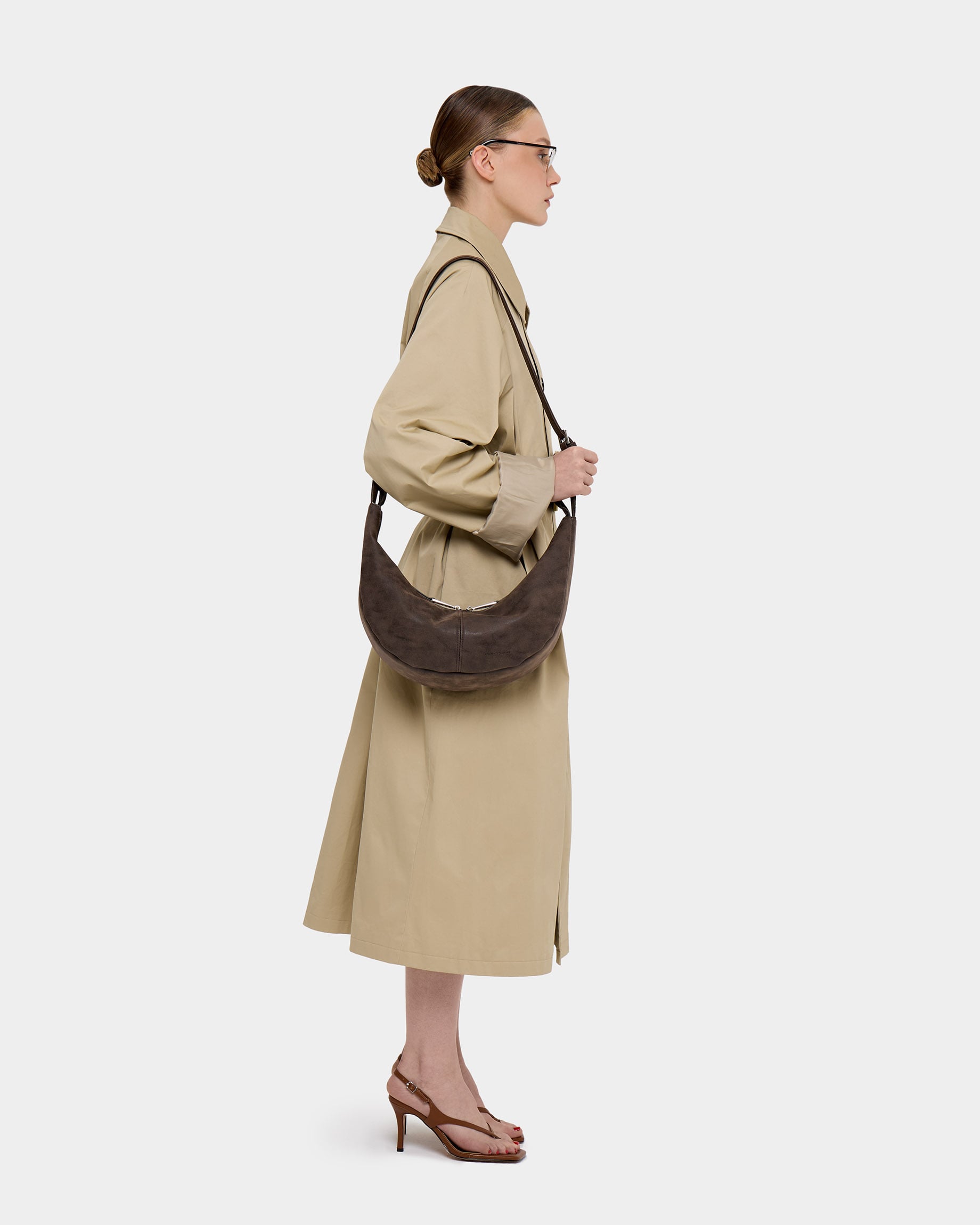 Минималистичная сумка-бананка из замшевой экокожи с регулируемым ремнем в цвете брауни