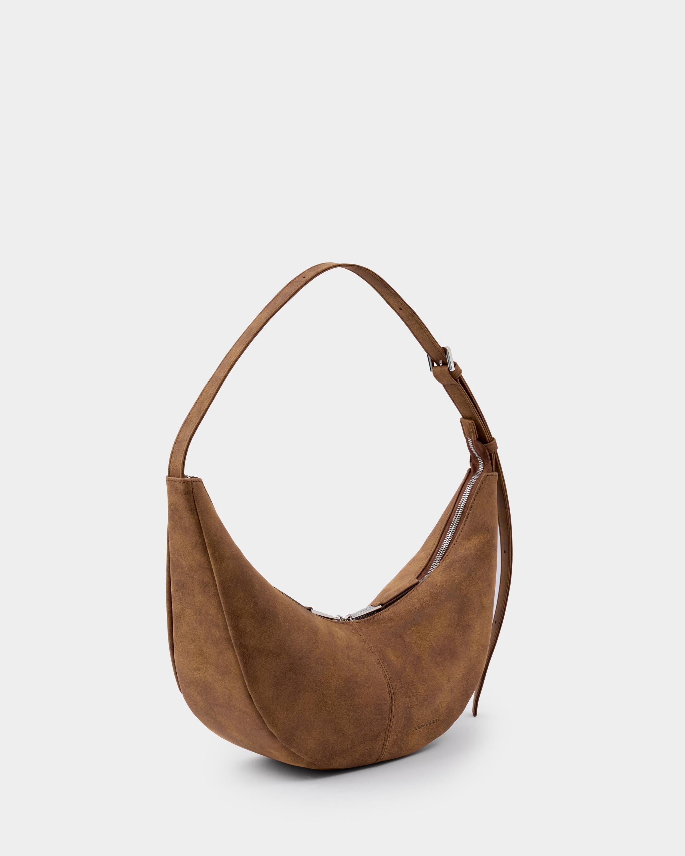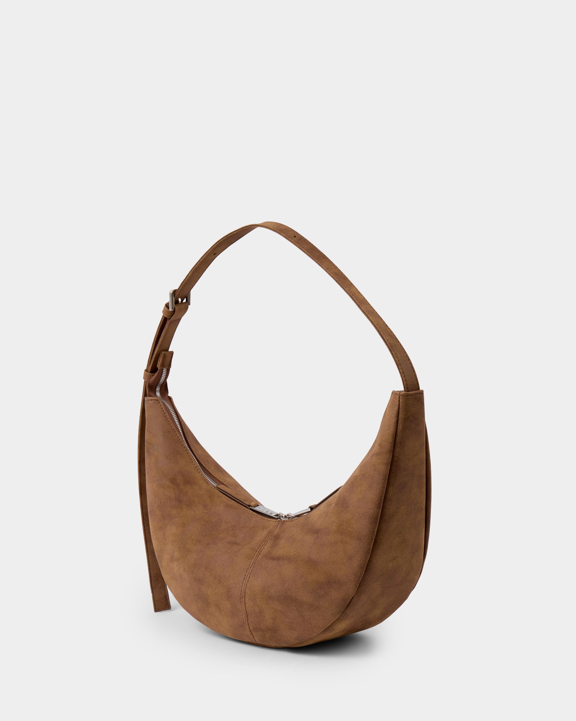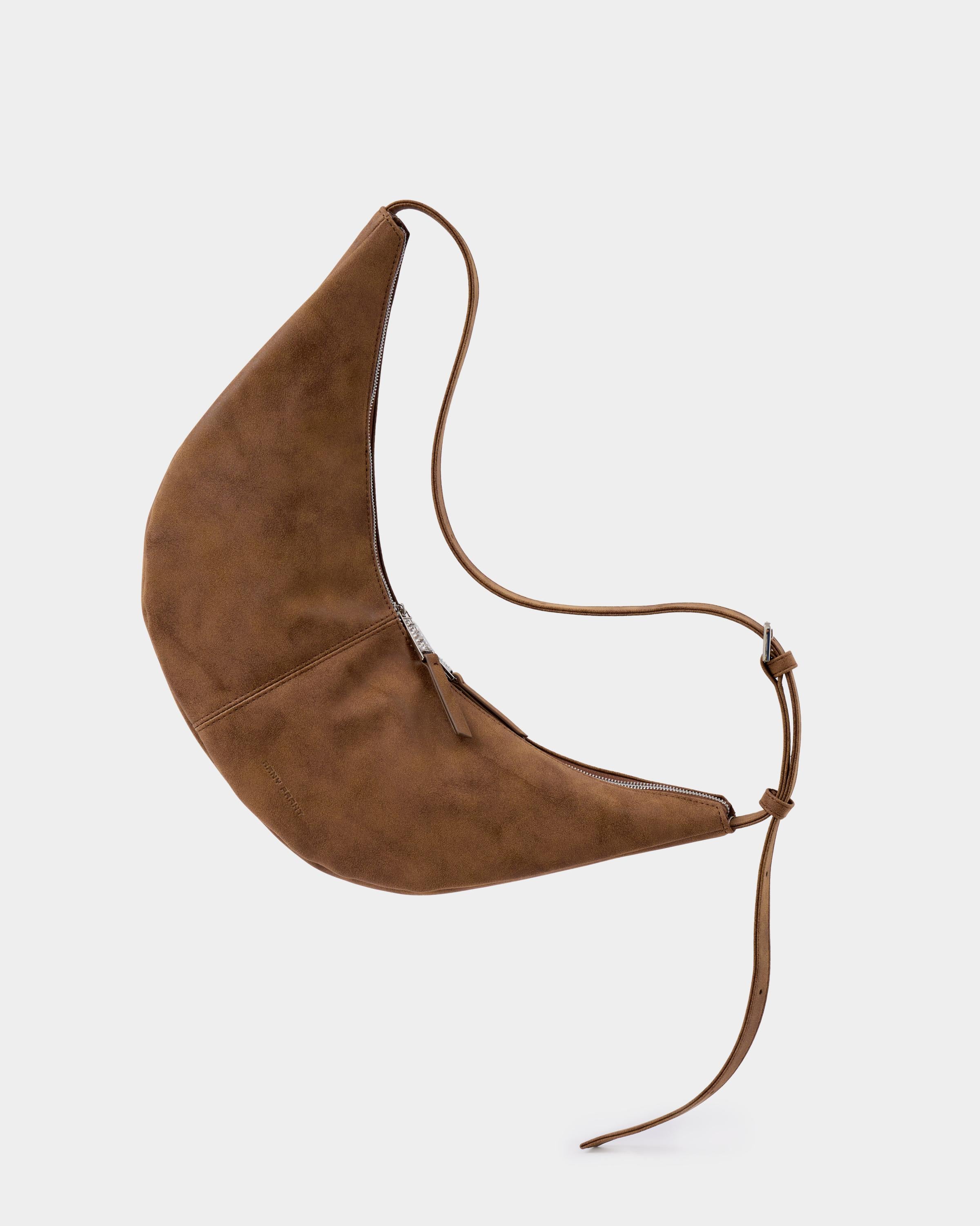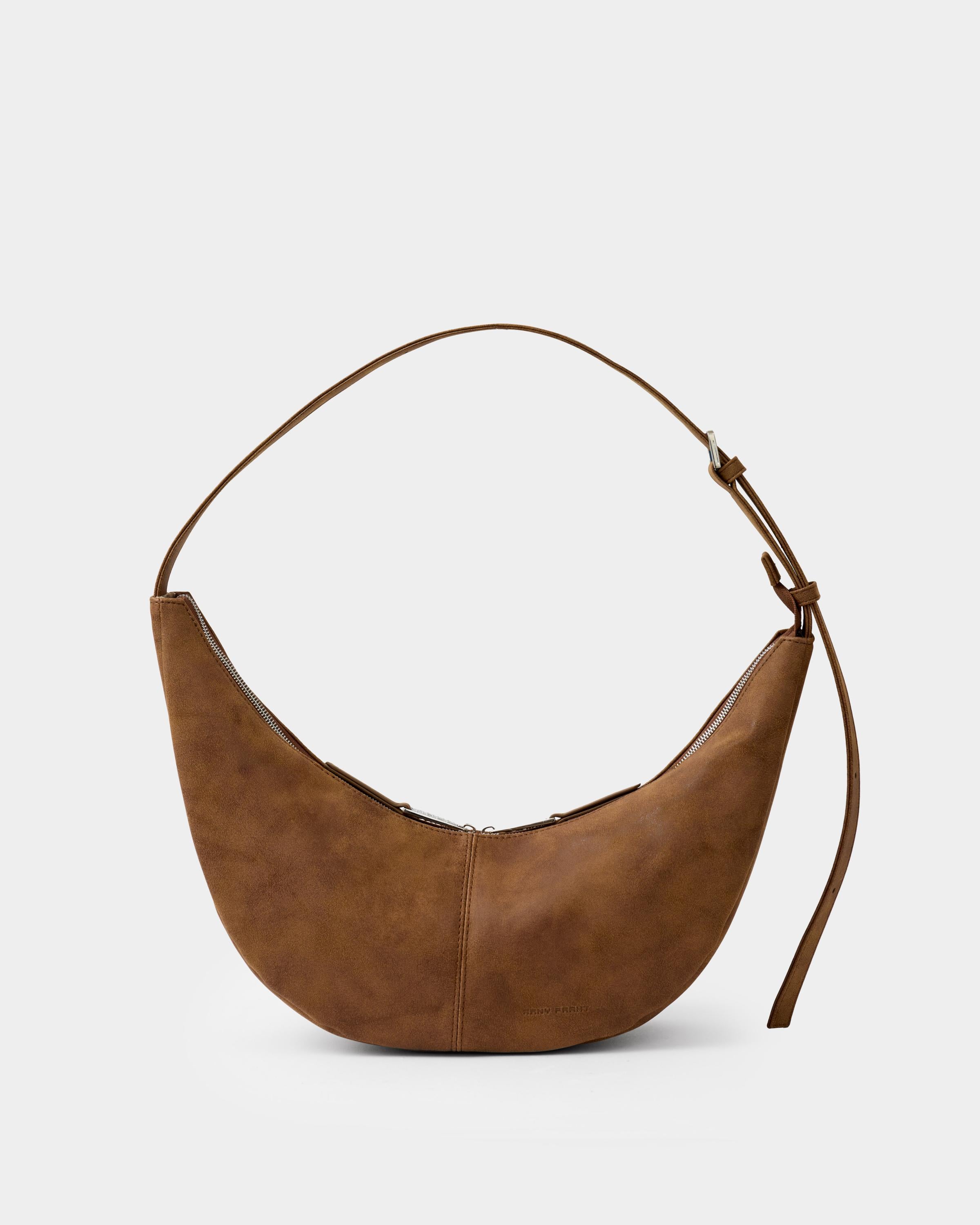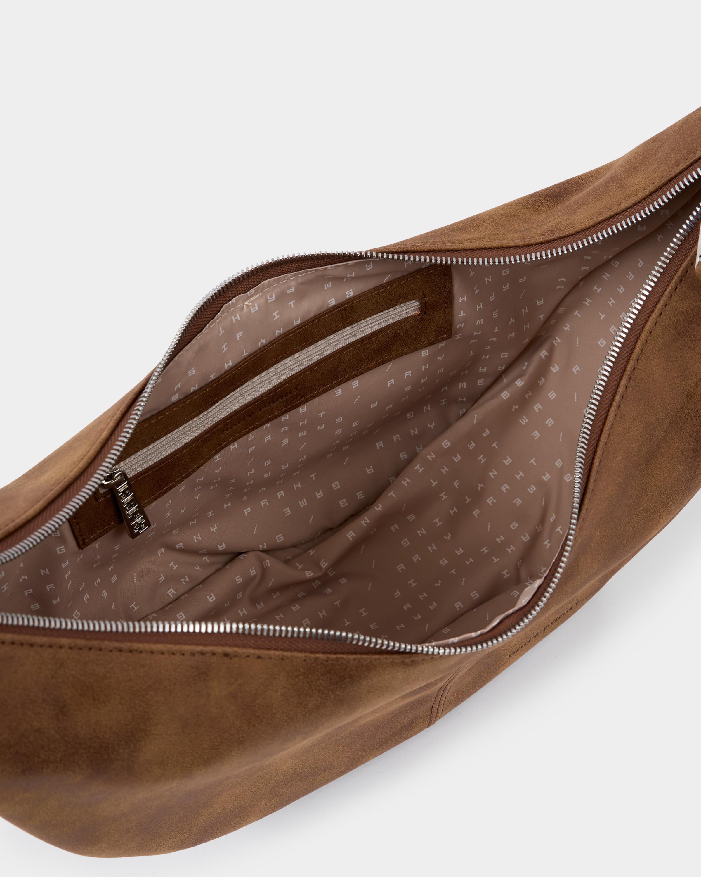 Минималистичная сумка-бананка из замшевой экокожи с регулируемым ремнем в цвете пекан