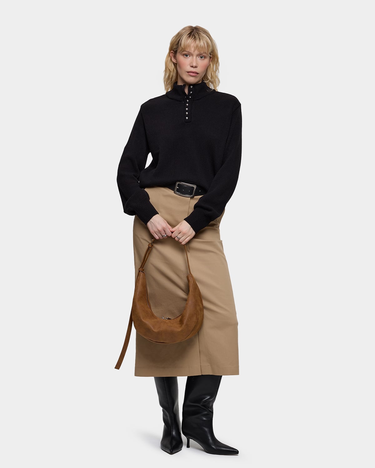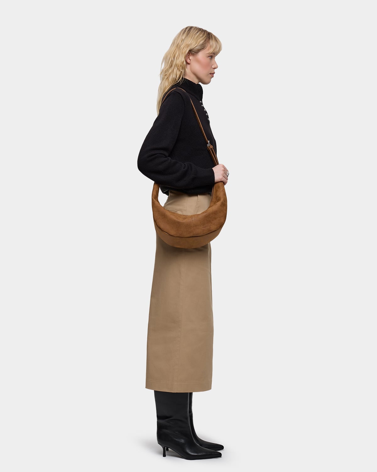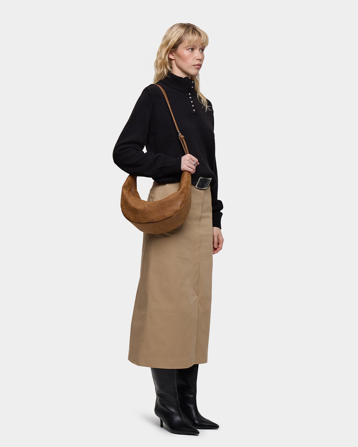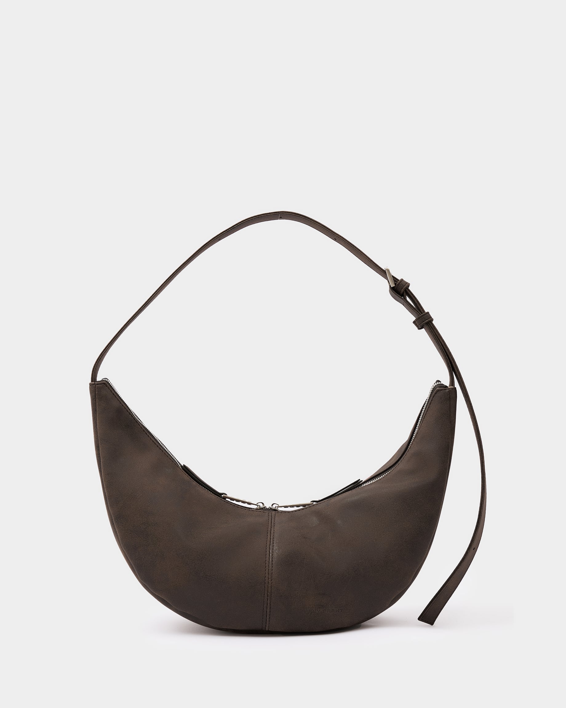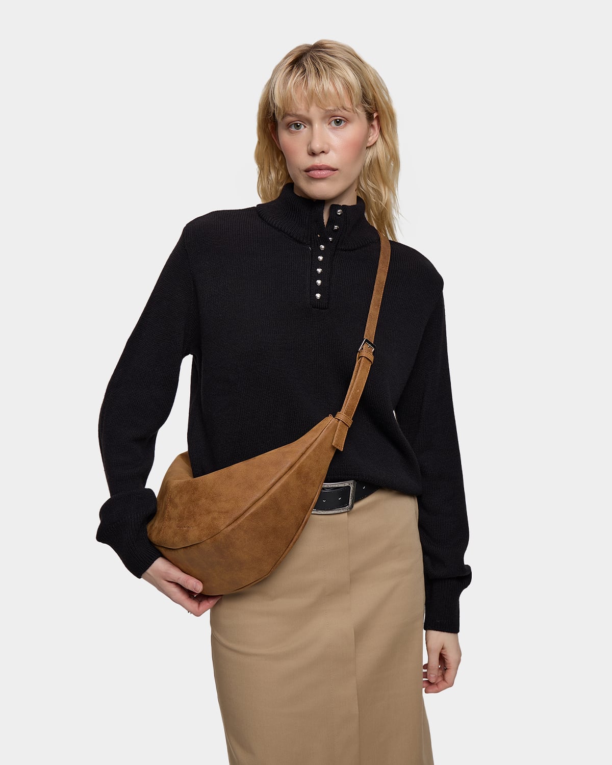 Минималистичная сумка-бананка из замшевой экокожи с регулируемым ремнем в цвете пекан