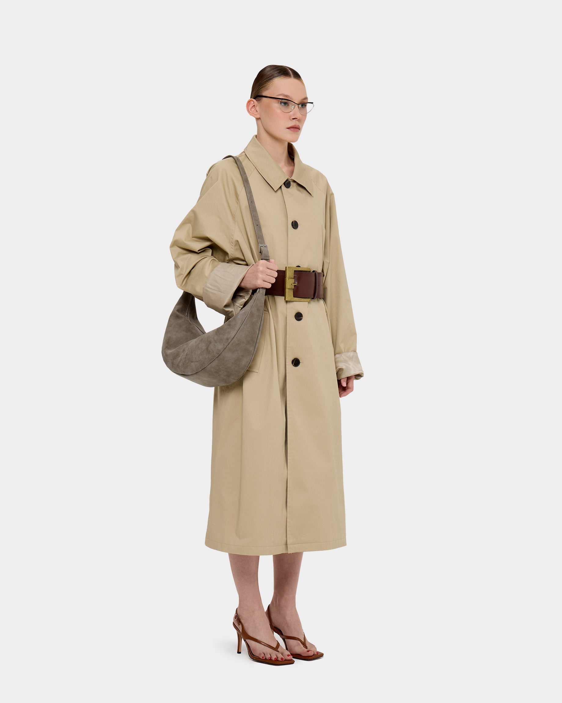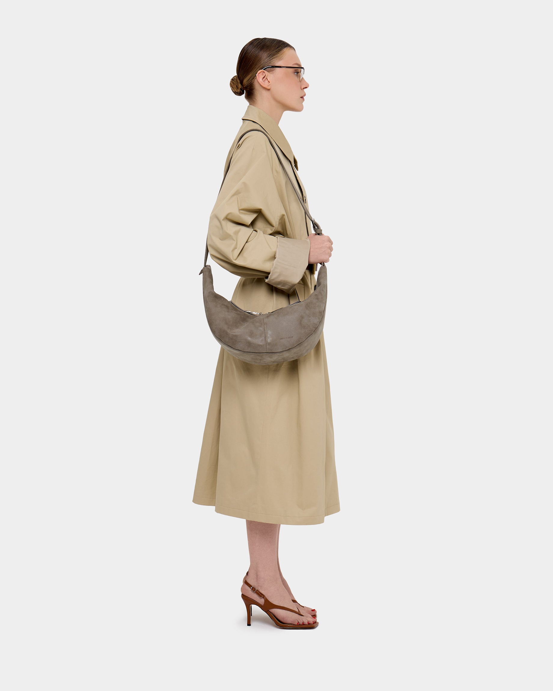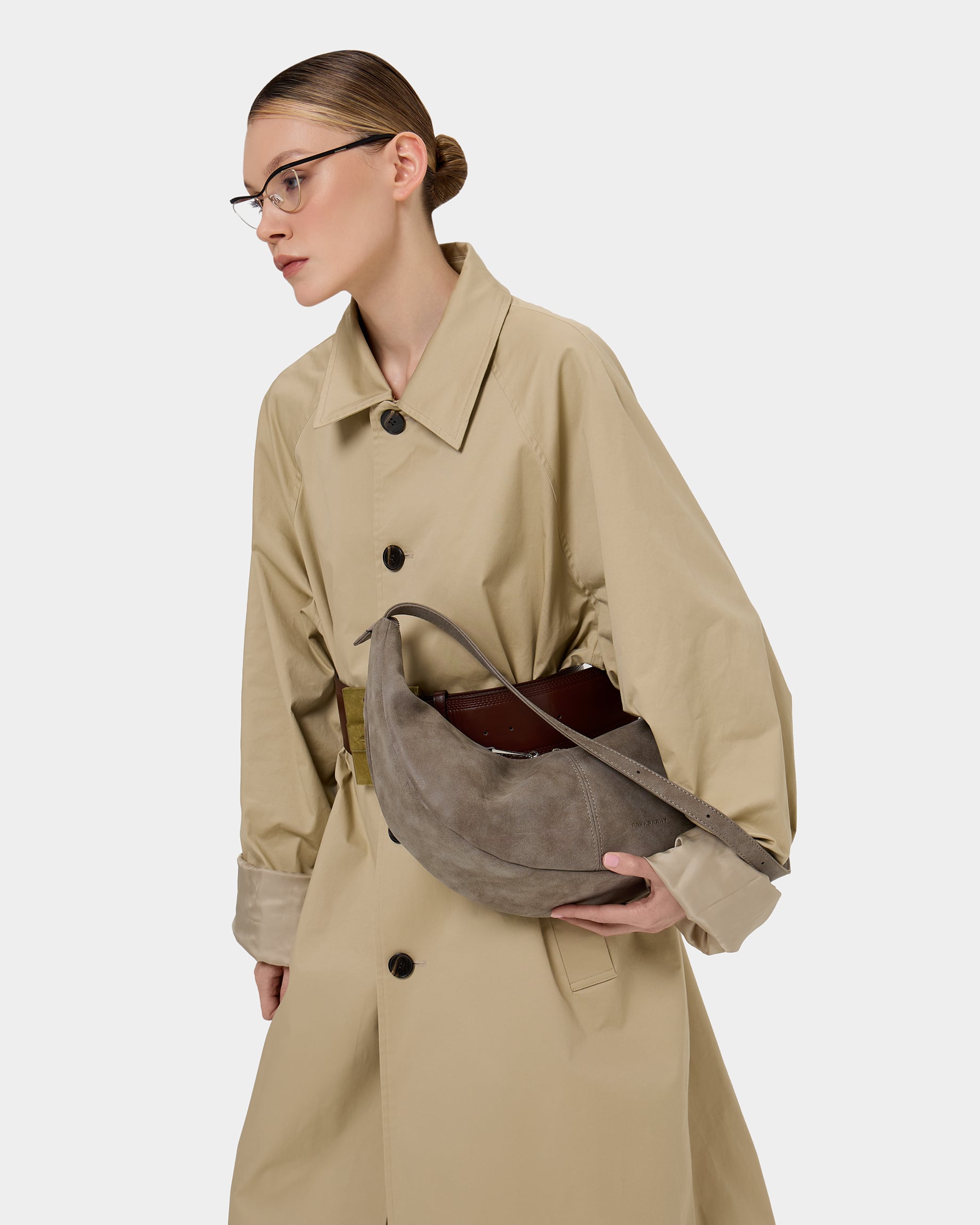 Минималистичная сумка-бананка из замшевой экокожи с регулируемым ремнем в песочном цвете