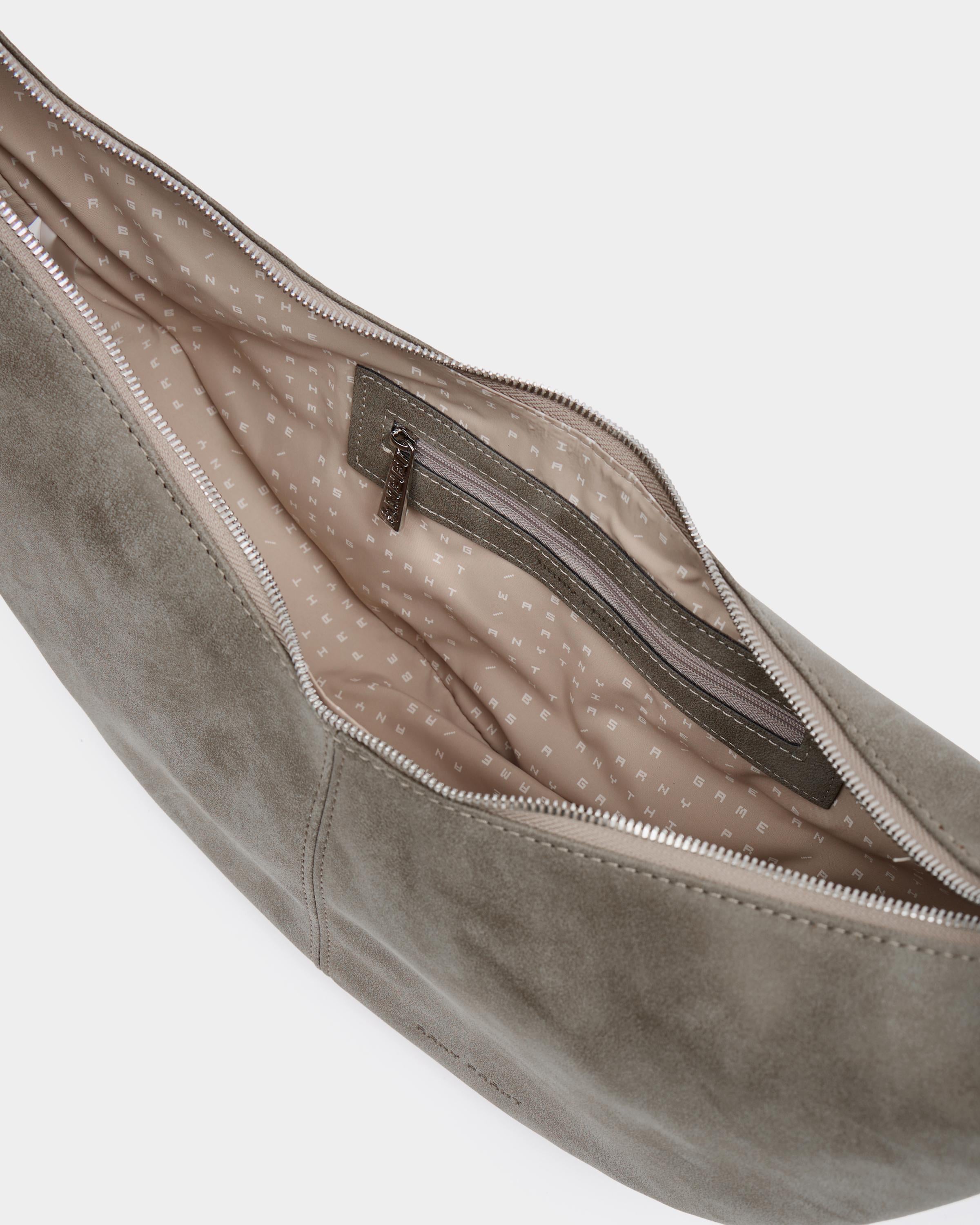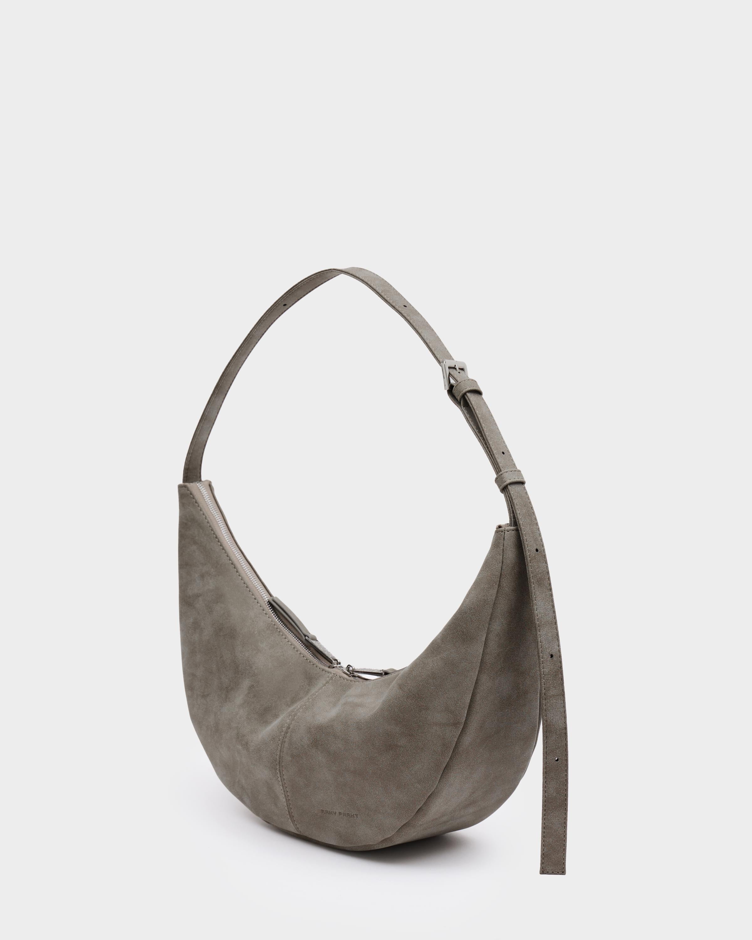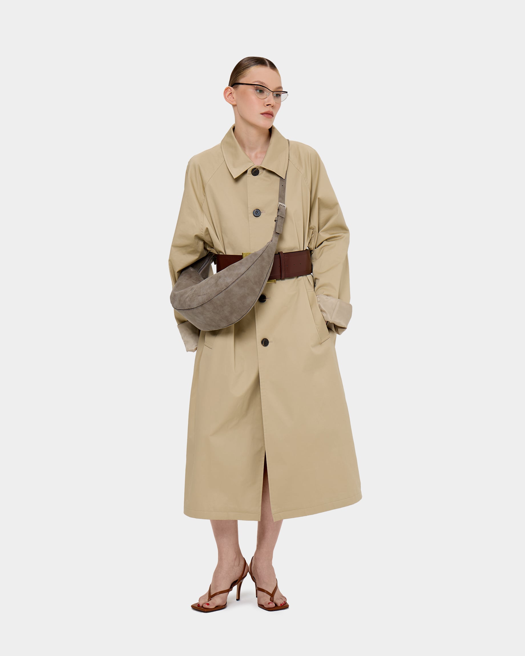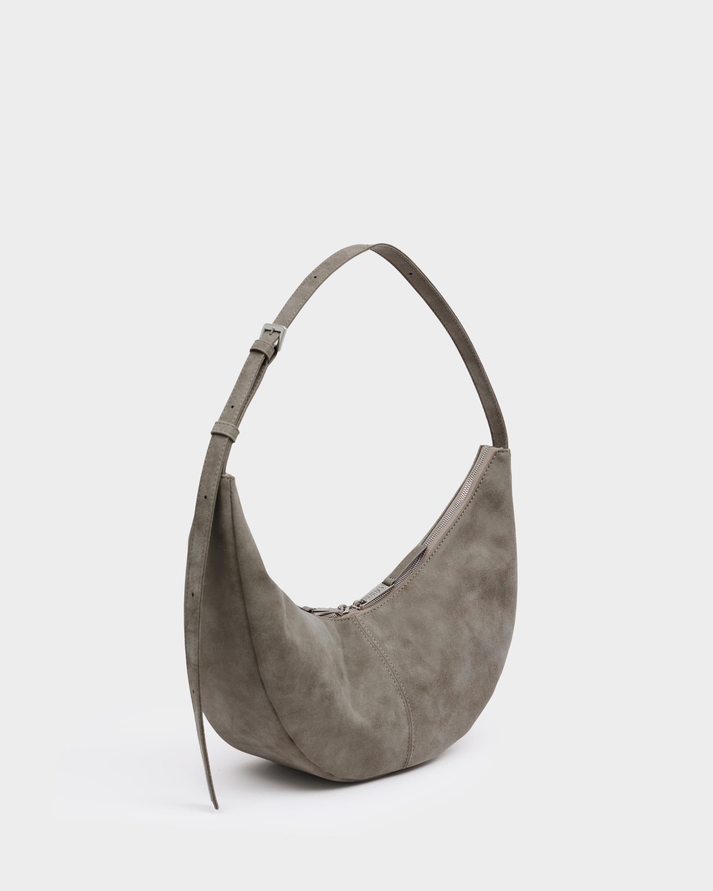 Минималистичная сумка-бананка из замшевой экокожи с регулируемым ремнем в песочном цвете