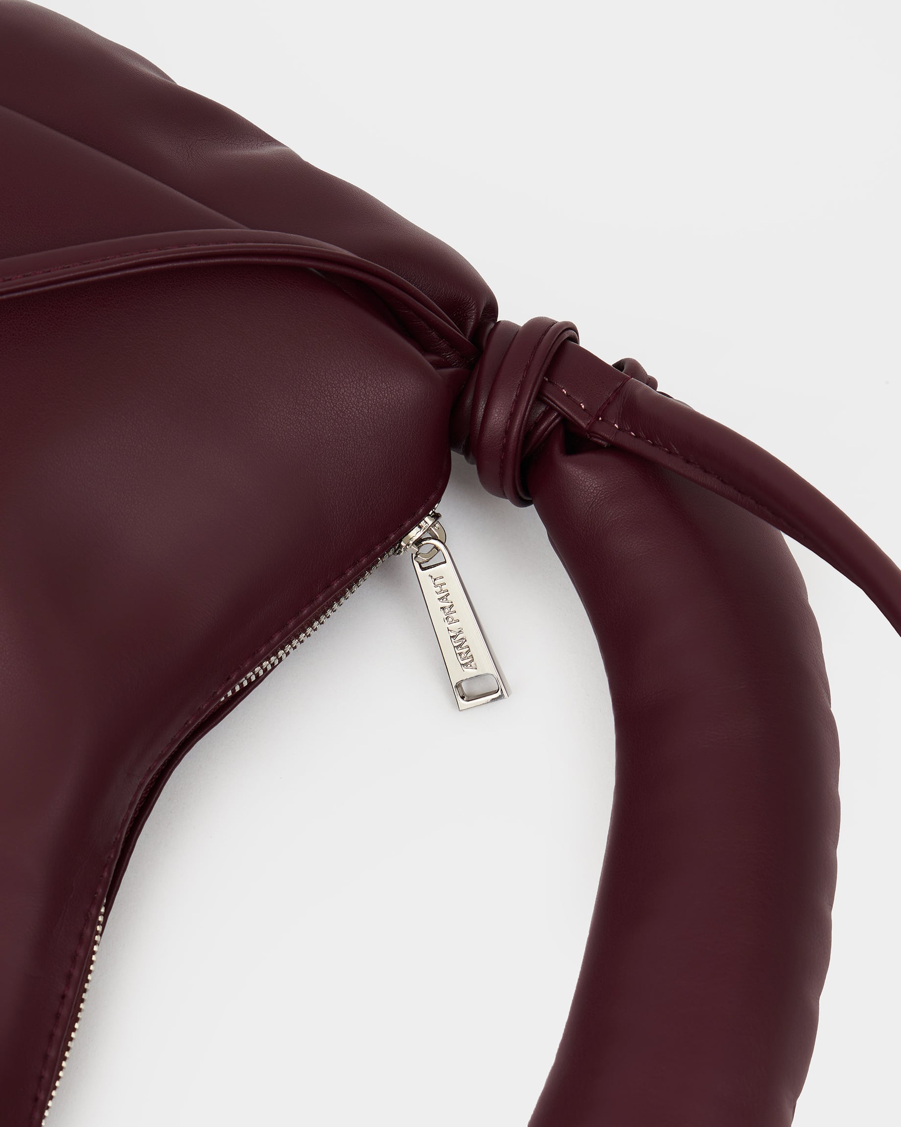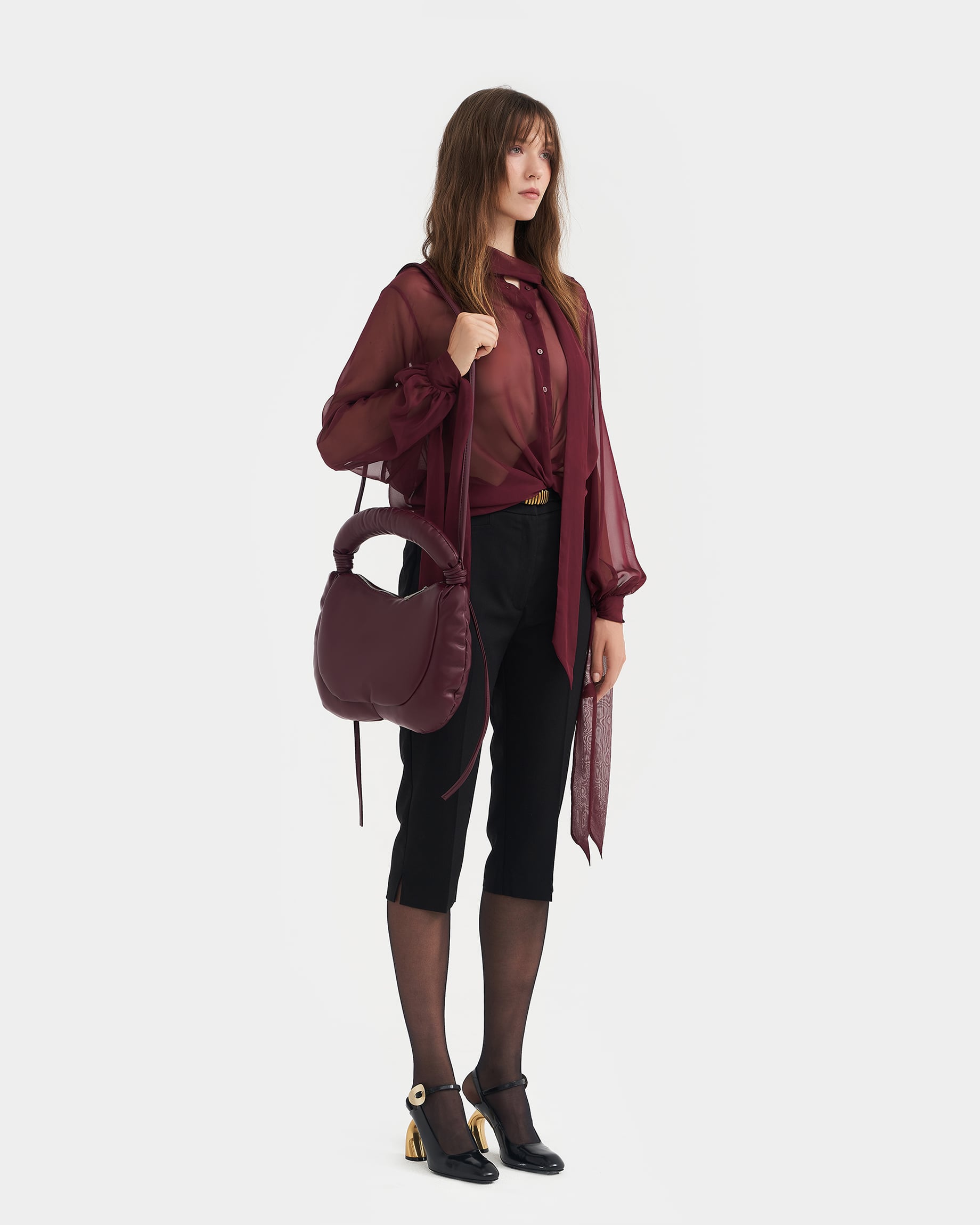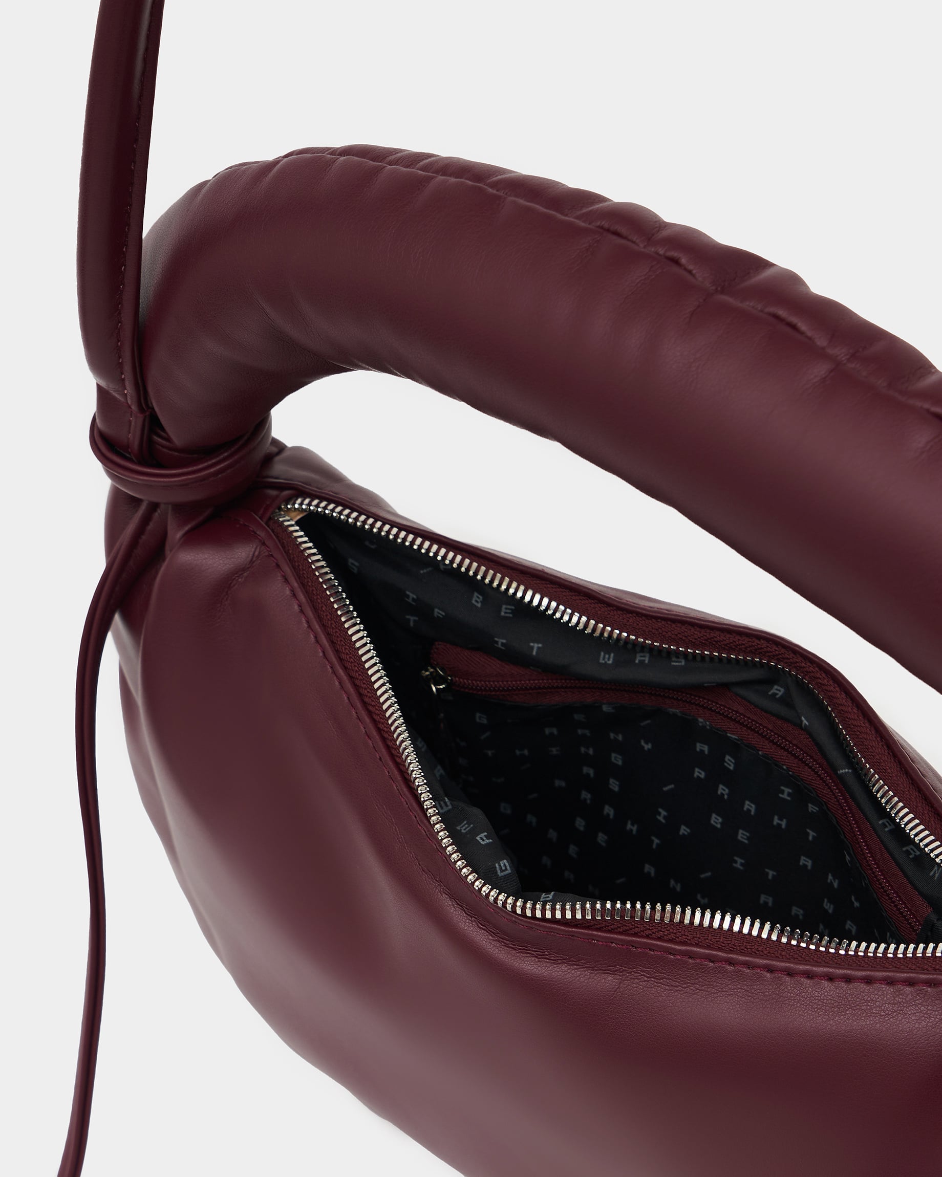 Мягкая сумка с объёмной ручкой-антистресс и ремнем в виде жгута в бордовом цвете