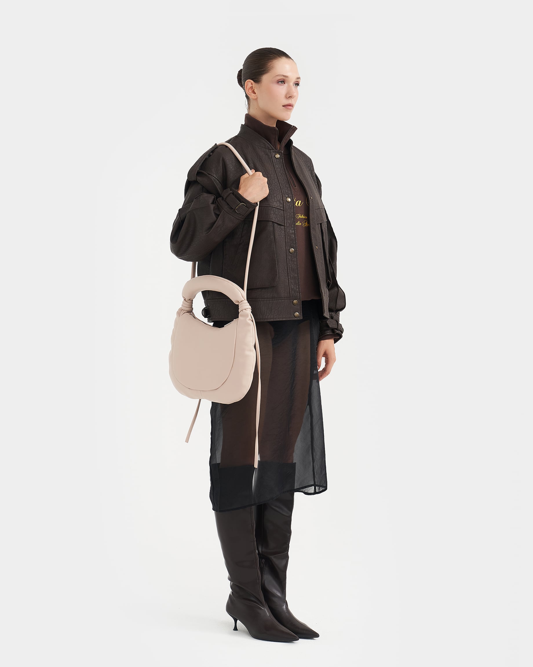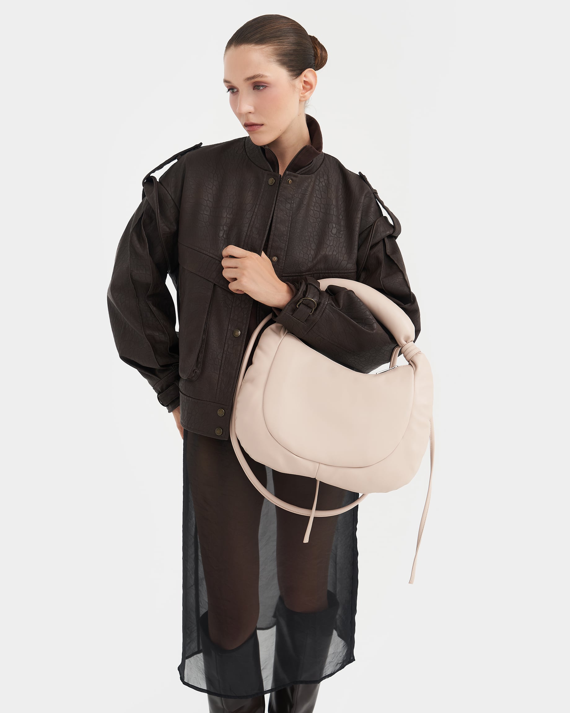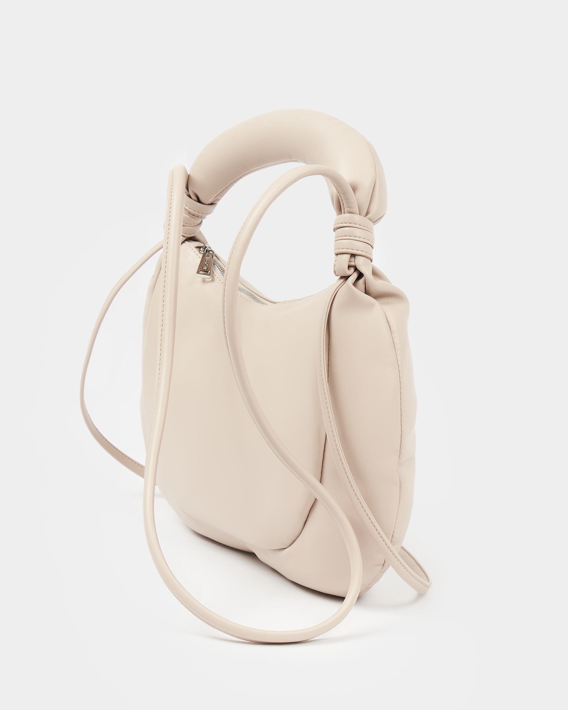 Мягкая сумка с объёмной ручкой-антистресс и ремнем в виде жгута в цвете нюд