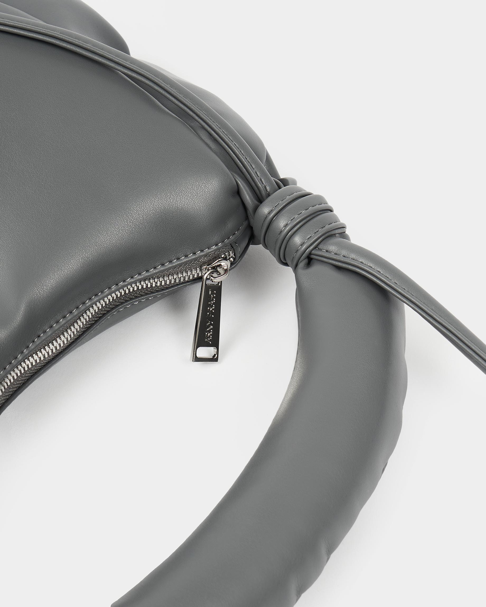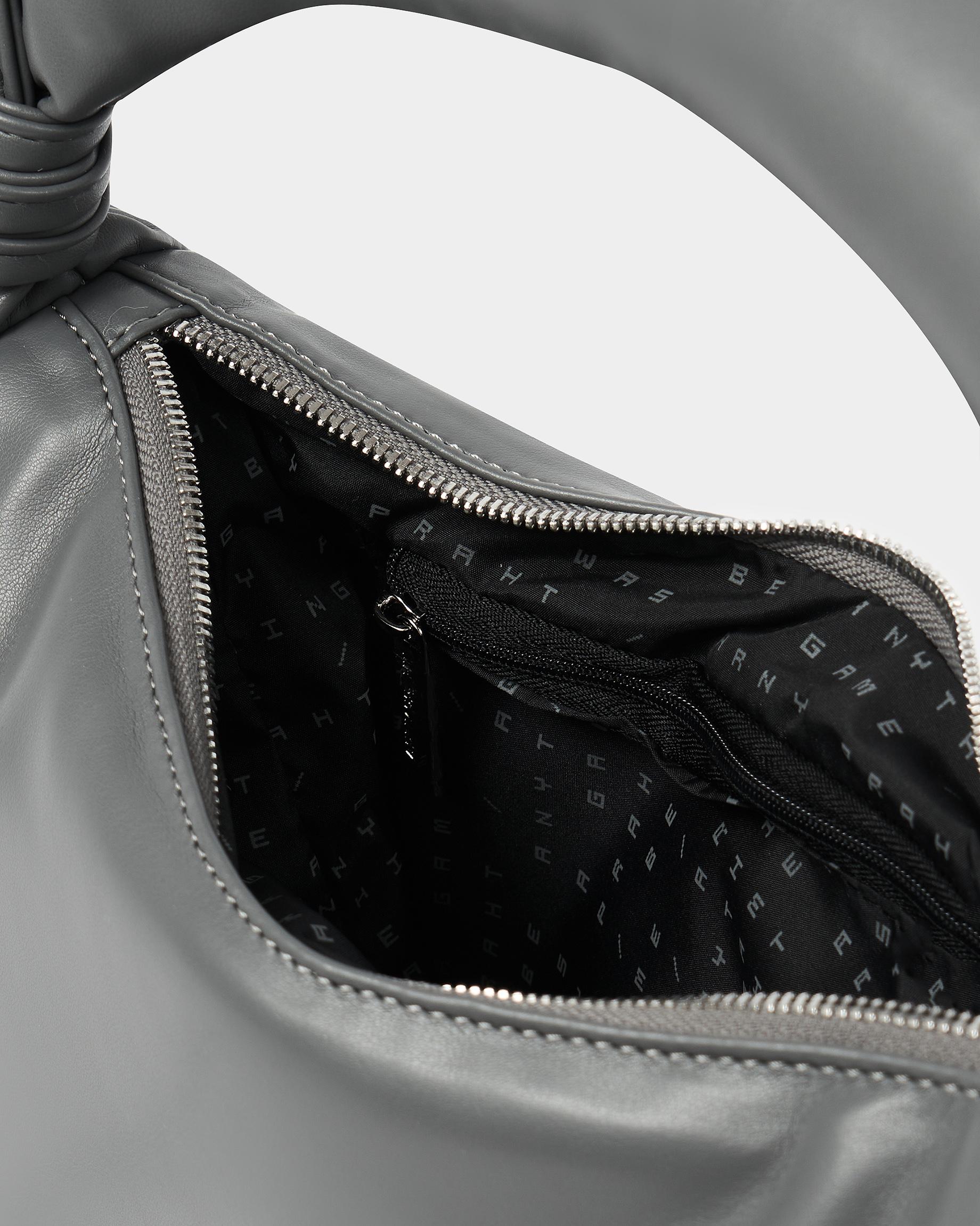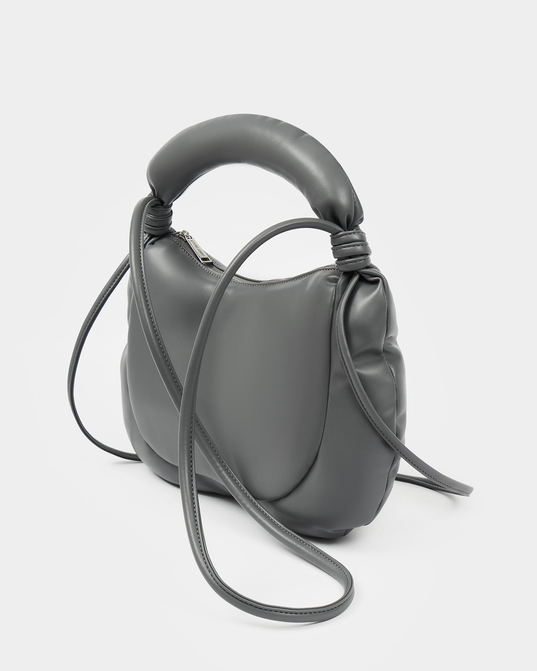 Мягкая сумка с объёмной ручкой-антистресс и ремнем в виде жгута в сером цвете