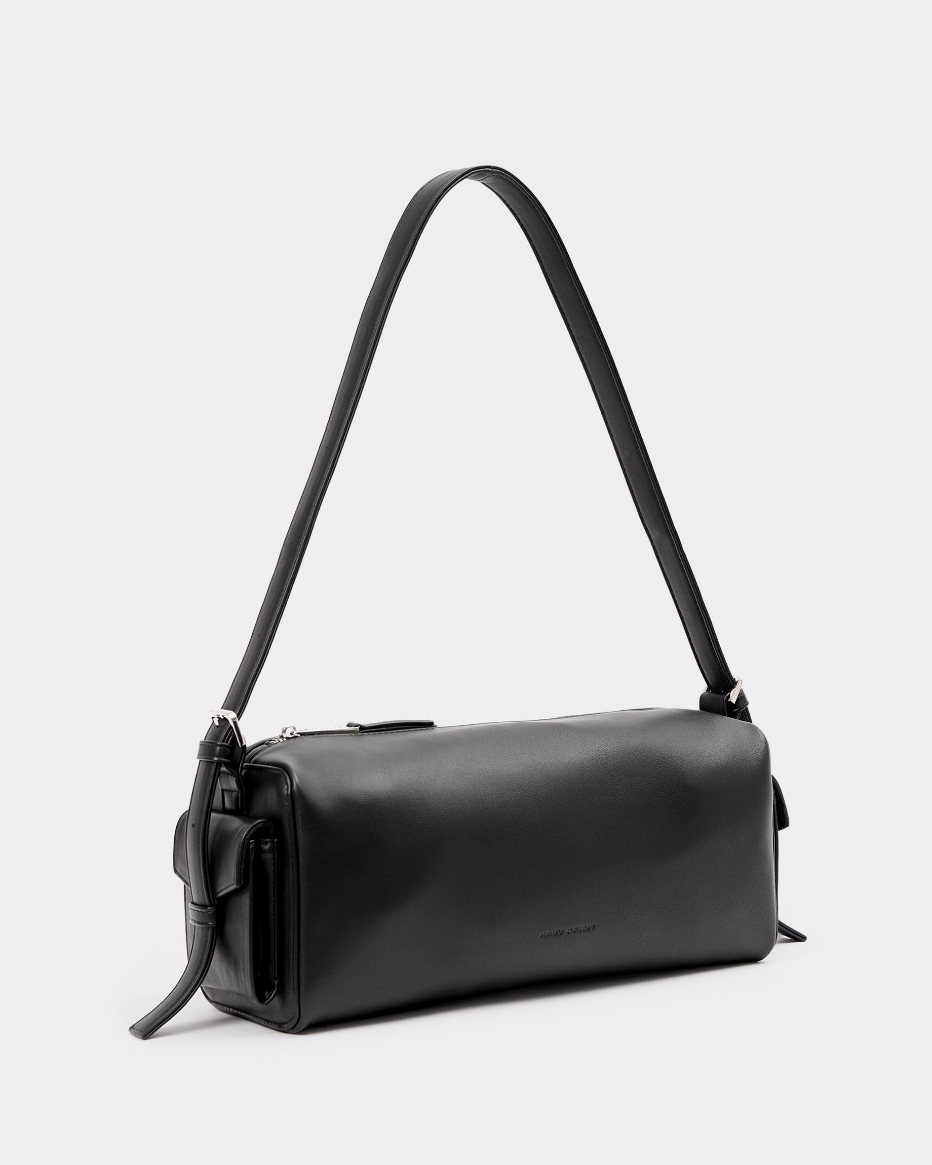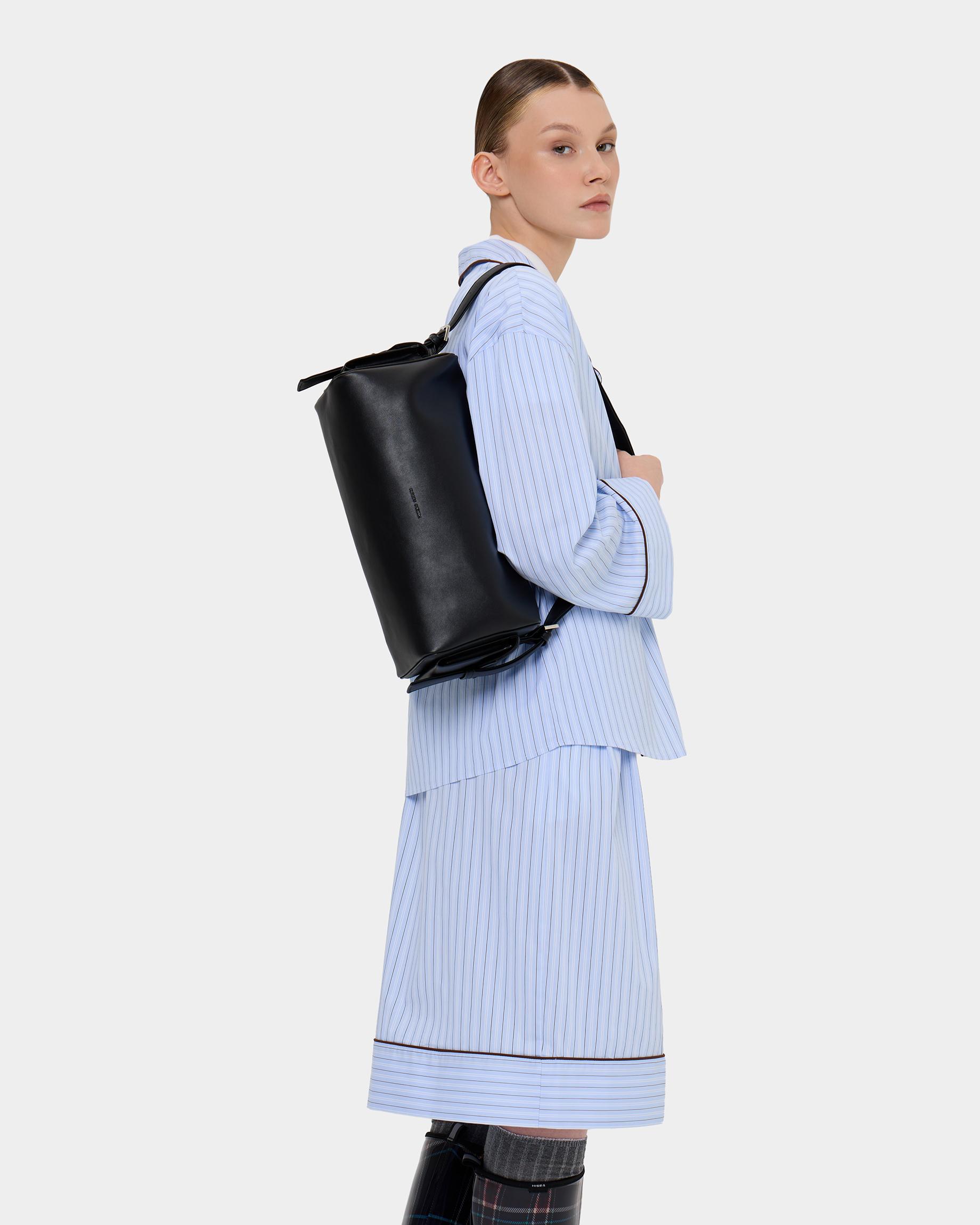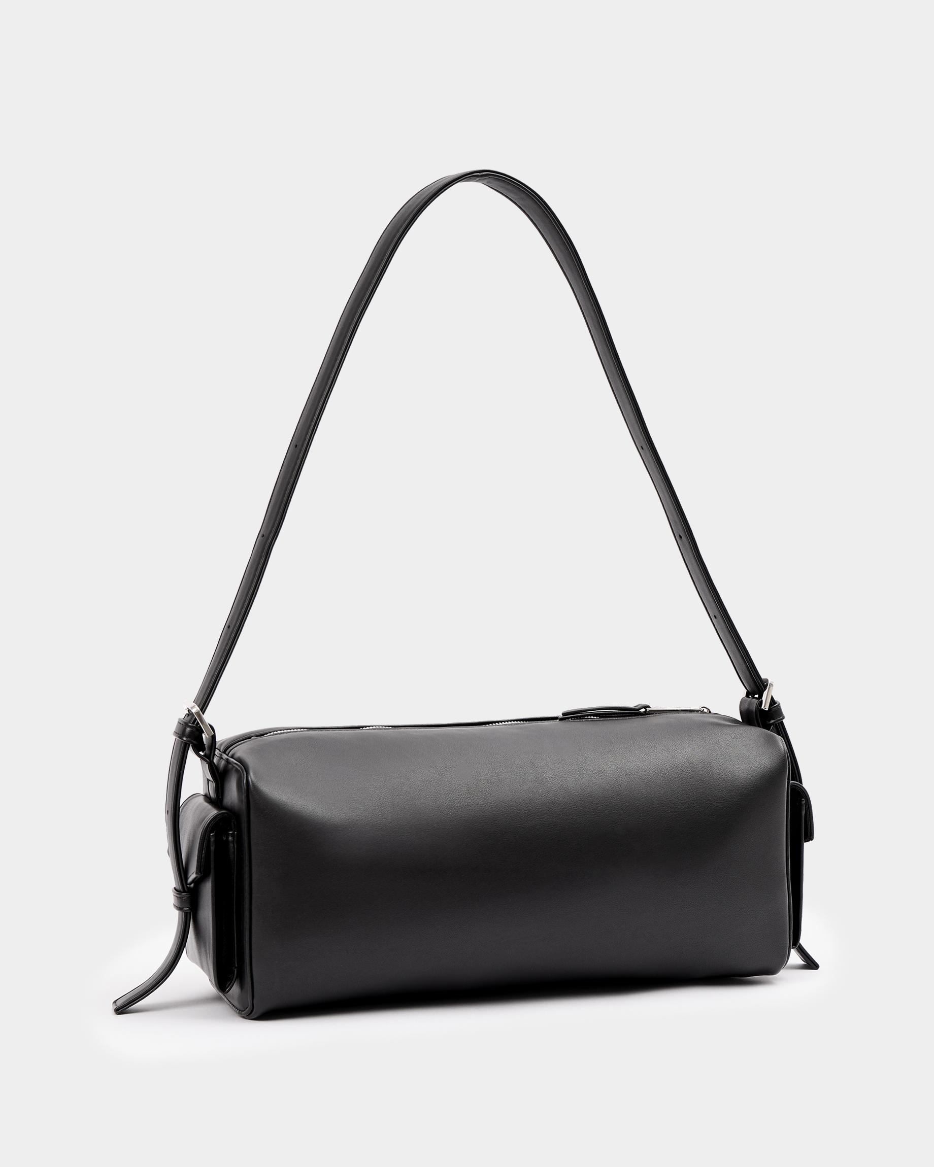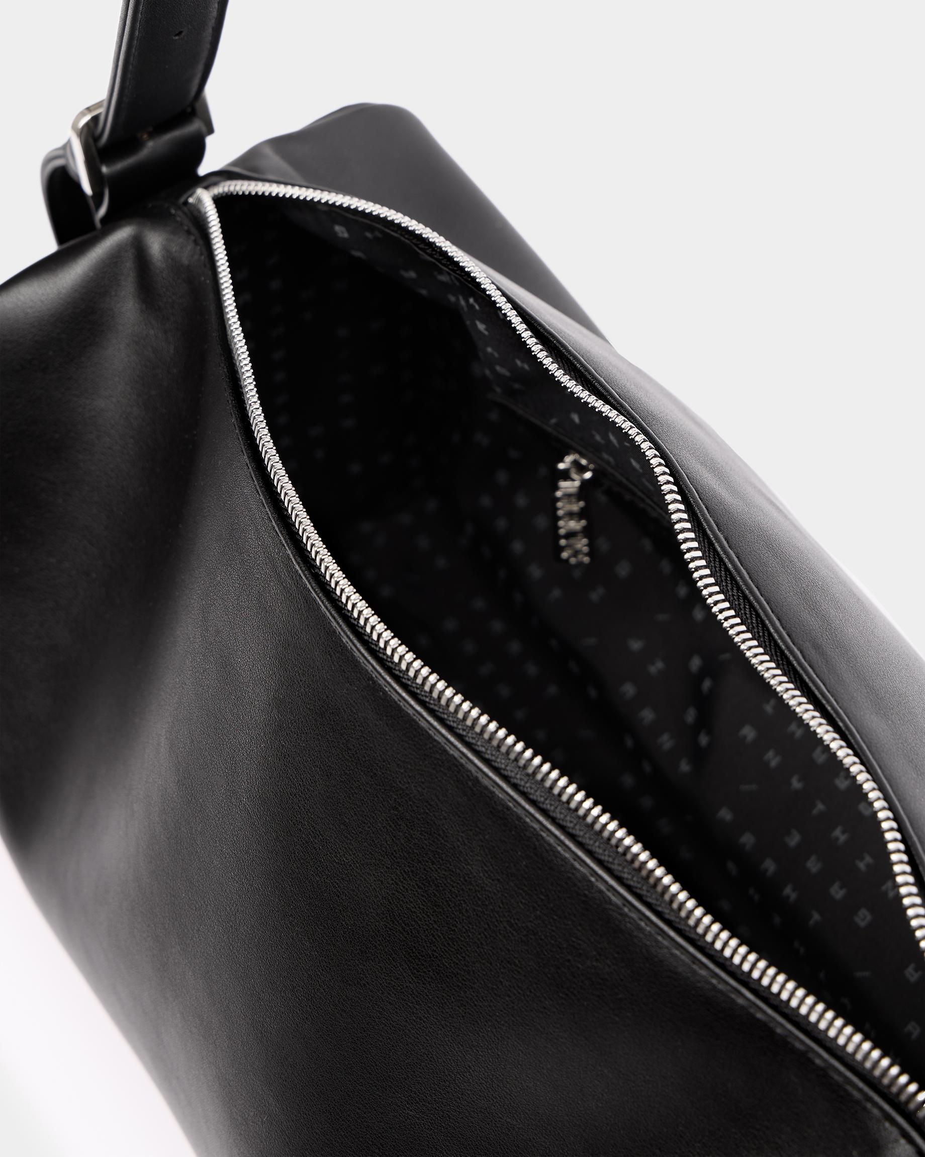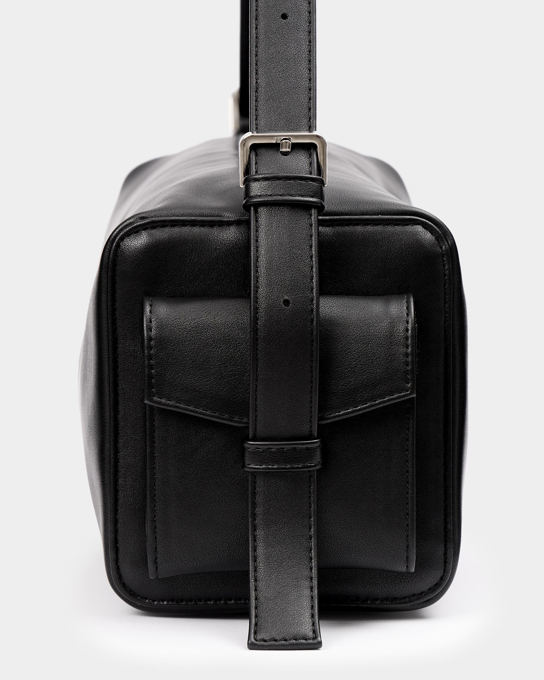 Вместительная мягкая сумка прямоугольной формы из экокожи в чернром цвете