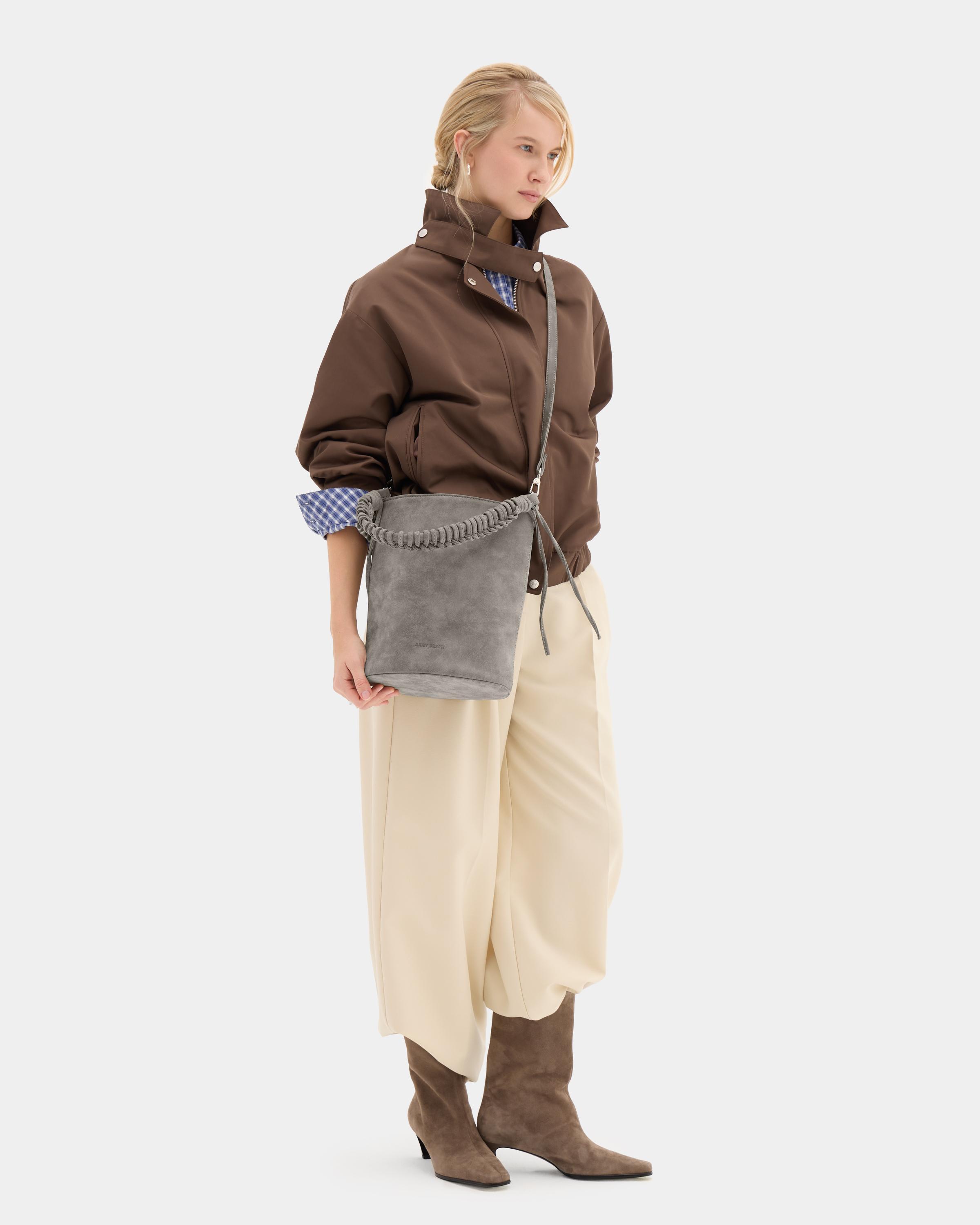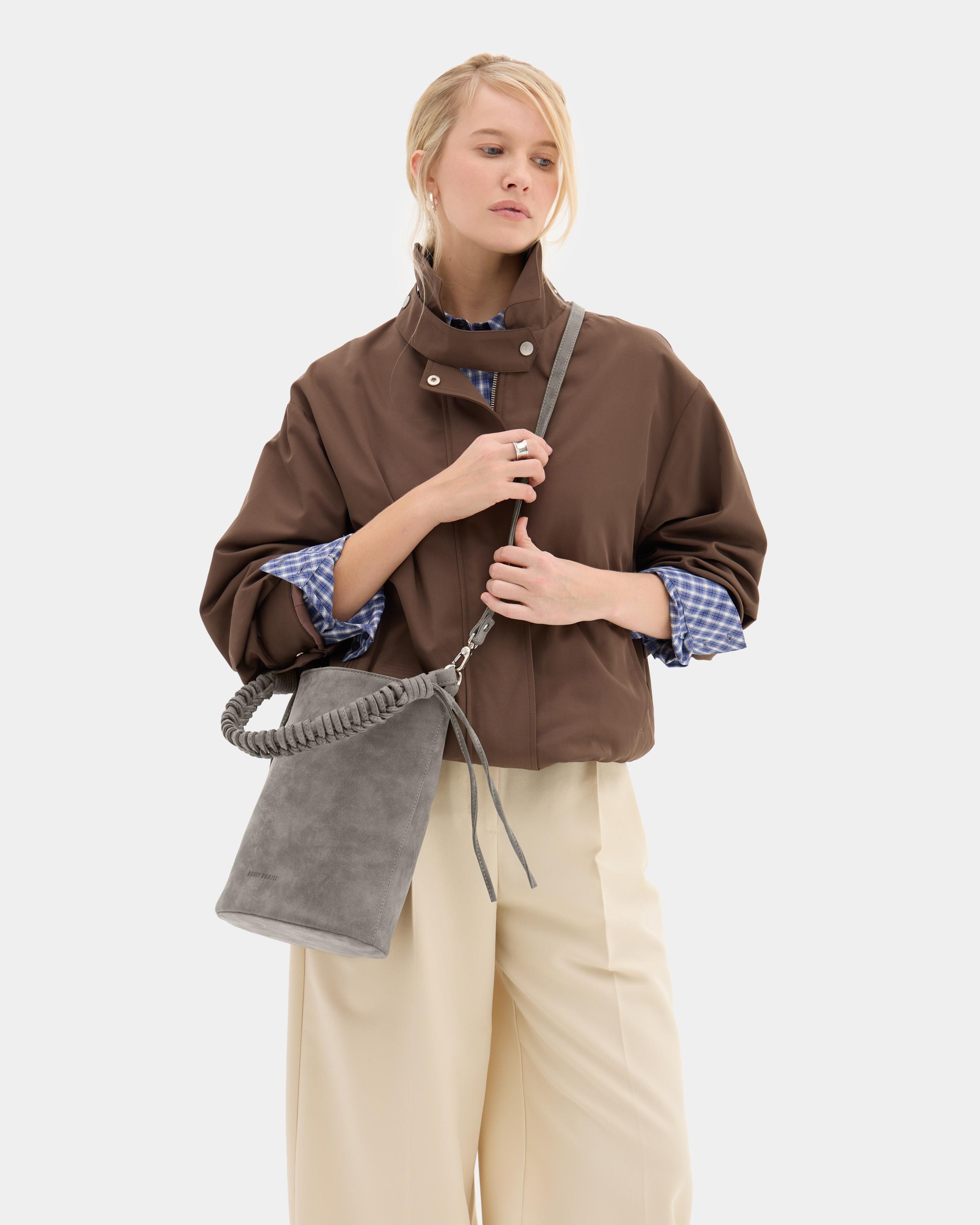 Сумка-ведро с плетеной ручкой и дополнительным ремнем