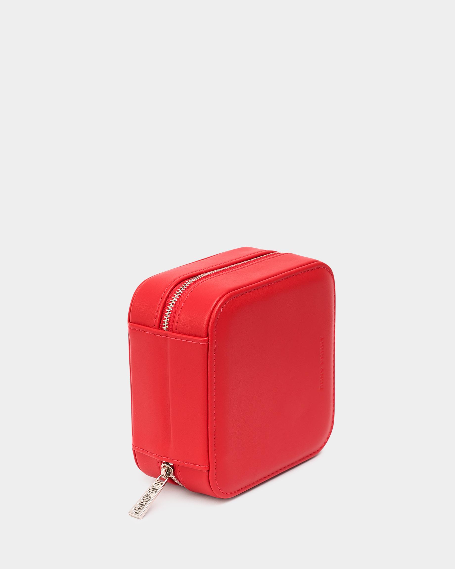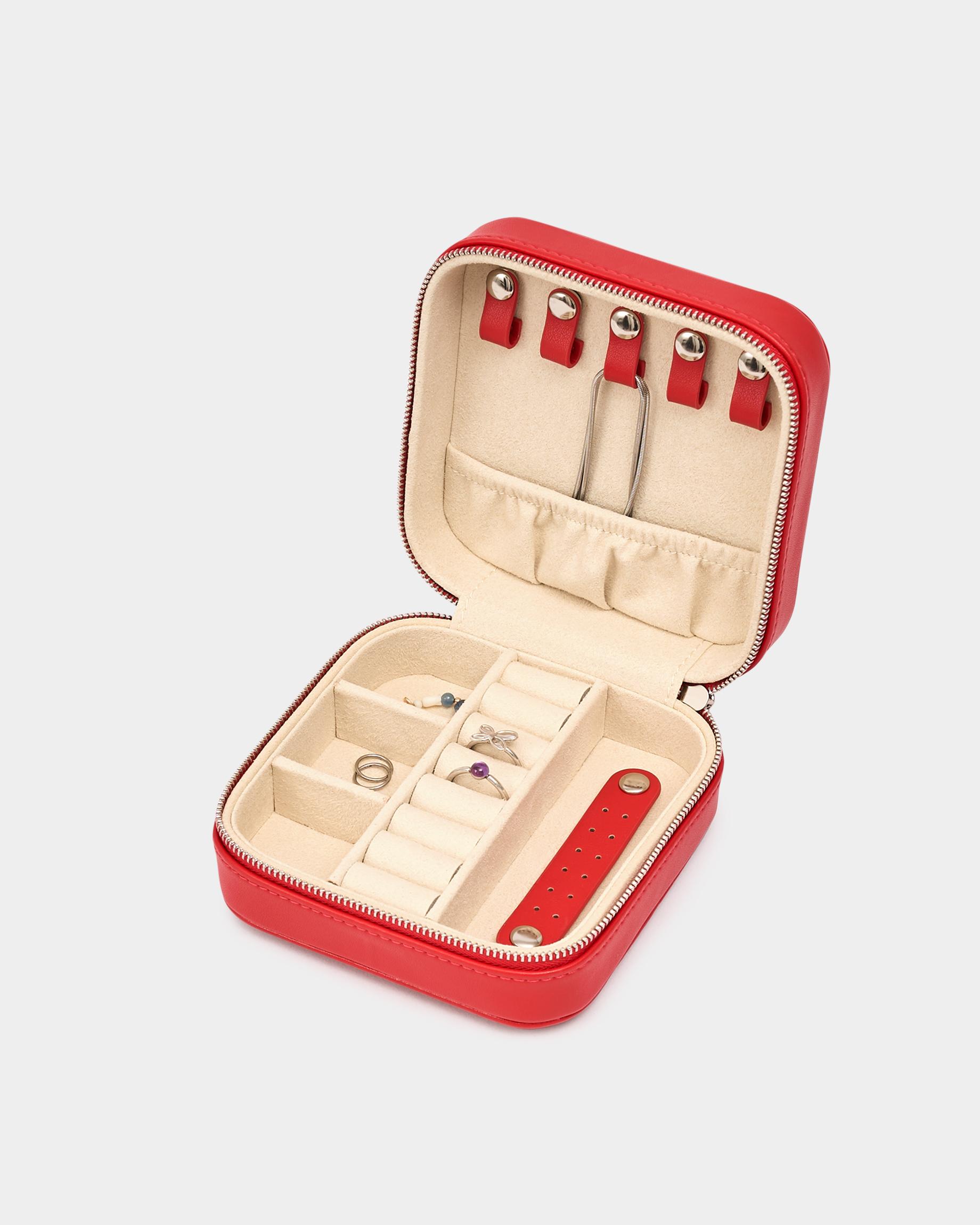 Шкатулка - холдер для хранения украшений из экокожи в красном цвете