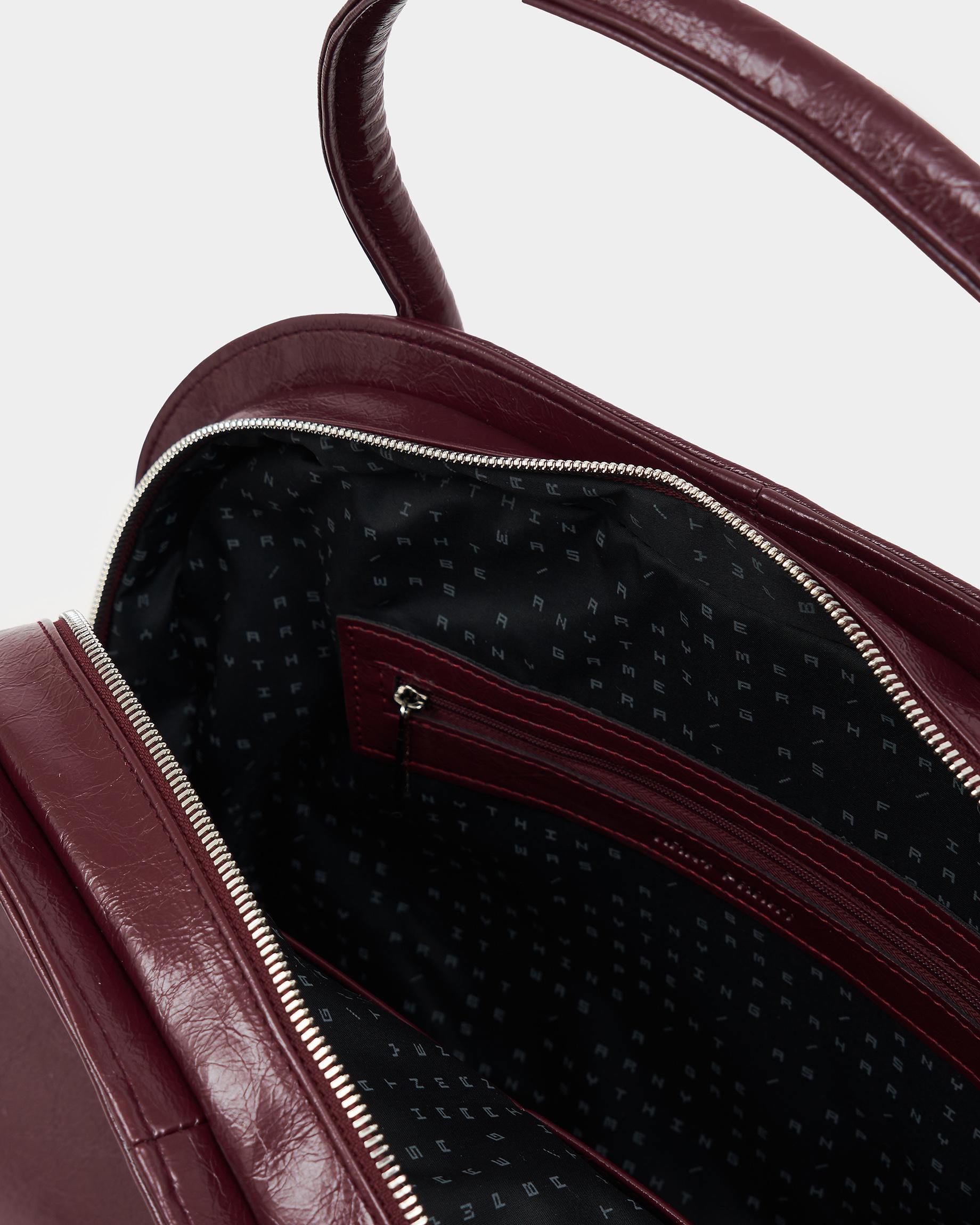 Вместительная каркасная сумка из лаковой экокожи для ноутбука 13-14" с дополнительным ремнем в комплекте
