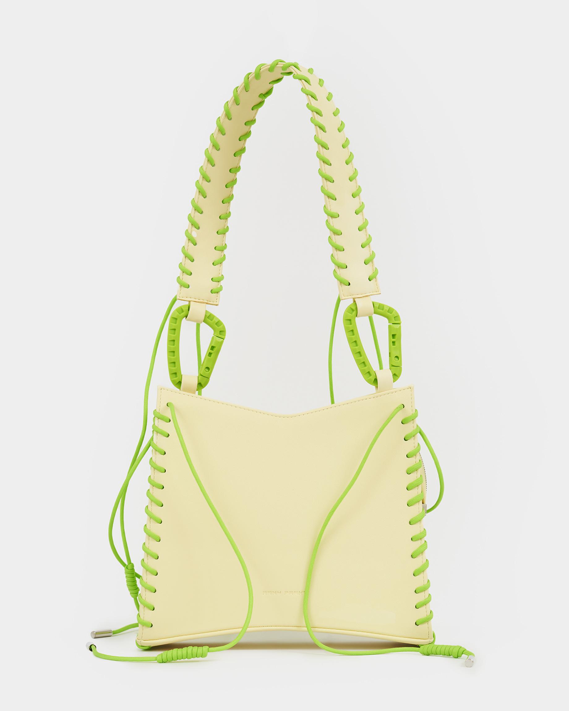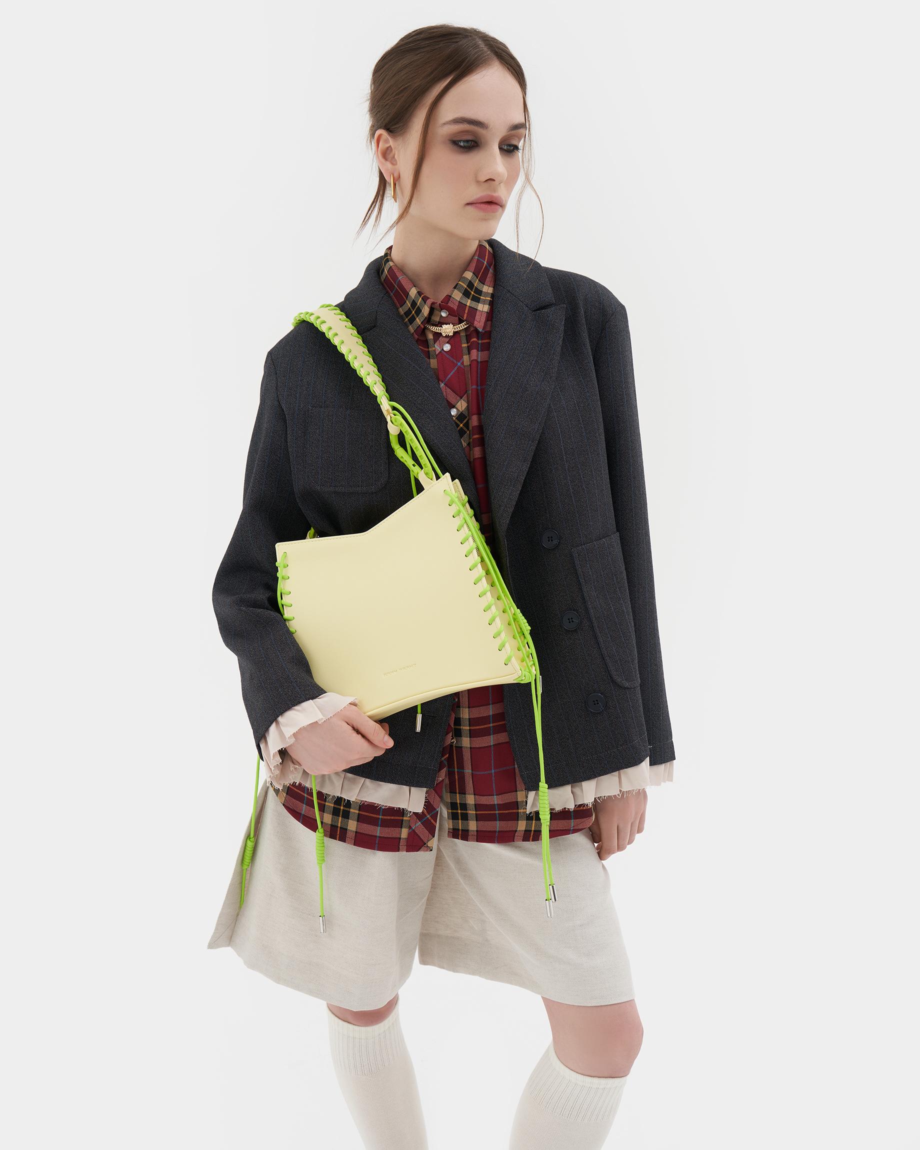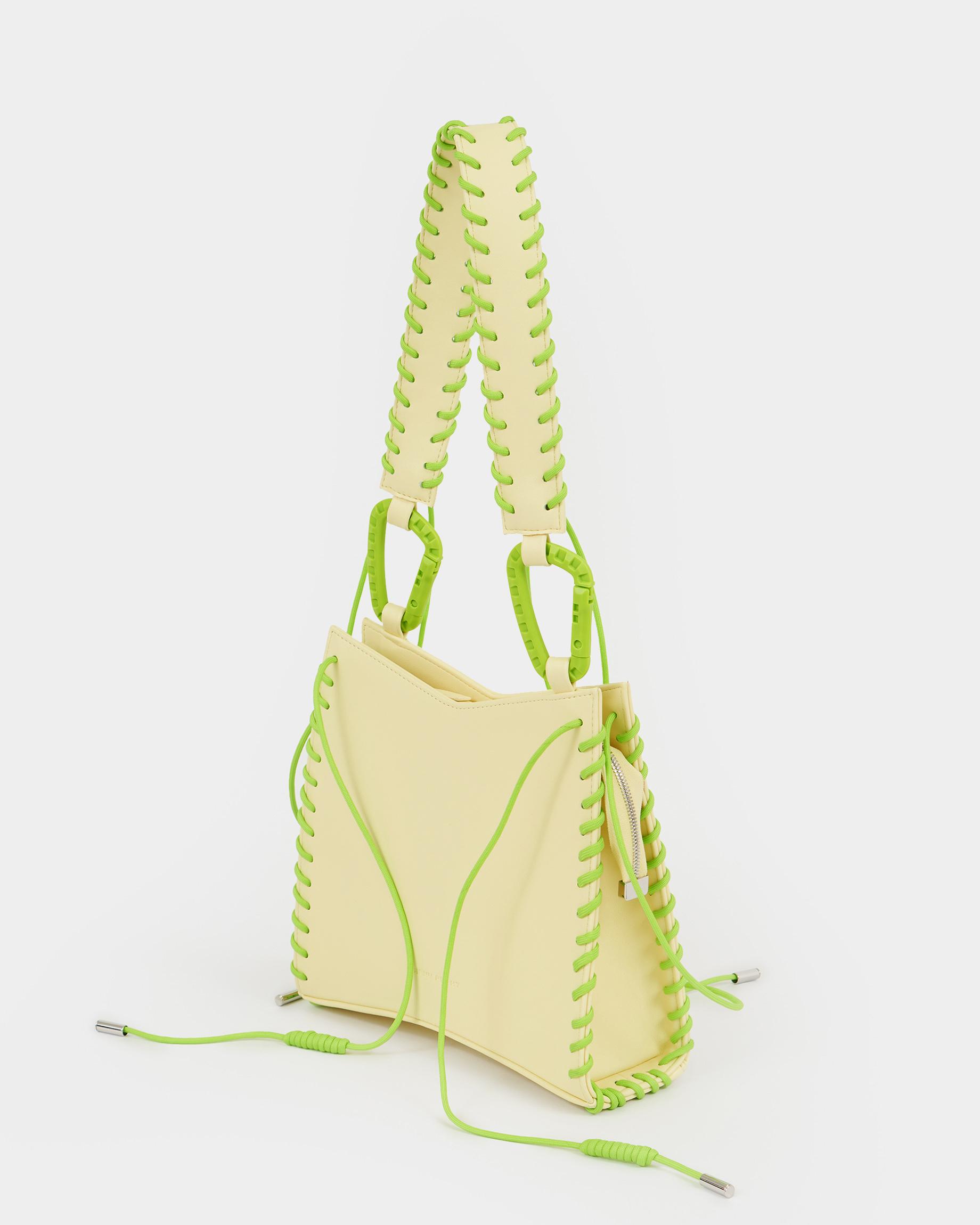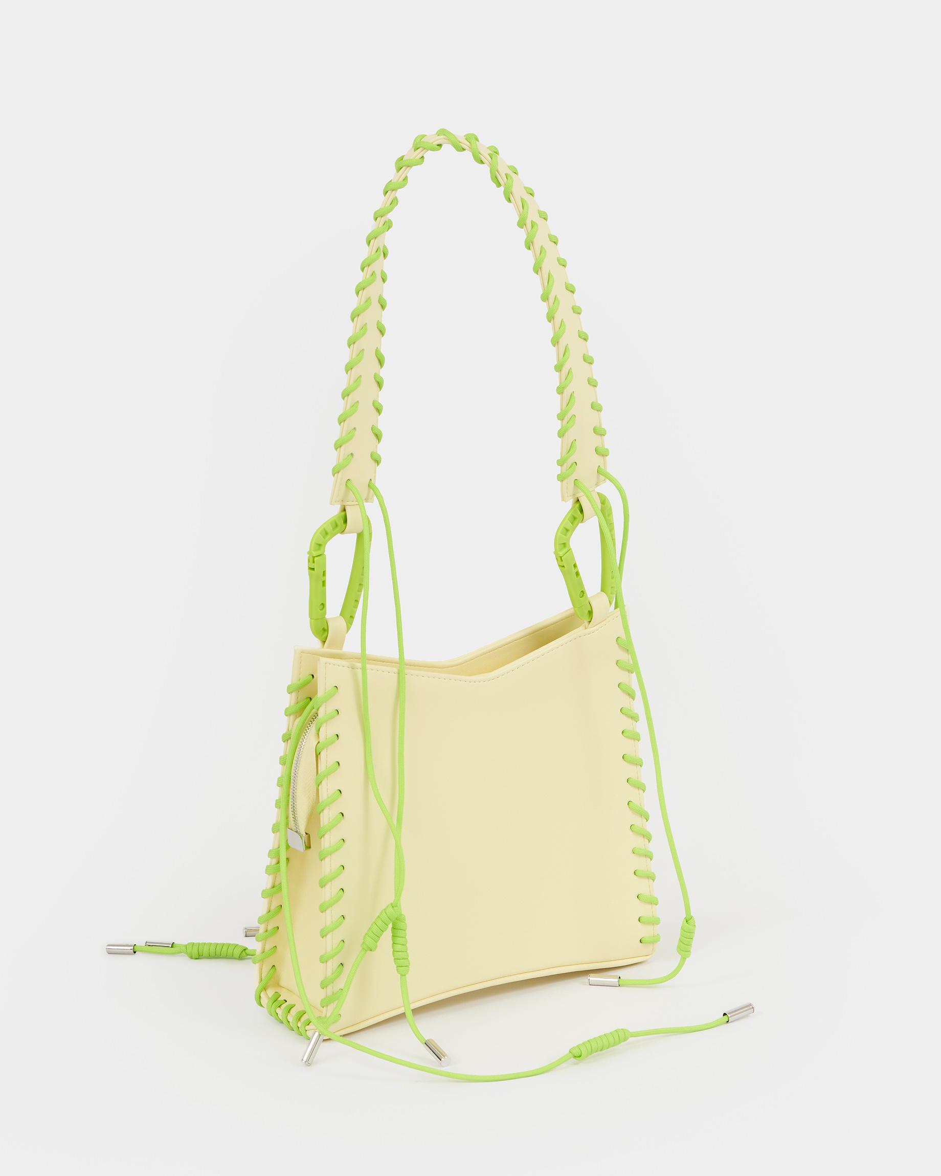 Каркасная сумка с ремнем через плечо и декоративной шнуровкой в цвете лимонный сорбет
