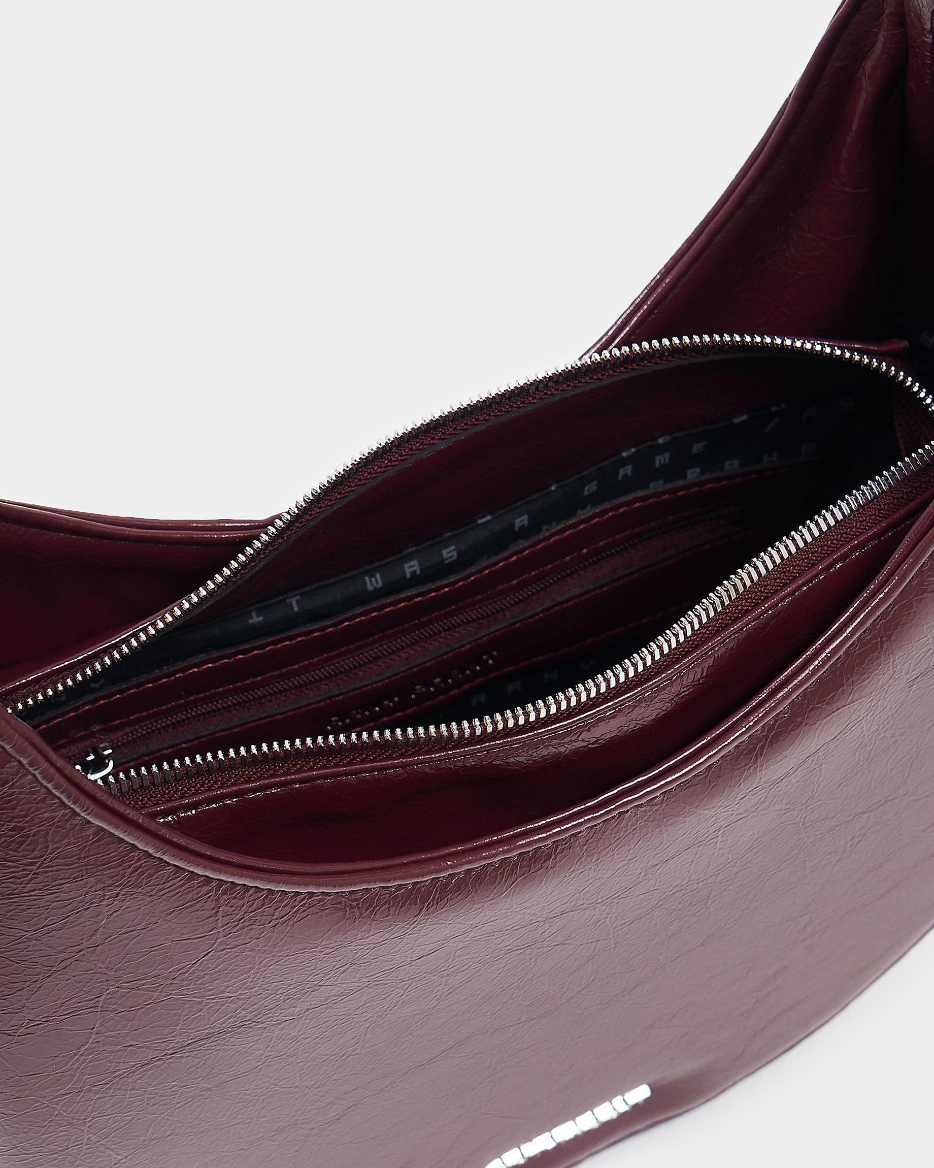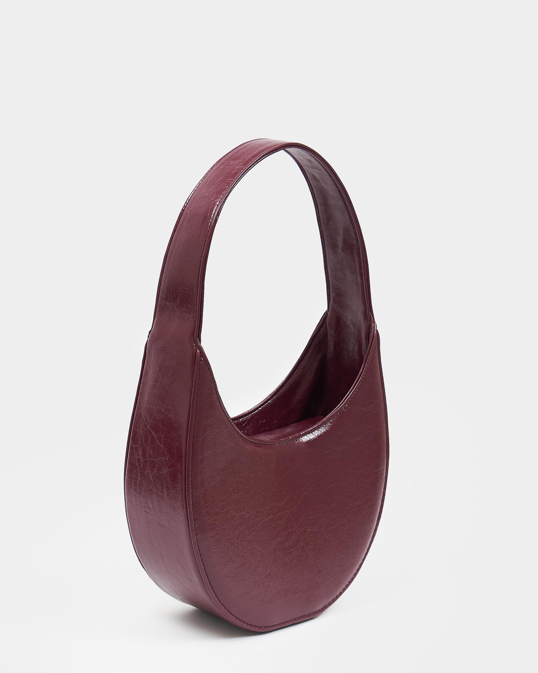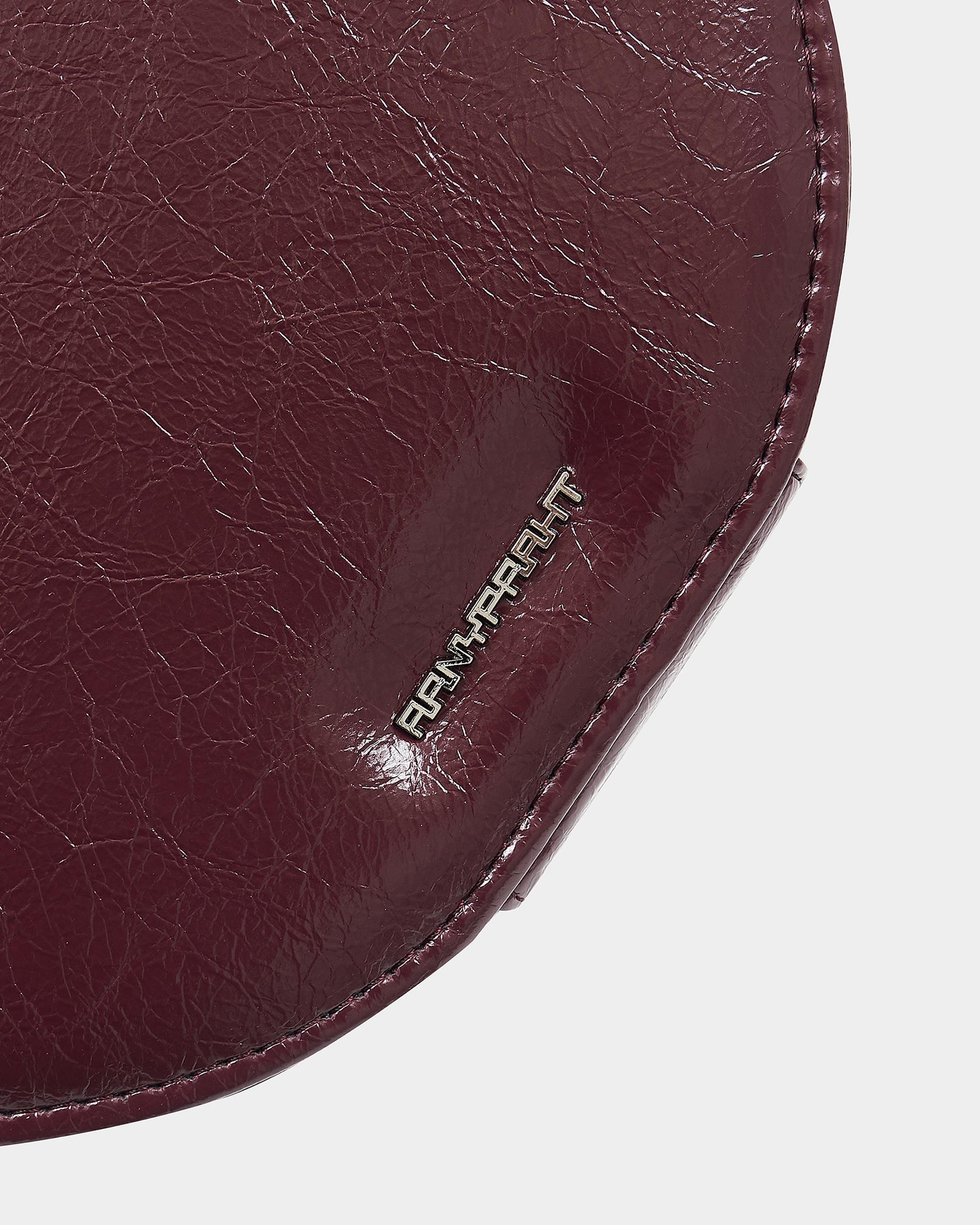 Каркасная сумка круглой формы из лаковой экокожи с широкой ручкой