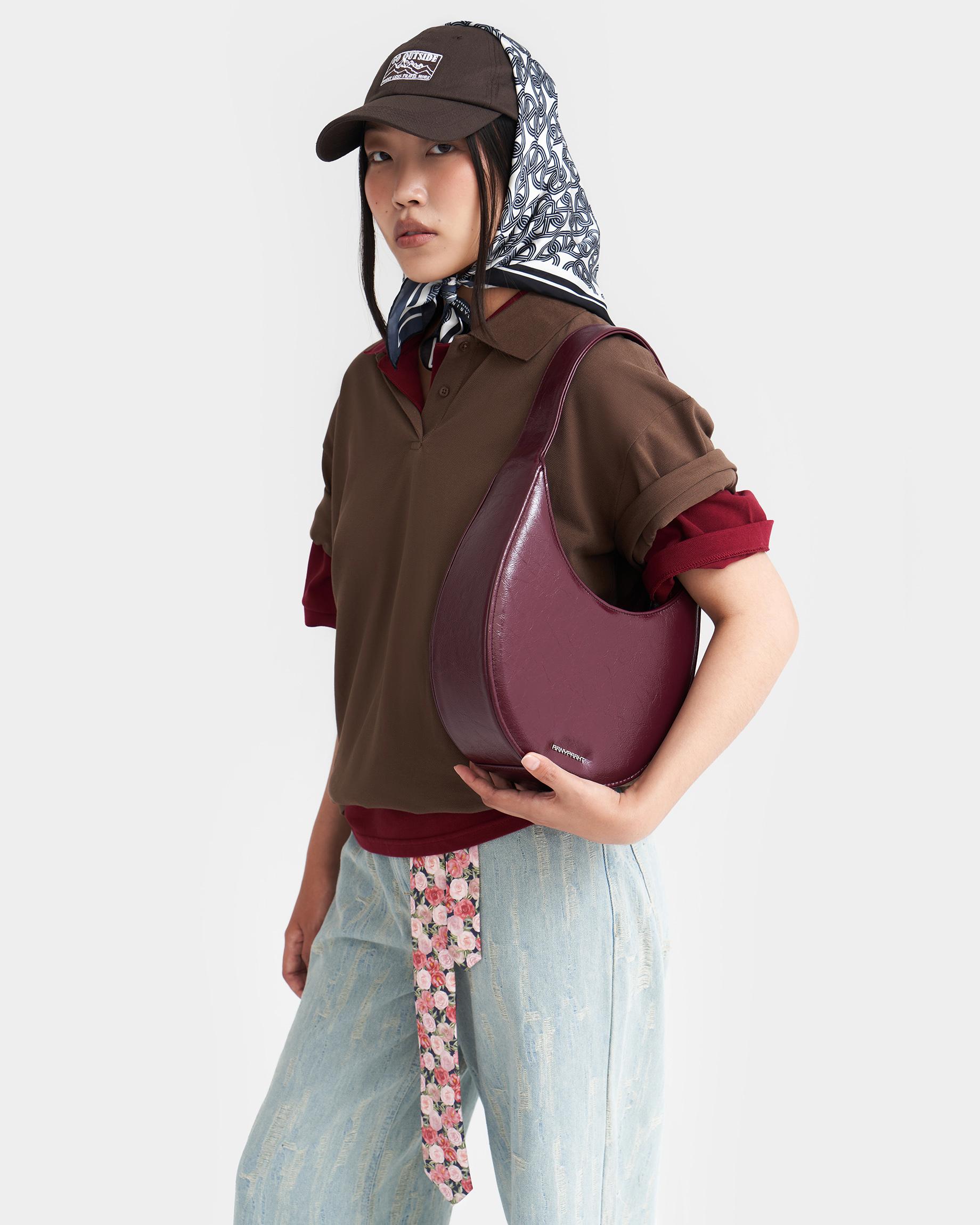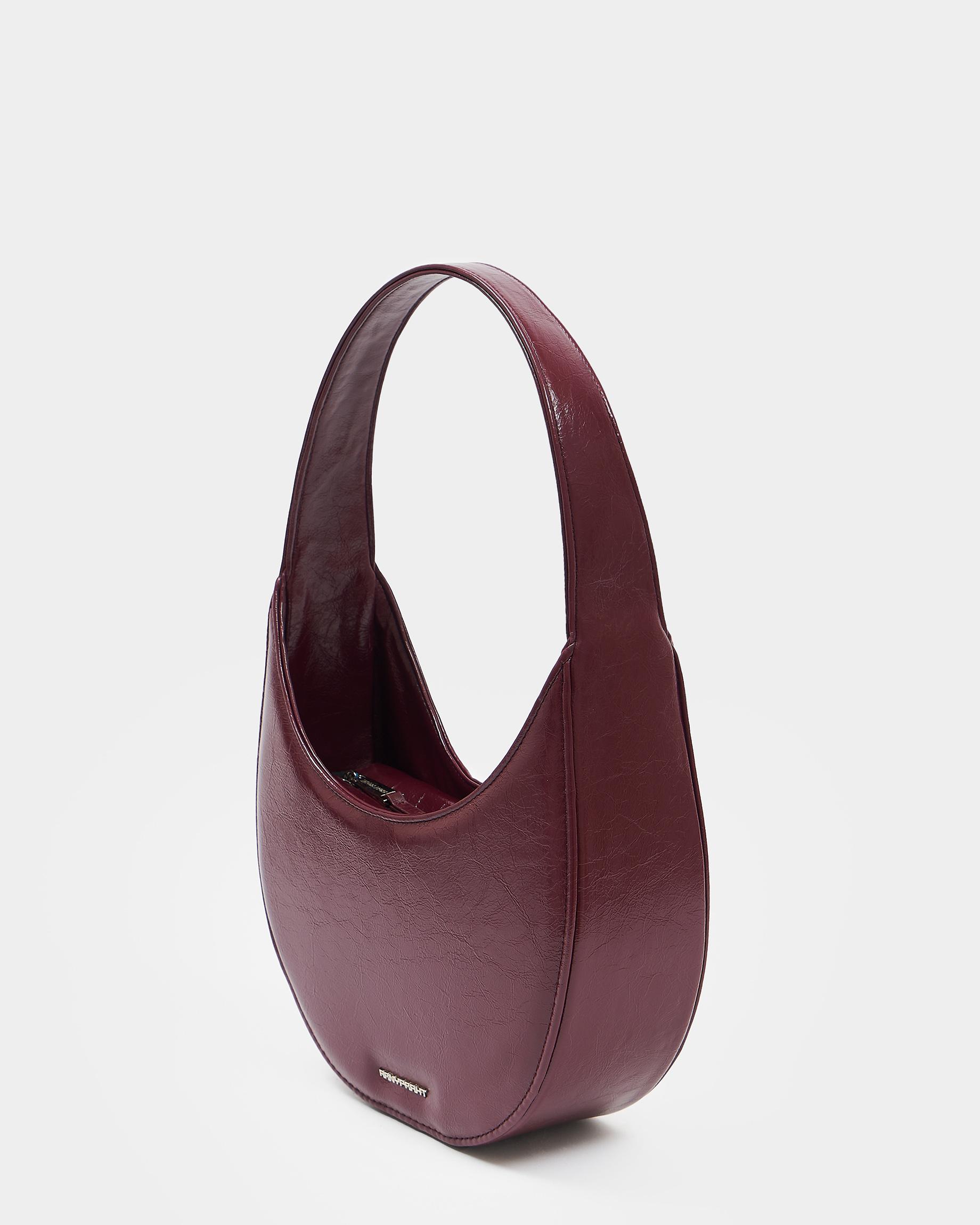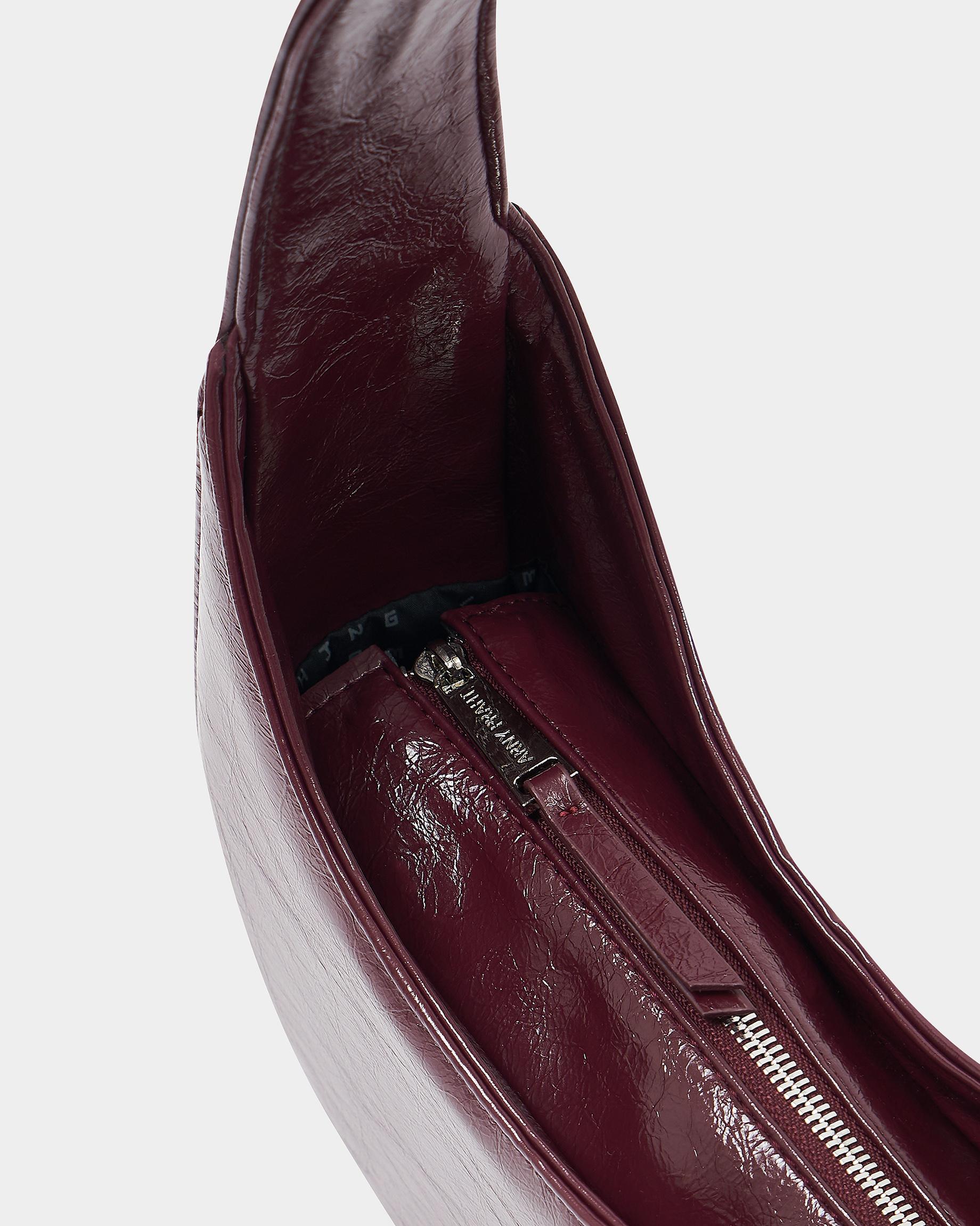 Каркасная сумка круглой формы из лаковой экокожи с широкой ручкой