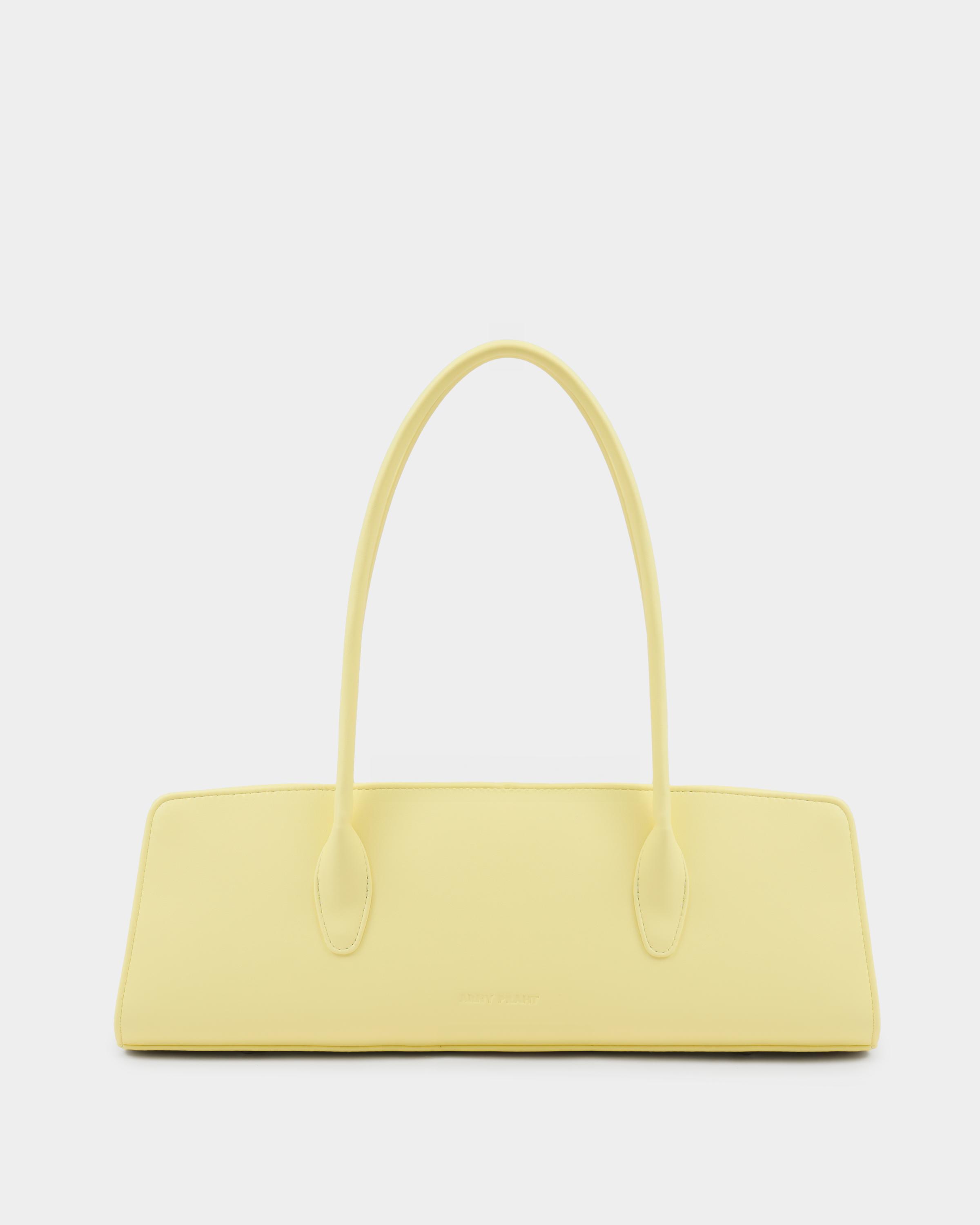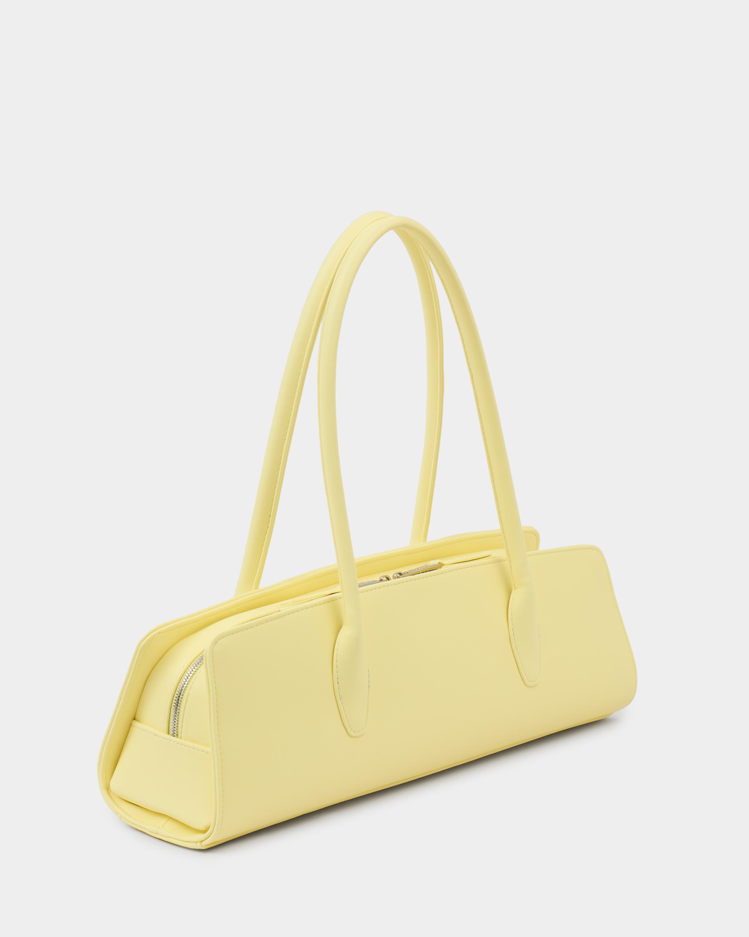 Утончённая сумка-такса с тонкими ручками из экокожи в желтом цвете