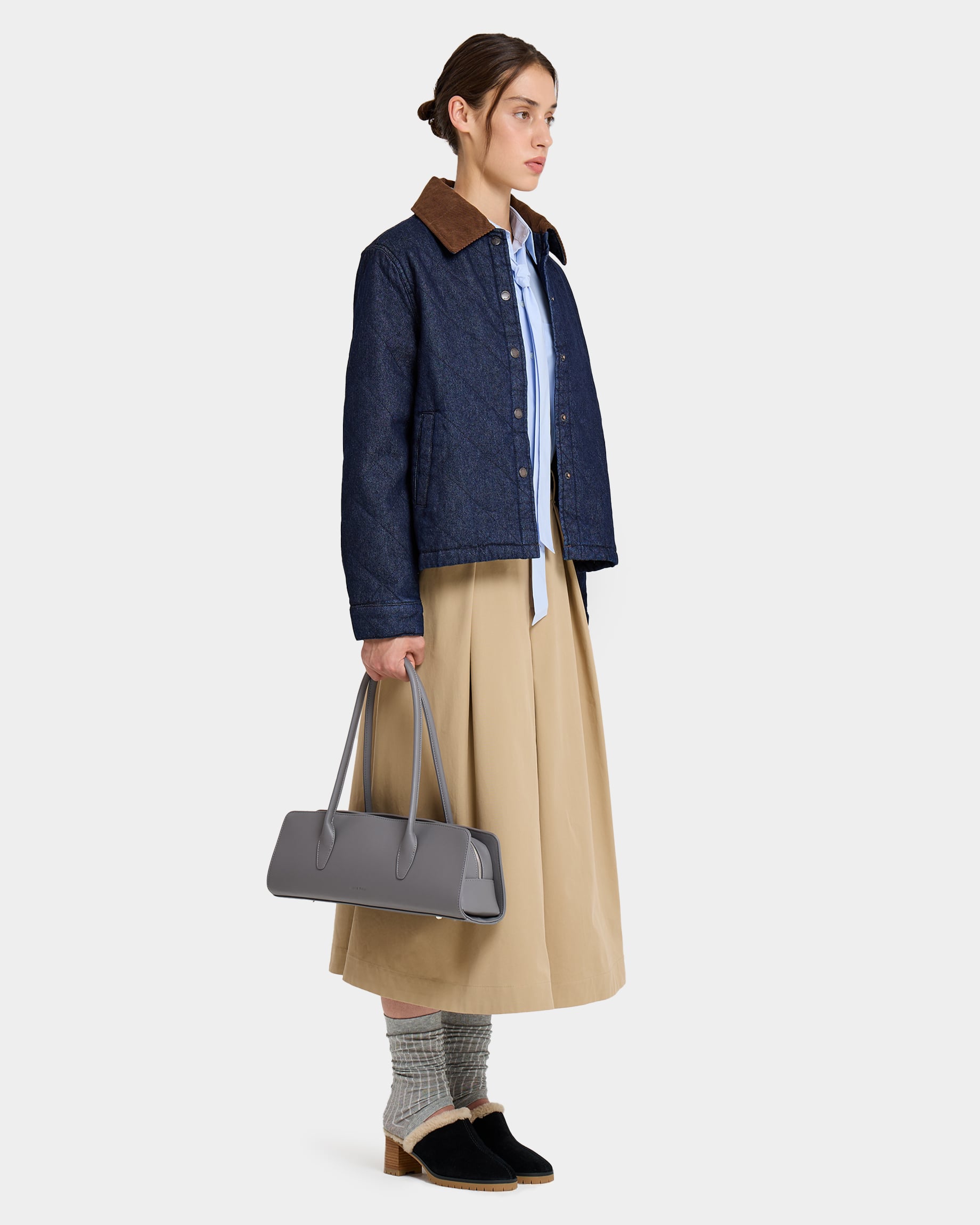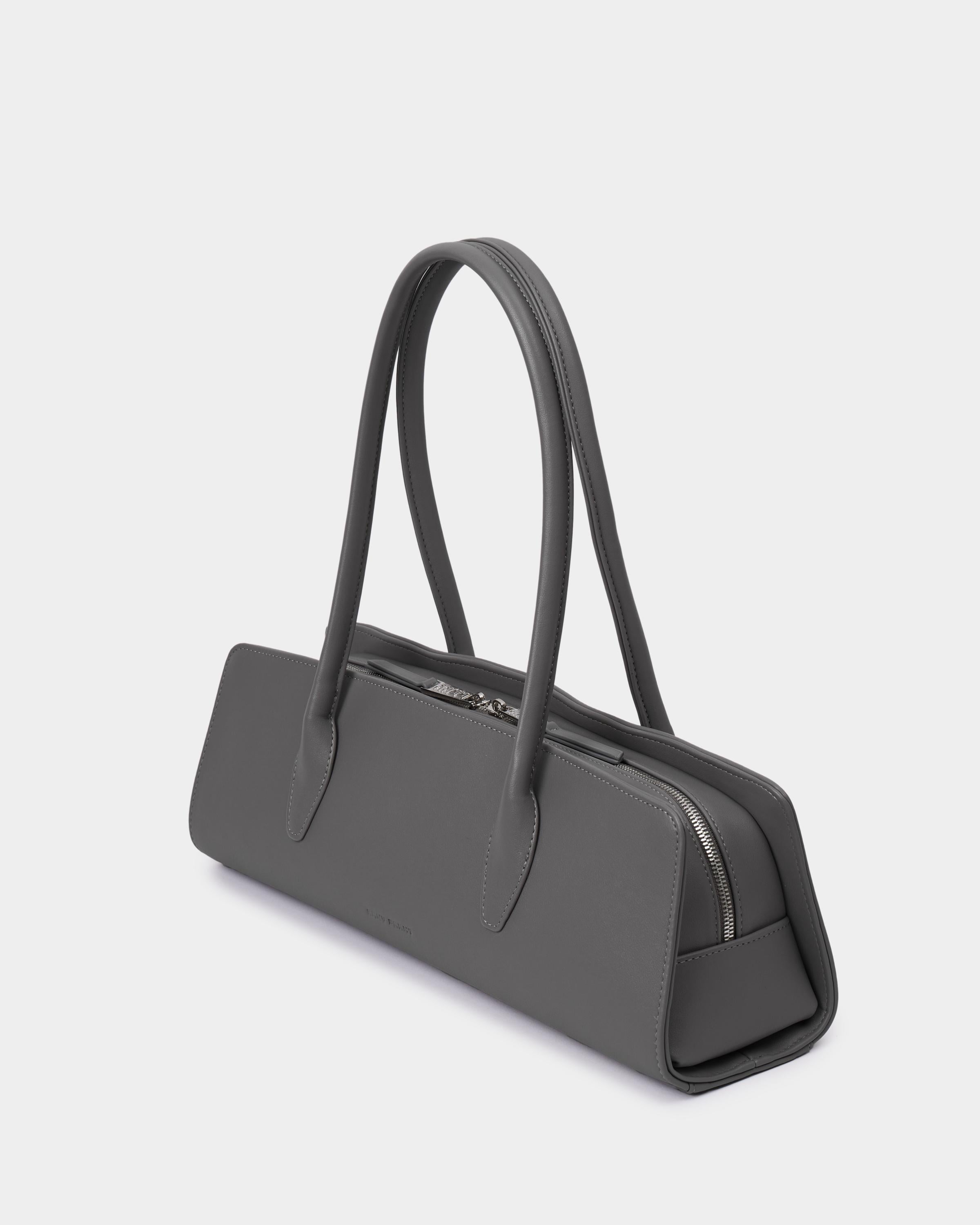Утончённая сумка-такса с тонкими ручками из экокожи в сером цвете