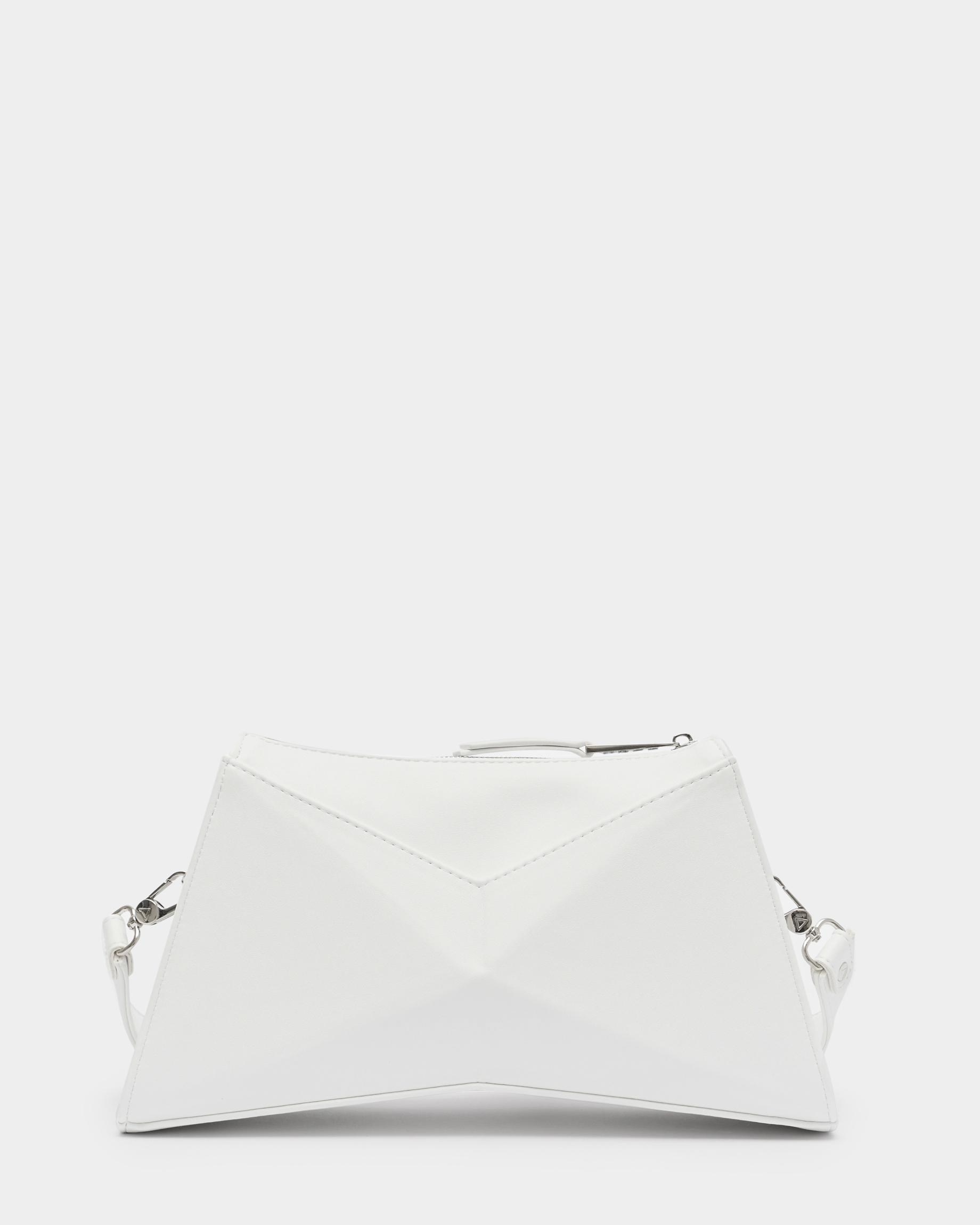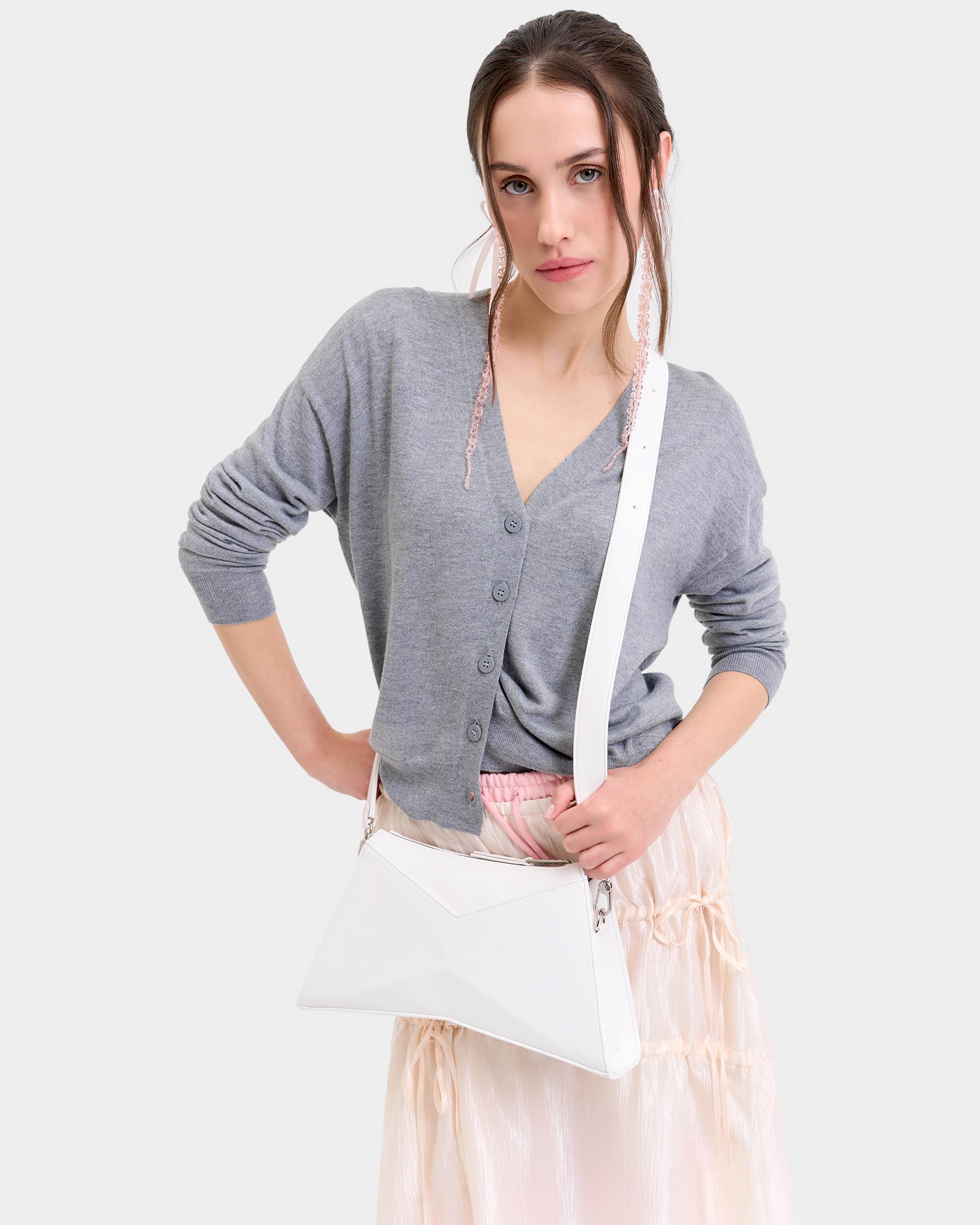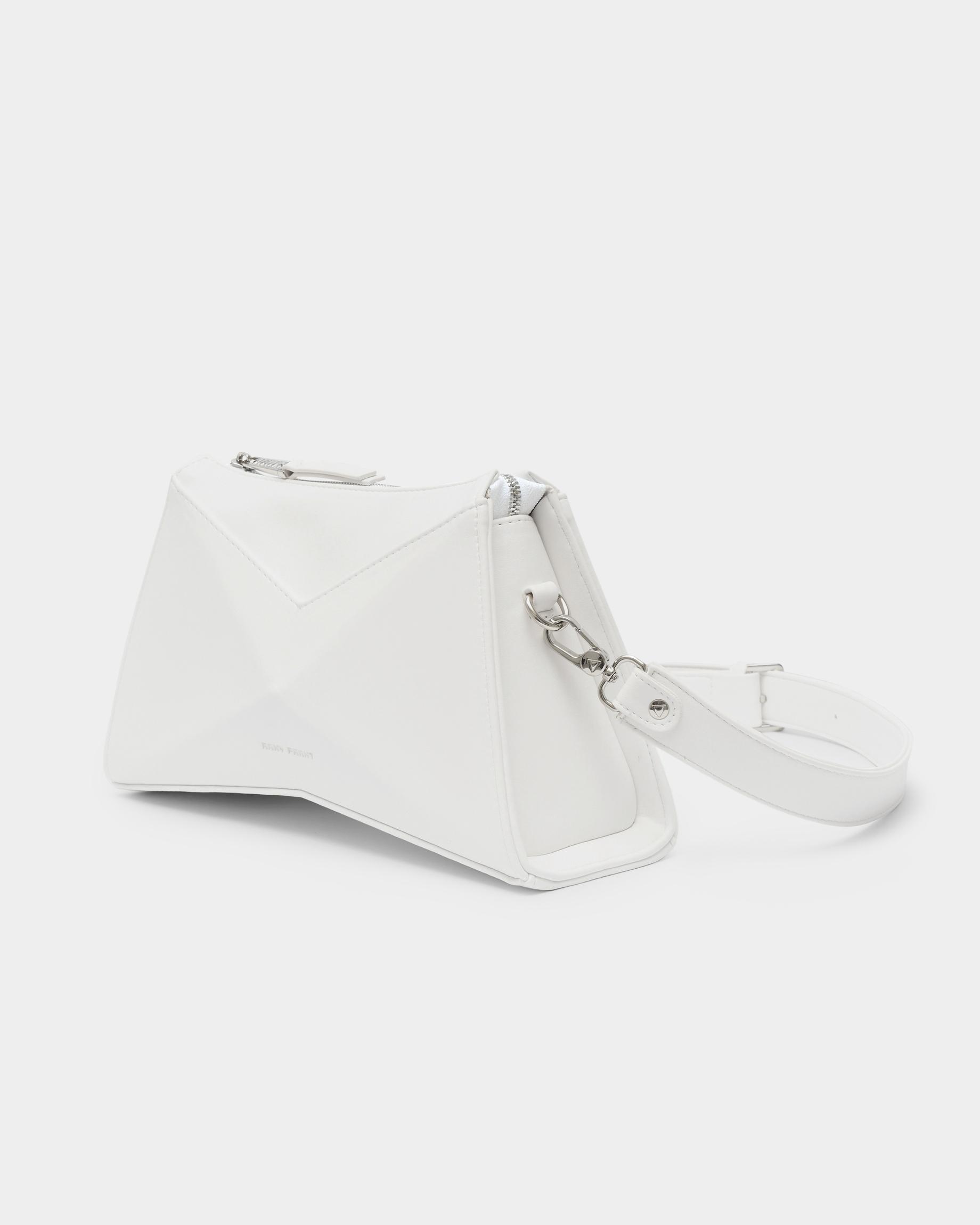 Каркасная сумка-багет геометричной формы в молочном цвете