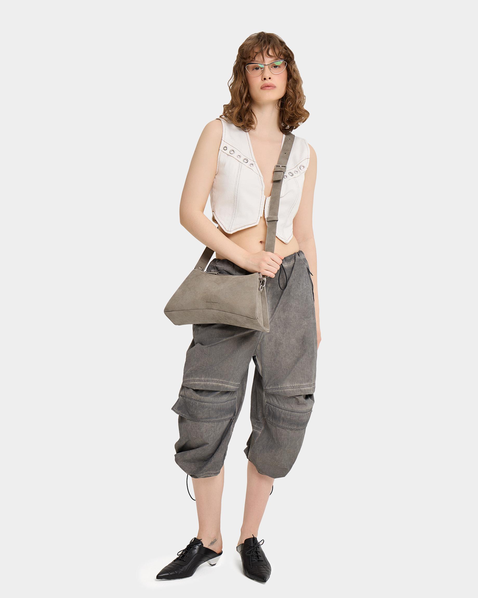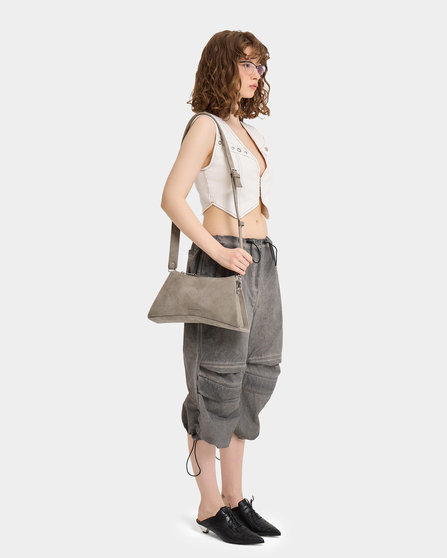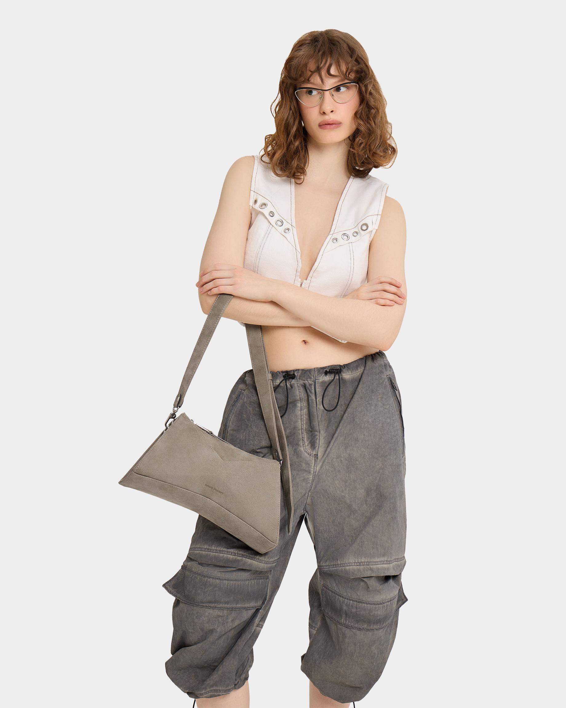 Каркасная сумка-багет геометричной формы в песочном цвете