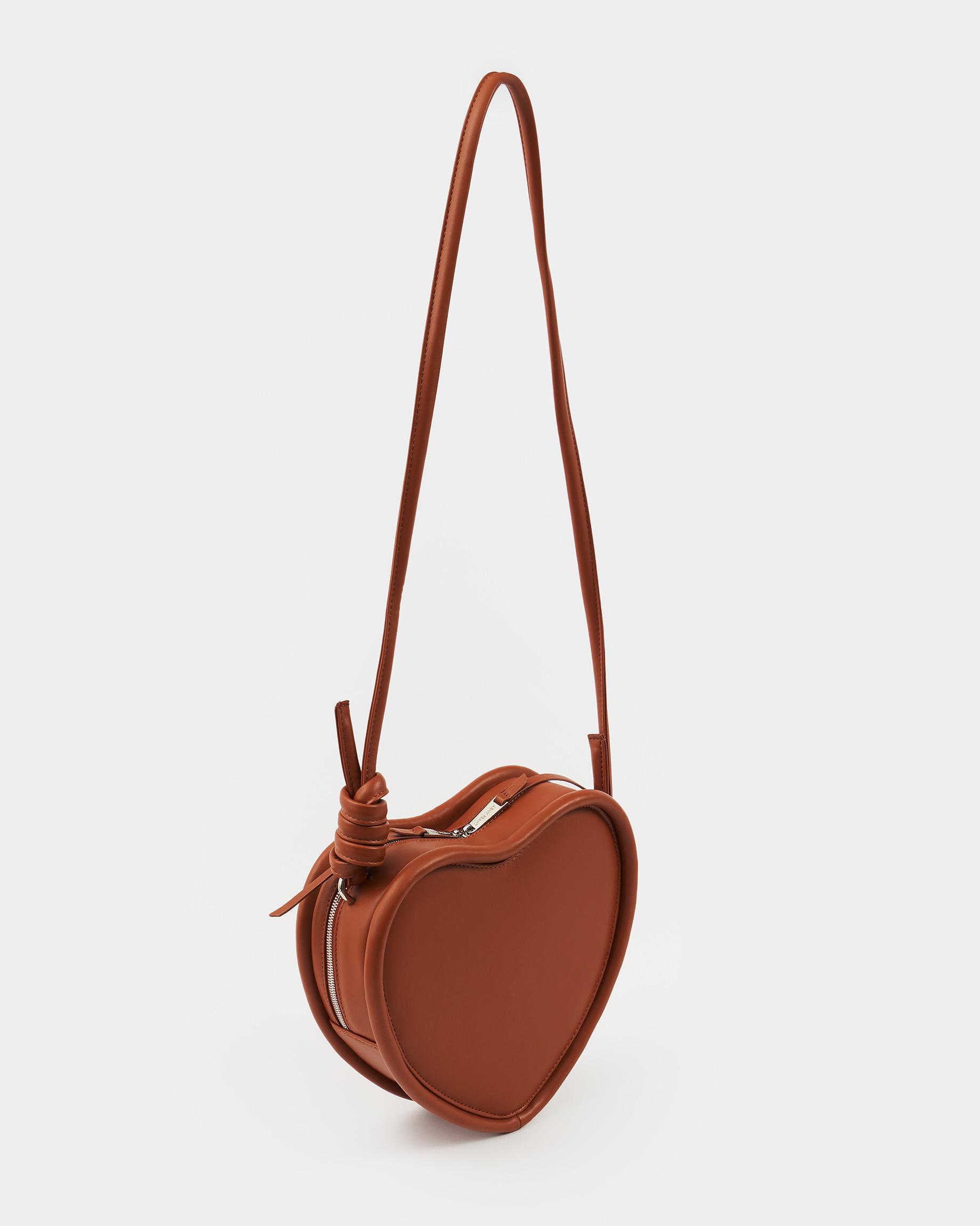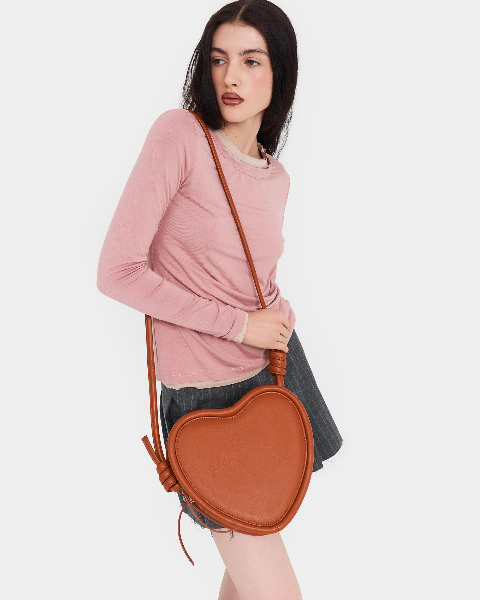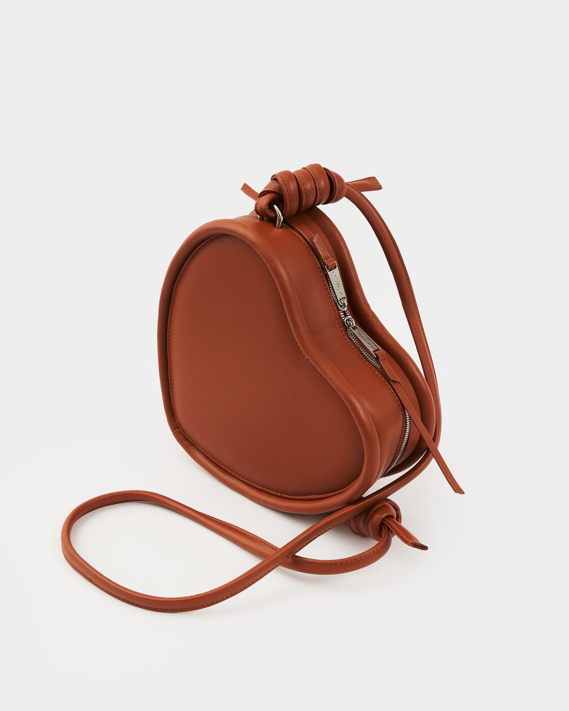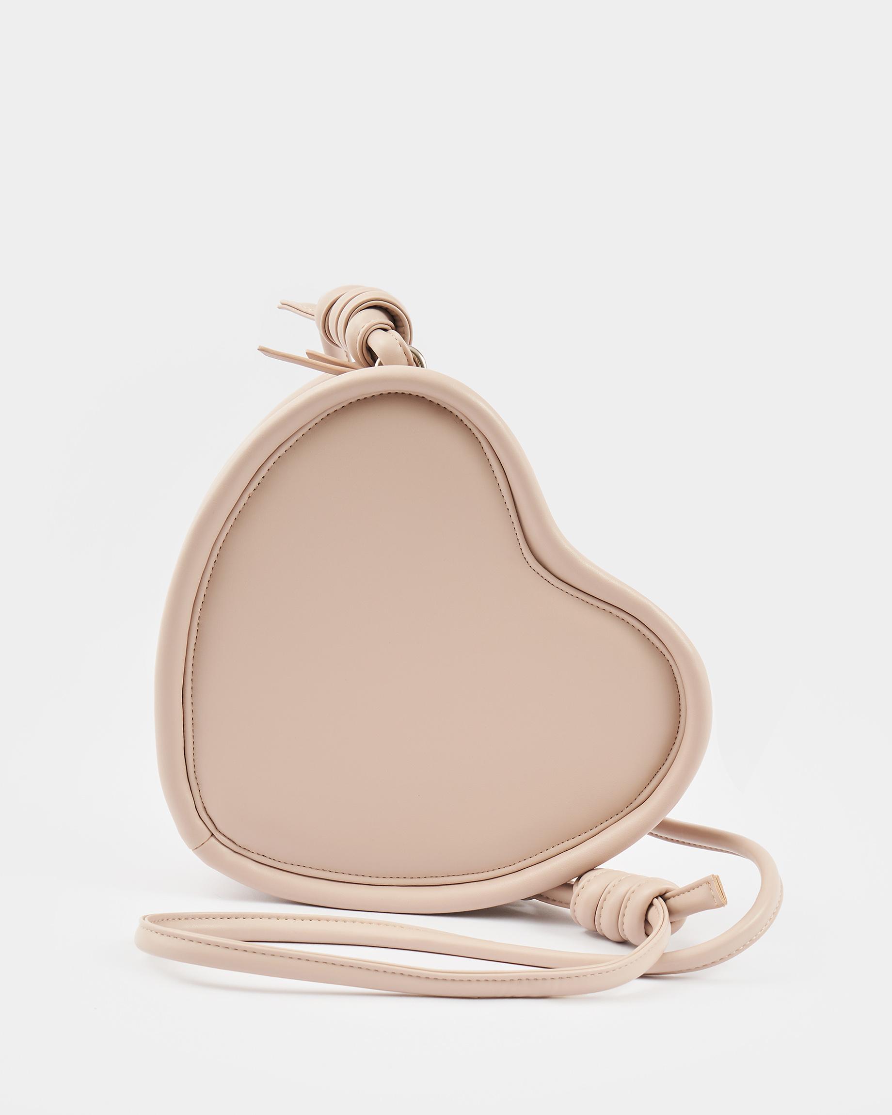 Каркасная сумка в форме сердца с тонким ремнем в виде жгута в цвете миндаль
