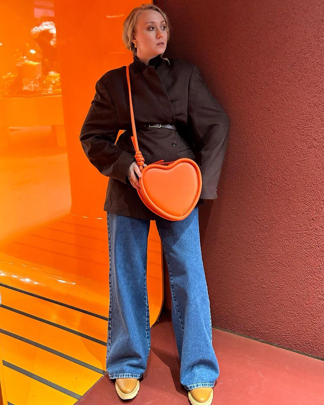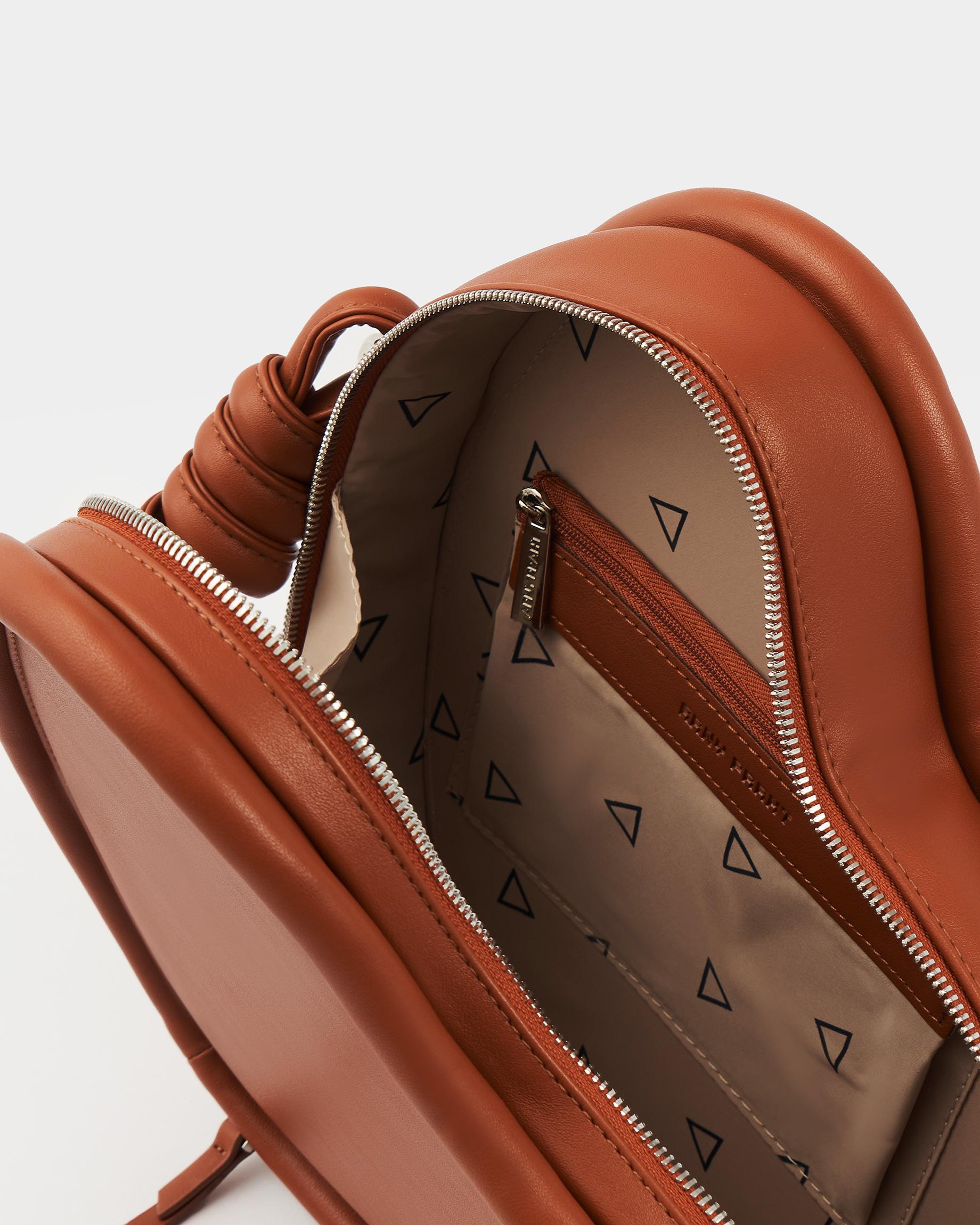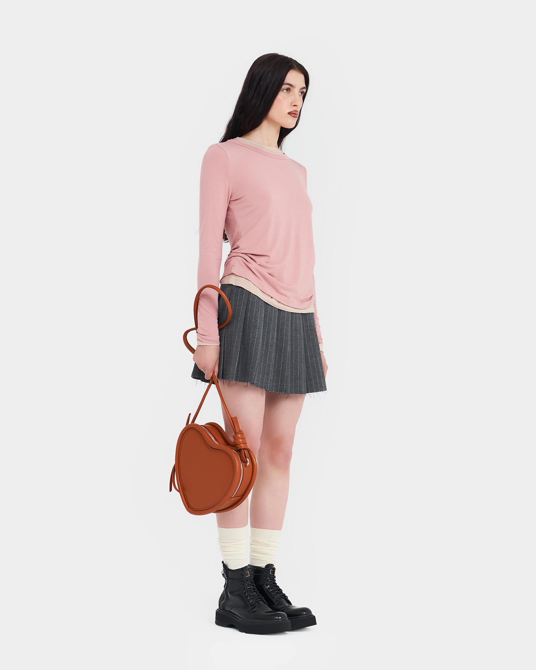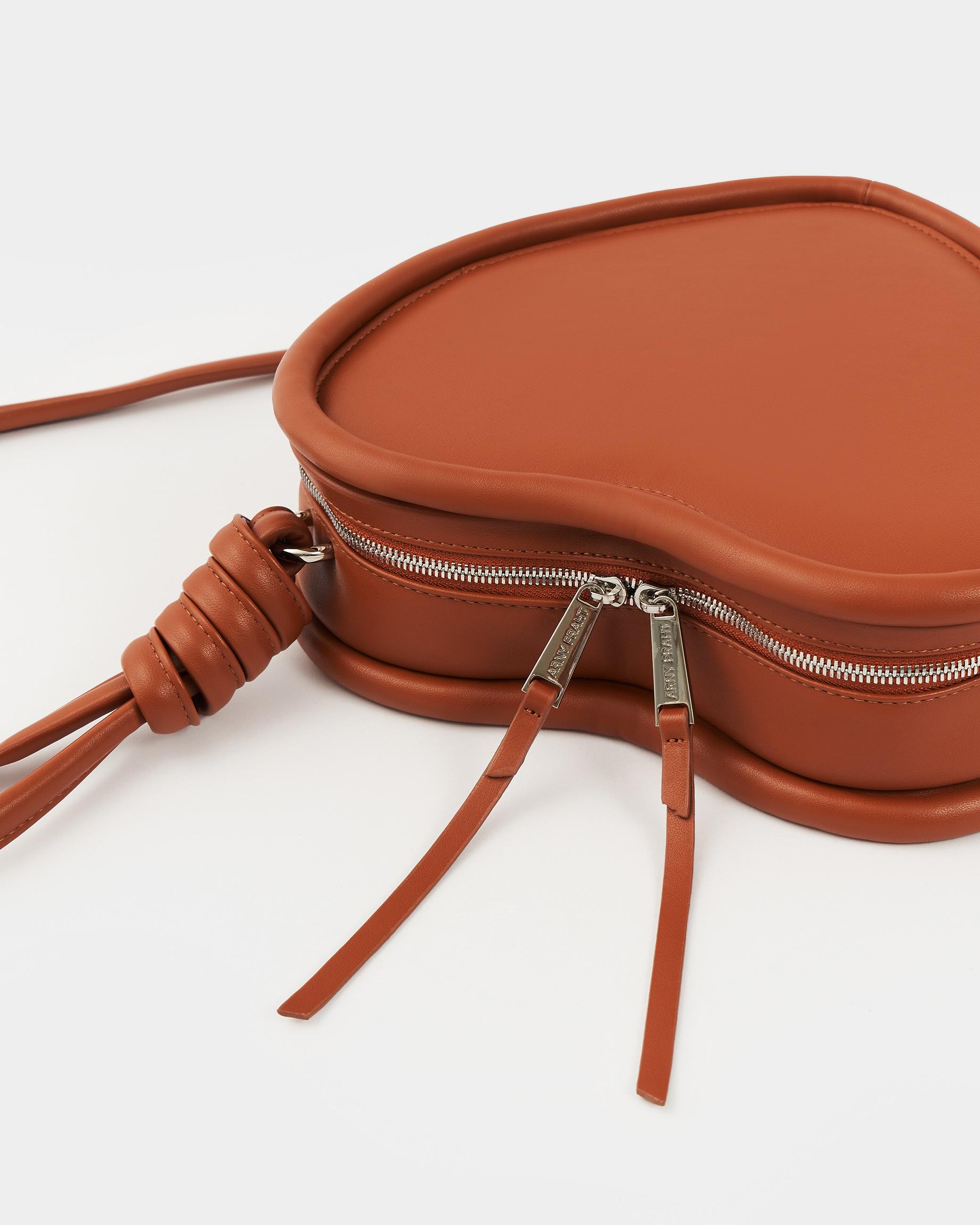 Каркасная сумка в форме сердца с тонким ремнем в виде жгута в цвете миндаль