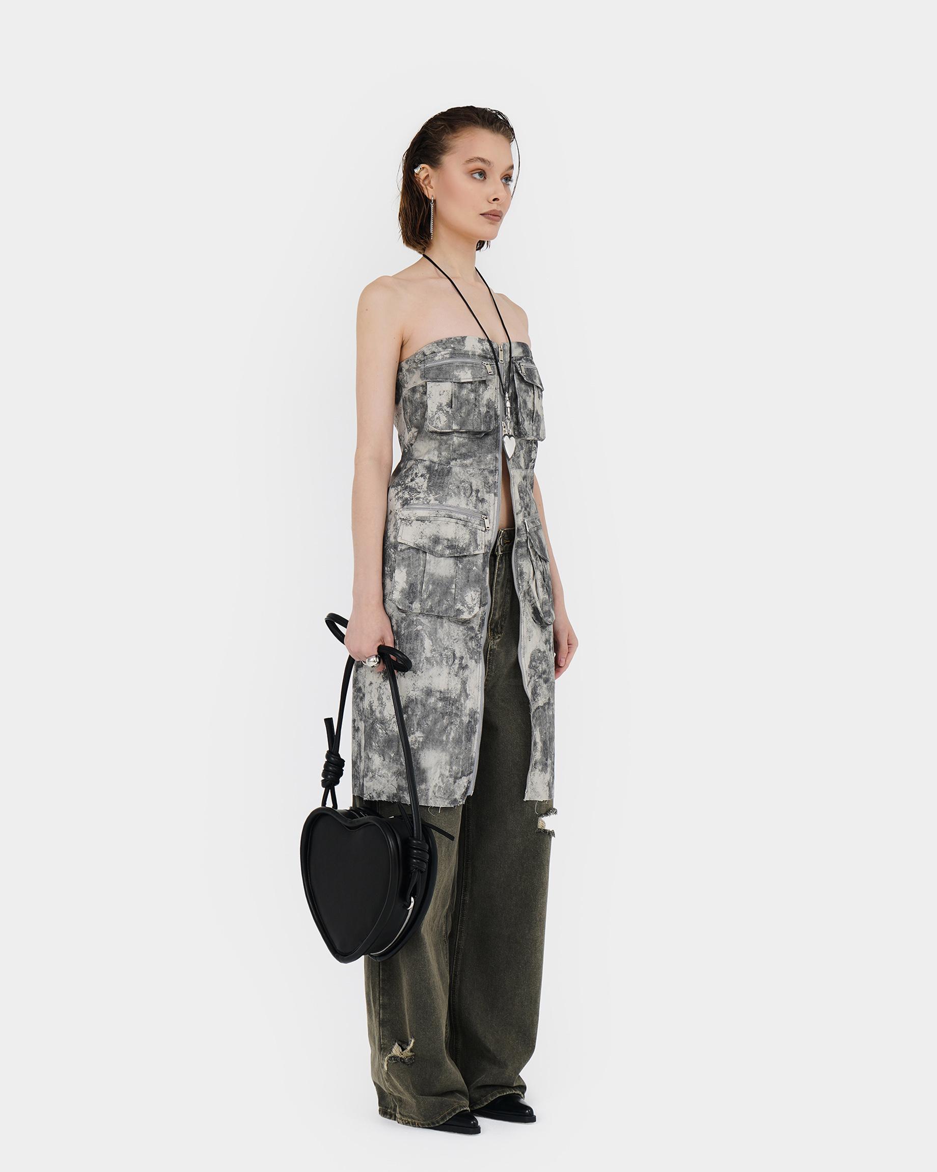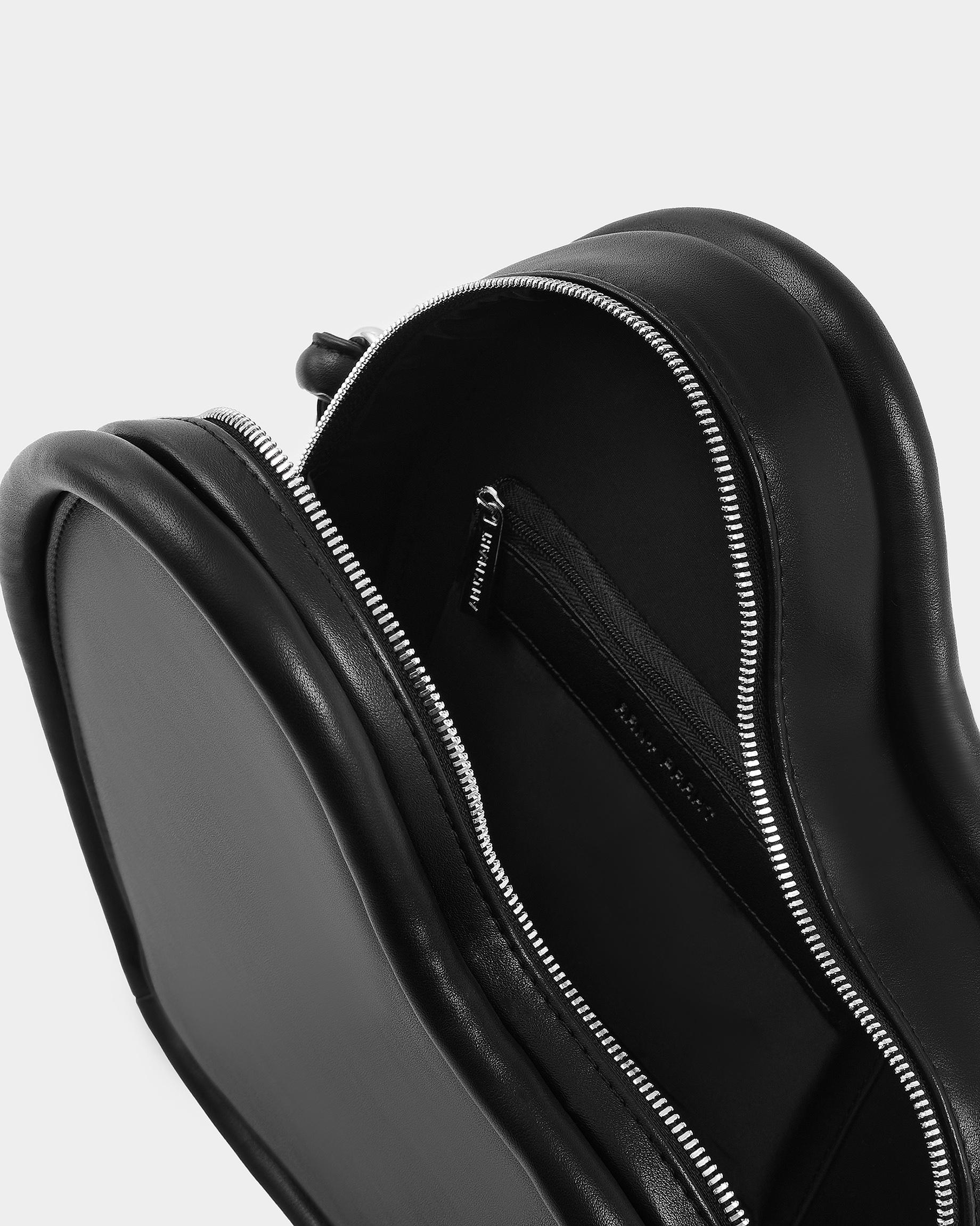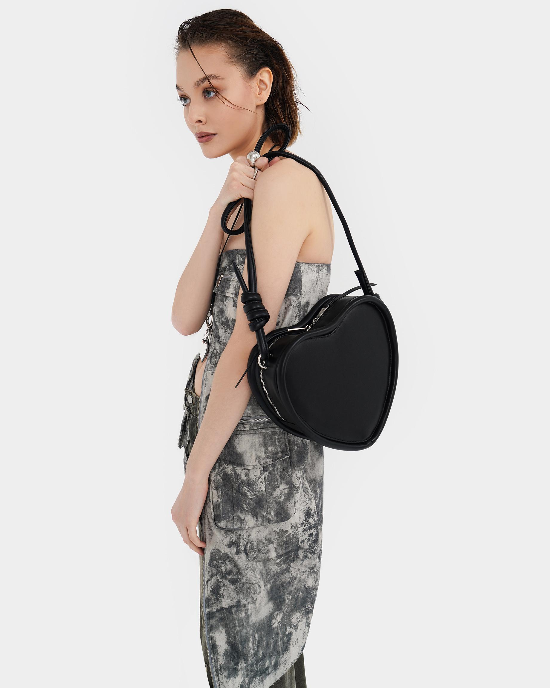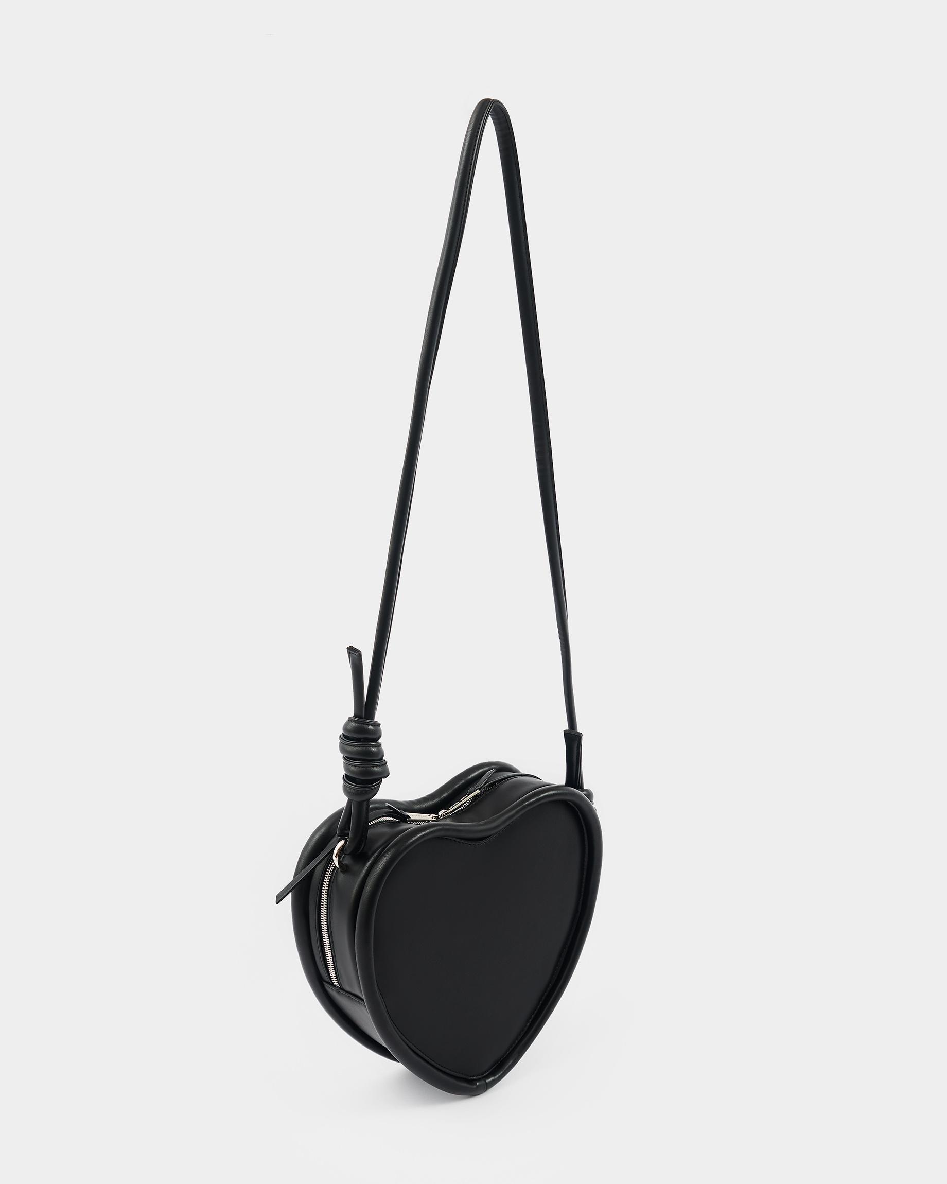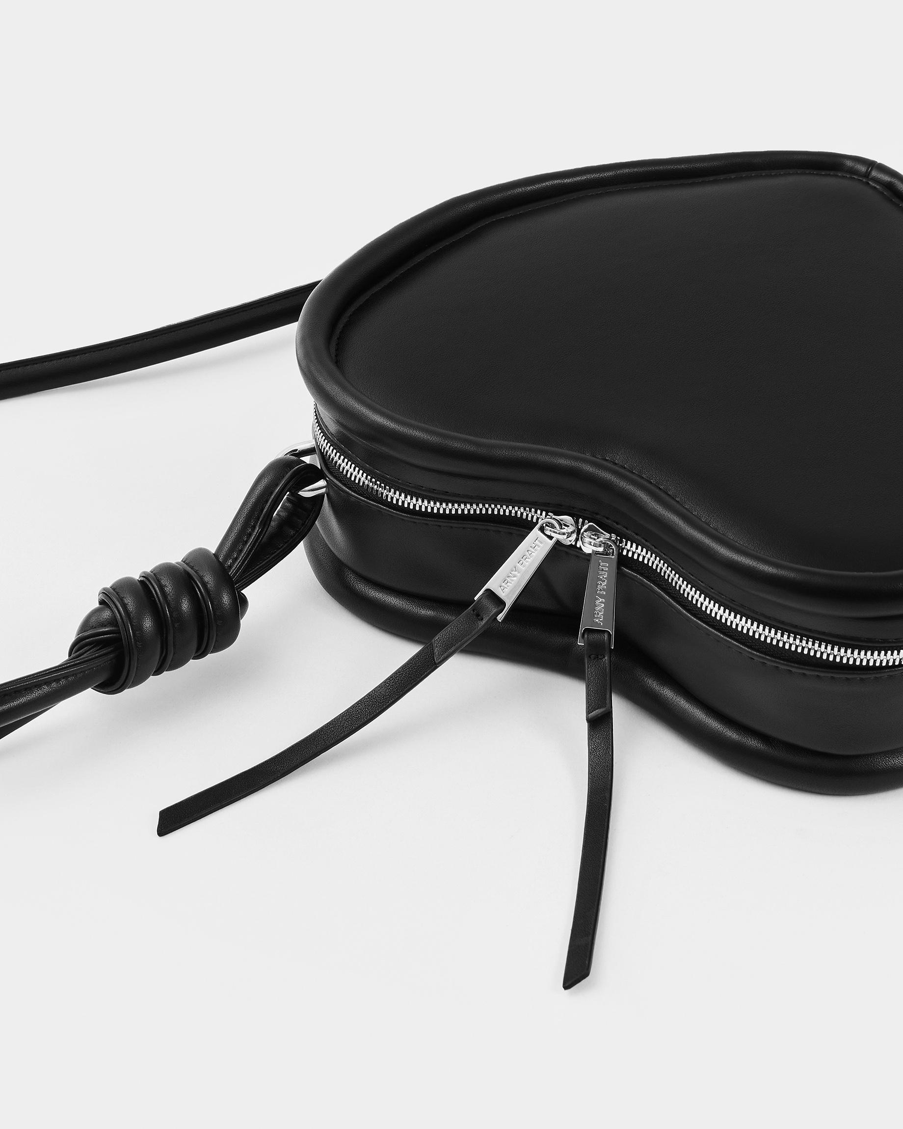 Каркасная сумка в форме сердца с тонким ремнем в виде жгута в черном цвете
