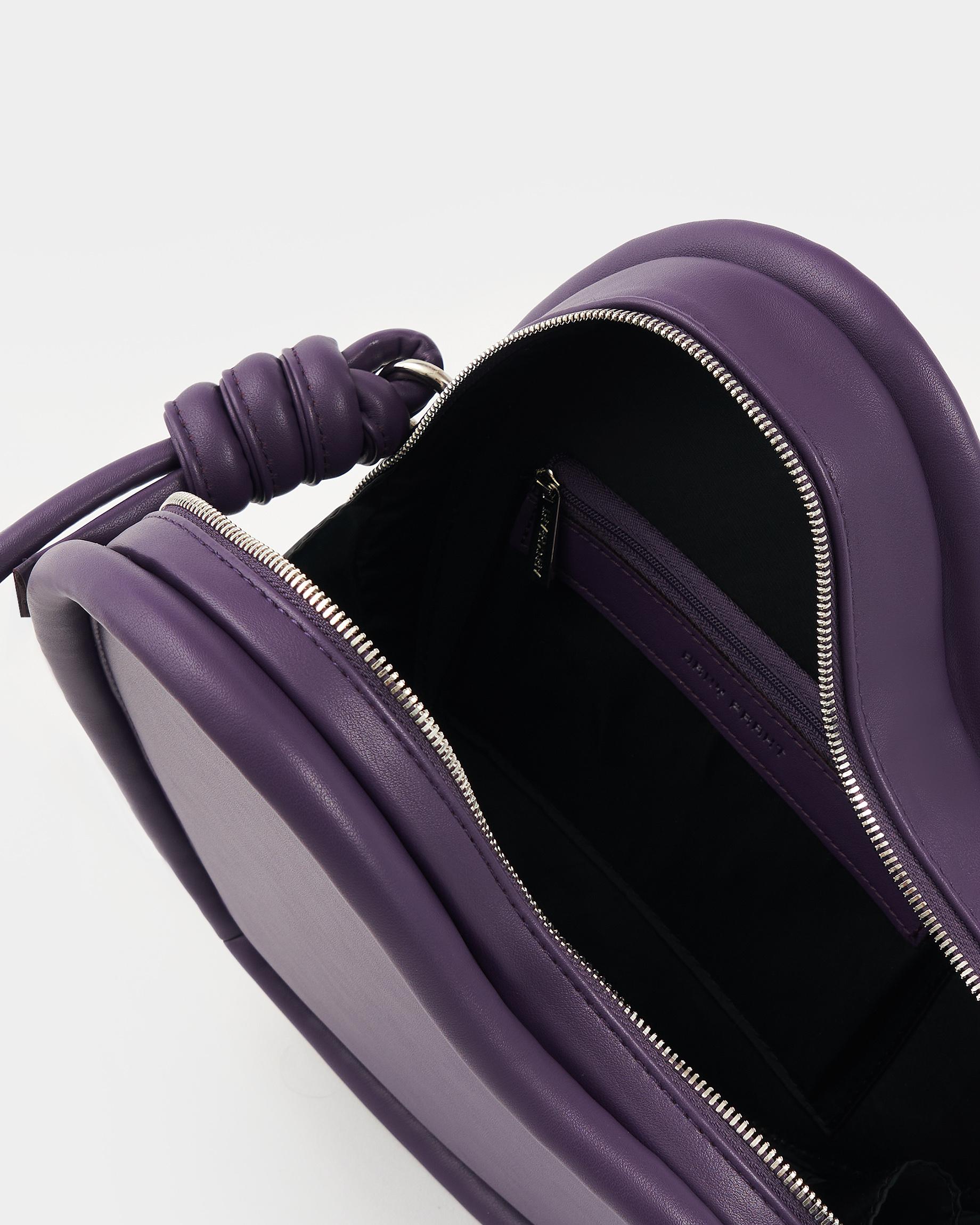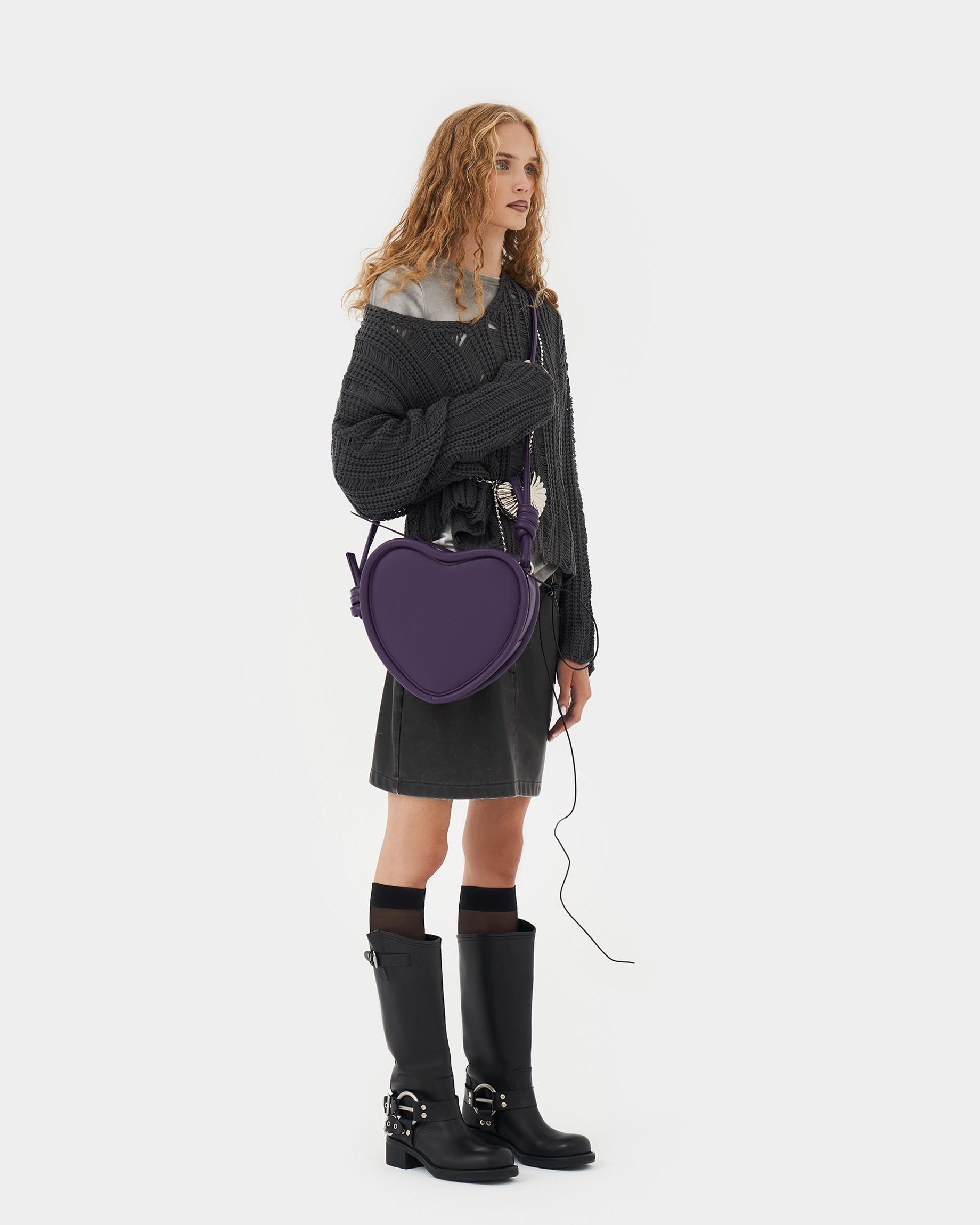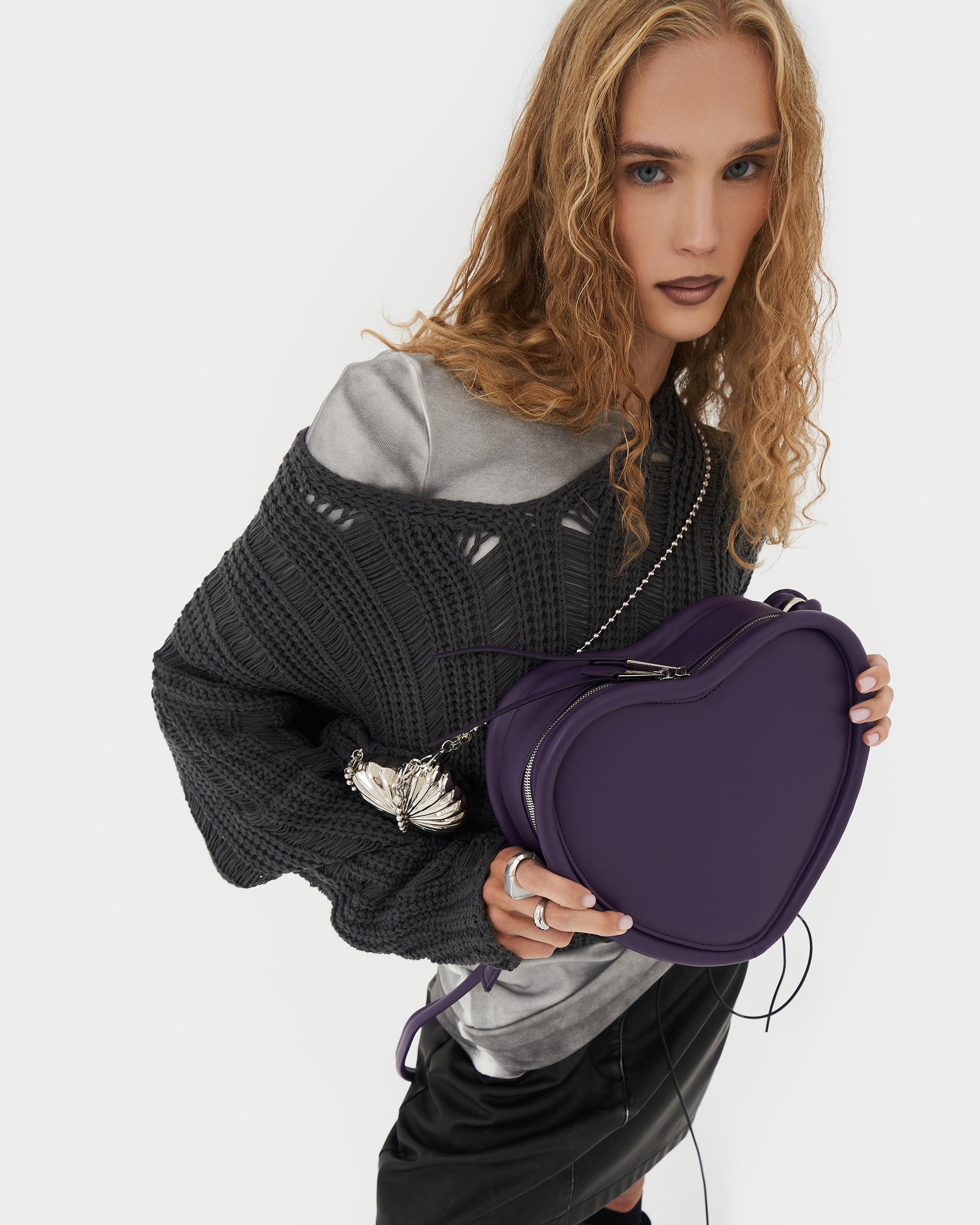 Каркасная сумка в форме сердца с тонким ремнем в виде жгута в цвете мальбек