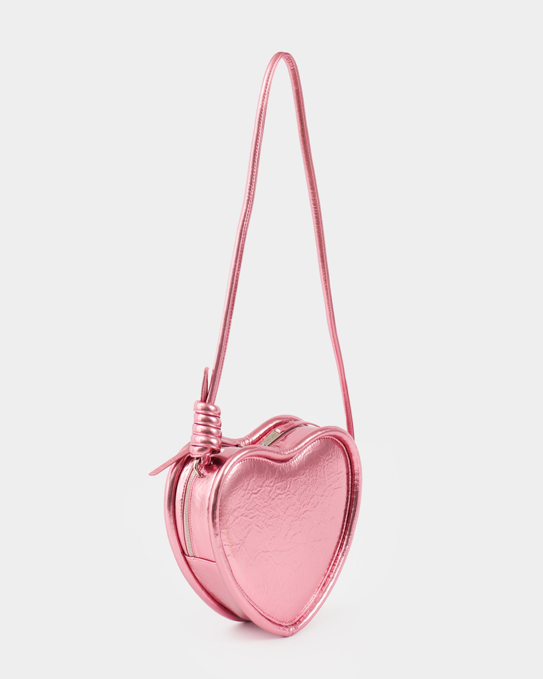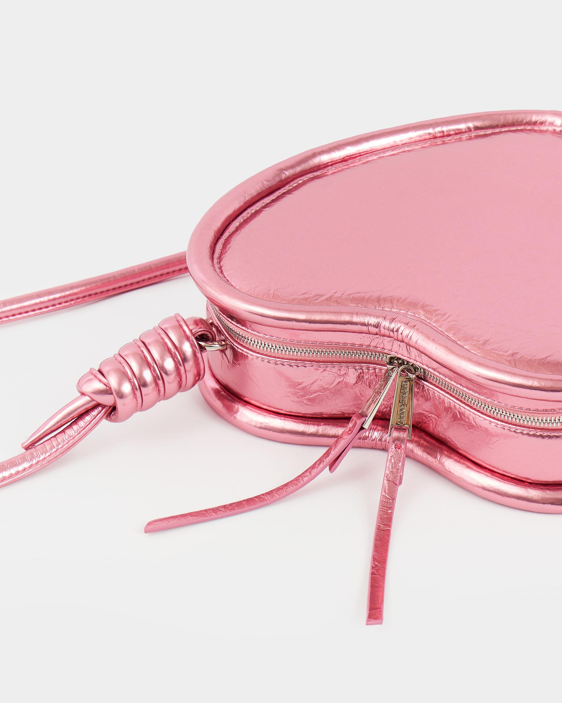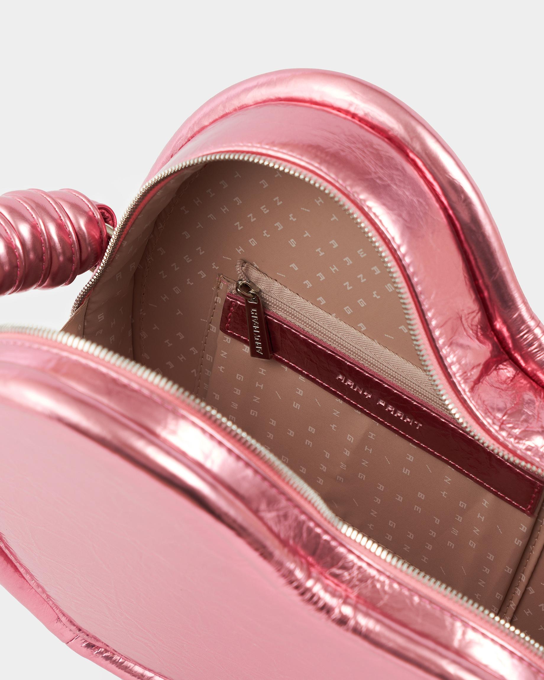 Каркасная сумка в форме сердца с тонким ремнем в виде жгута в цвете розовый лимонад