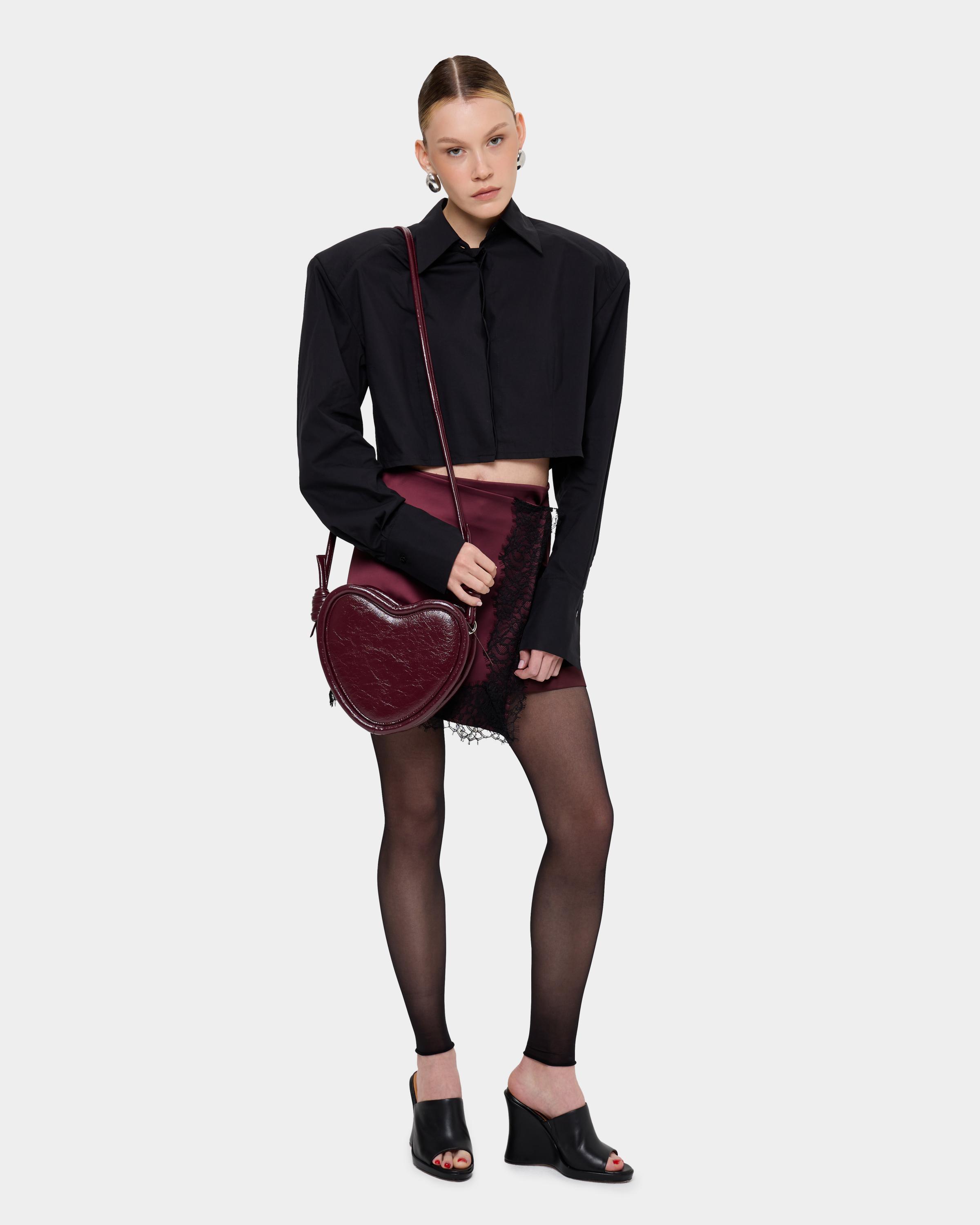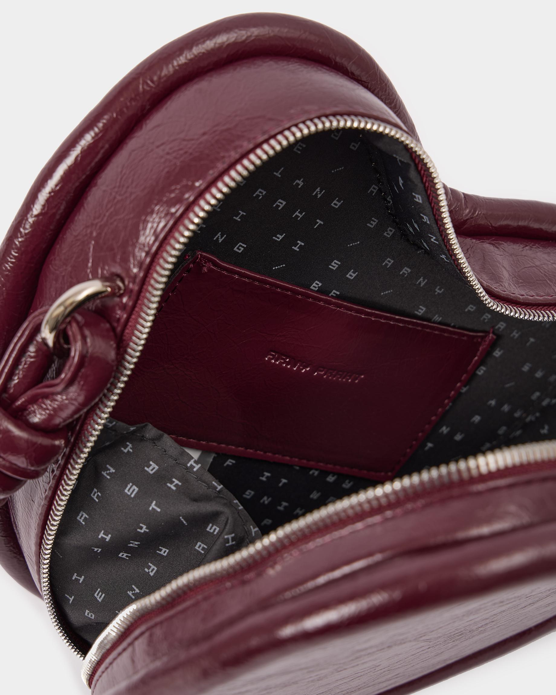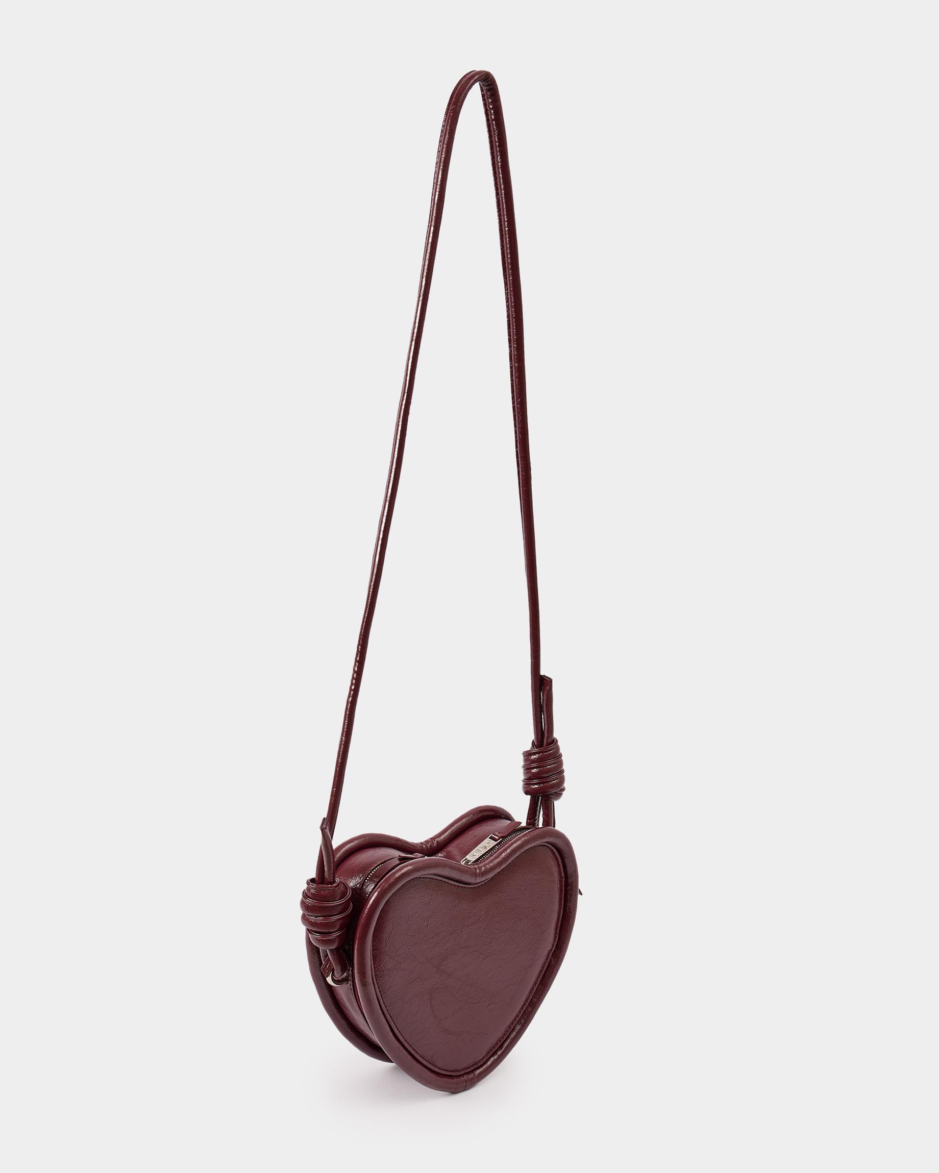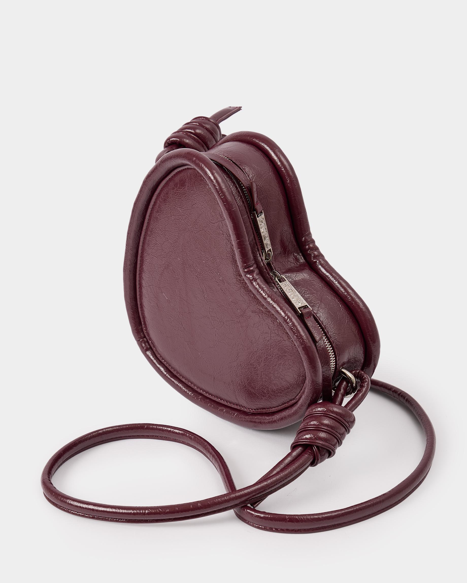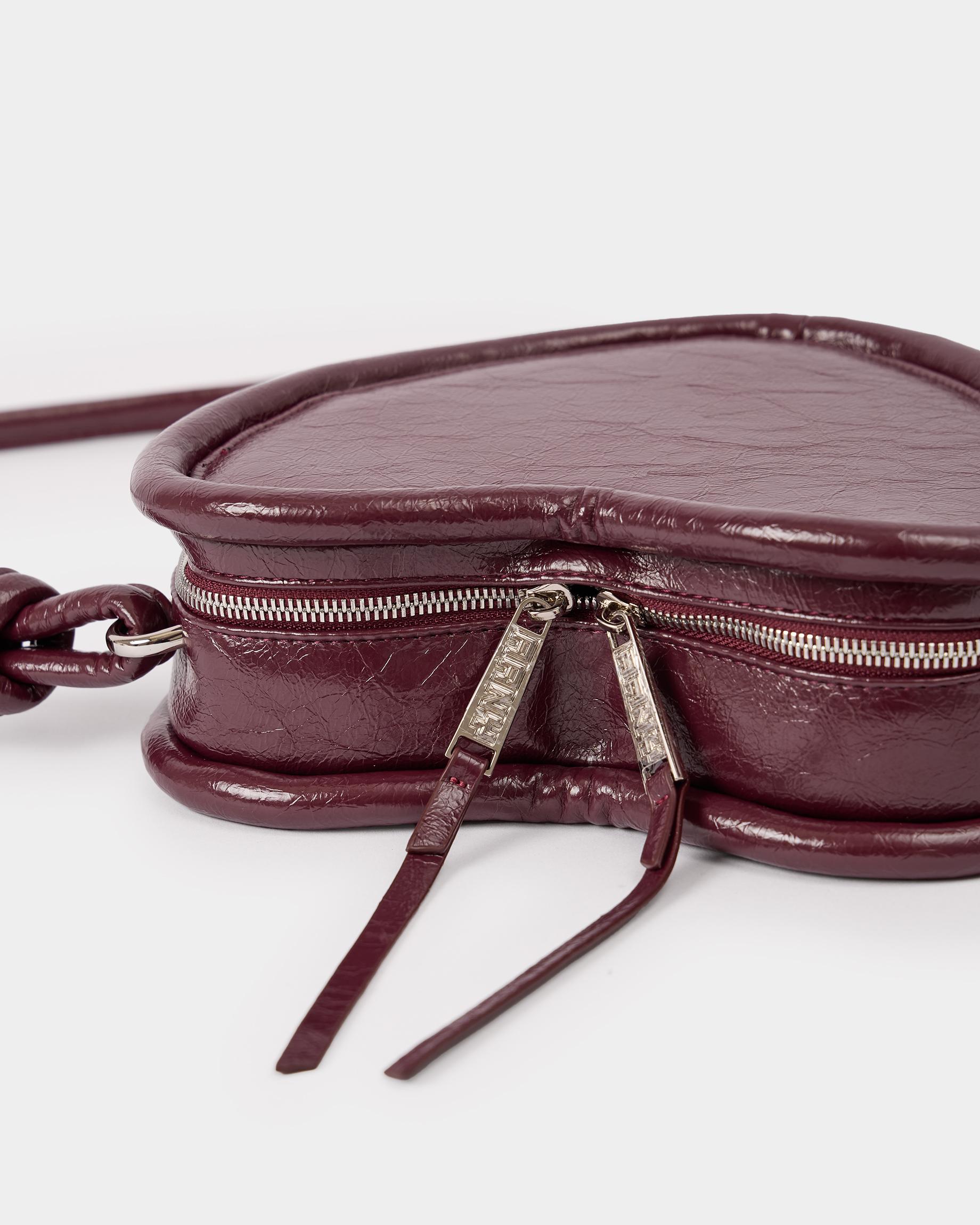 Каркасная сумка в форме сердца с ремнем-жгутом в цвете бордо кракле