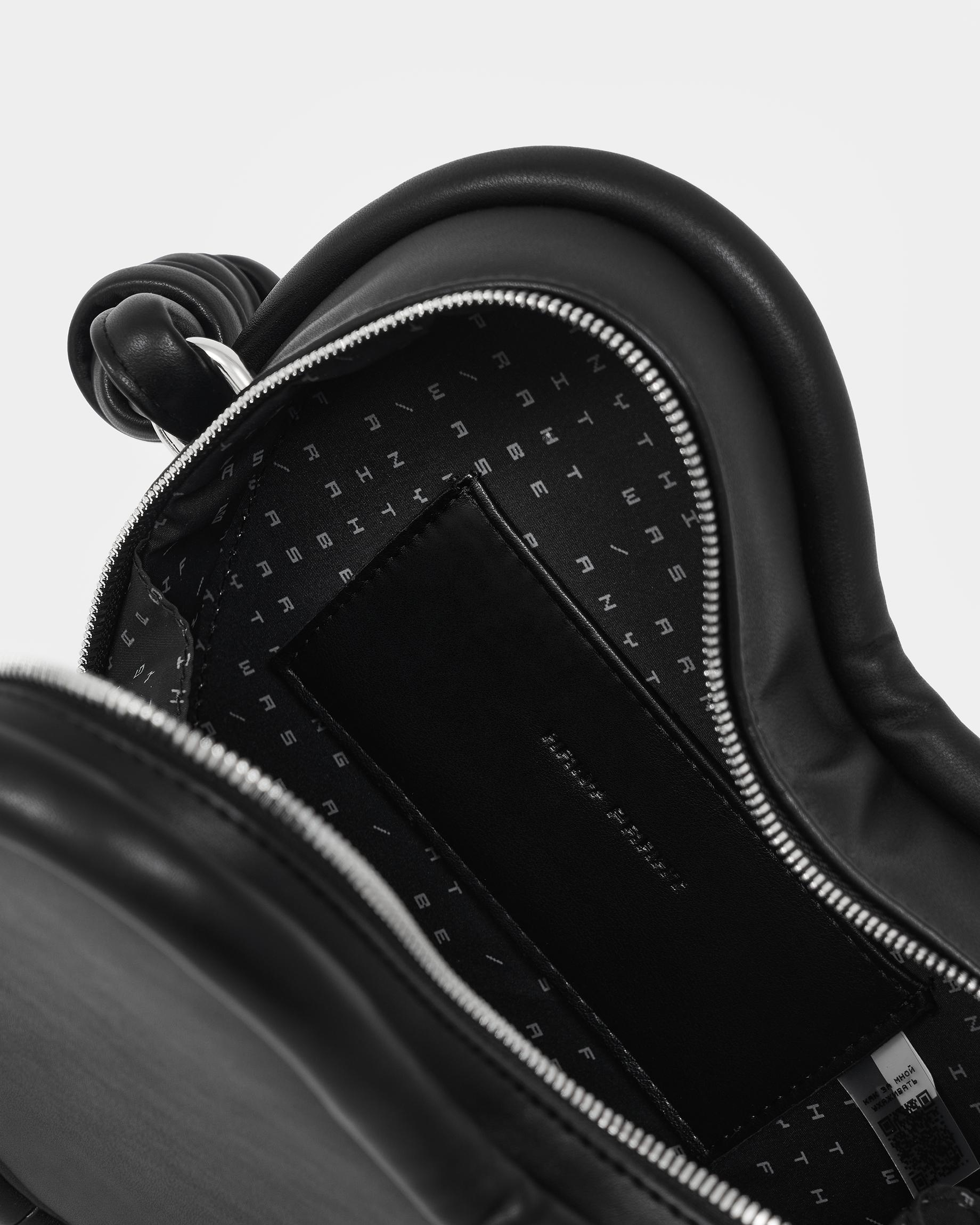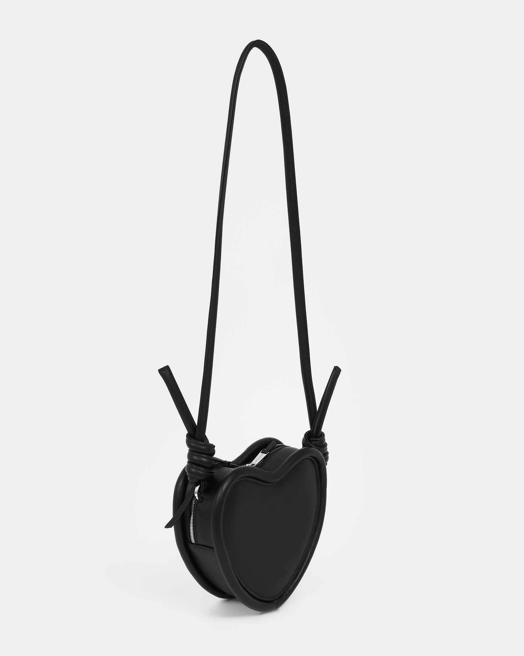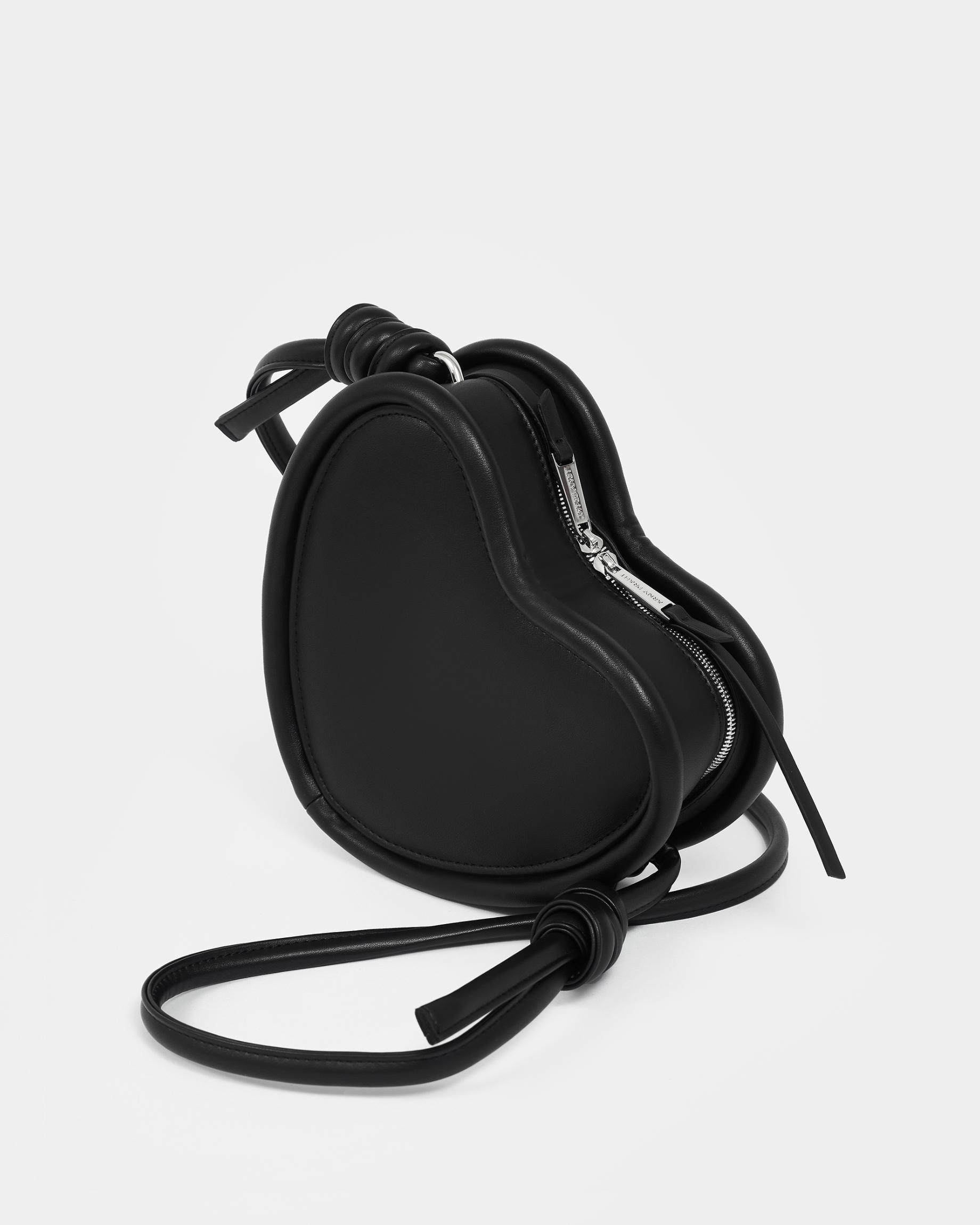 Каркасная сумка в форме сердца с тонким ремнем в виде жгута в черном цвете