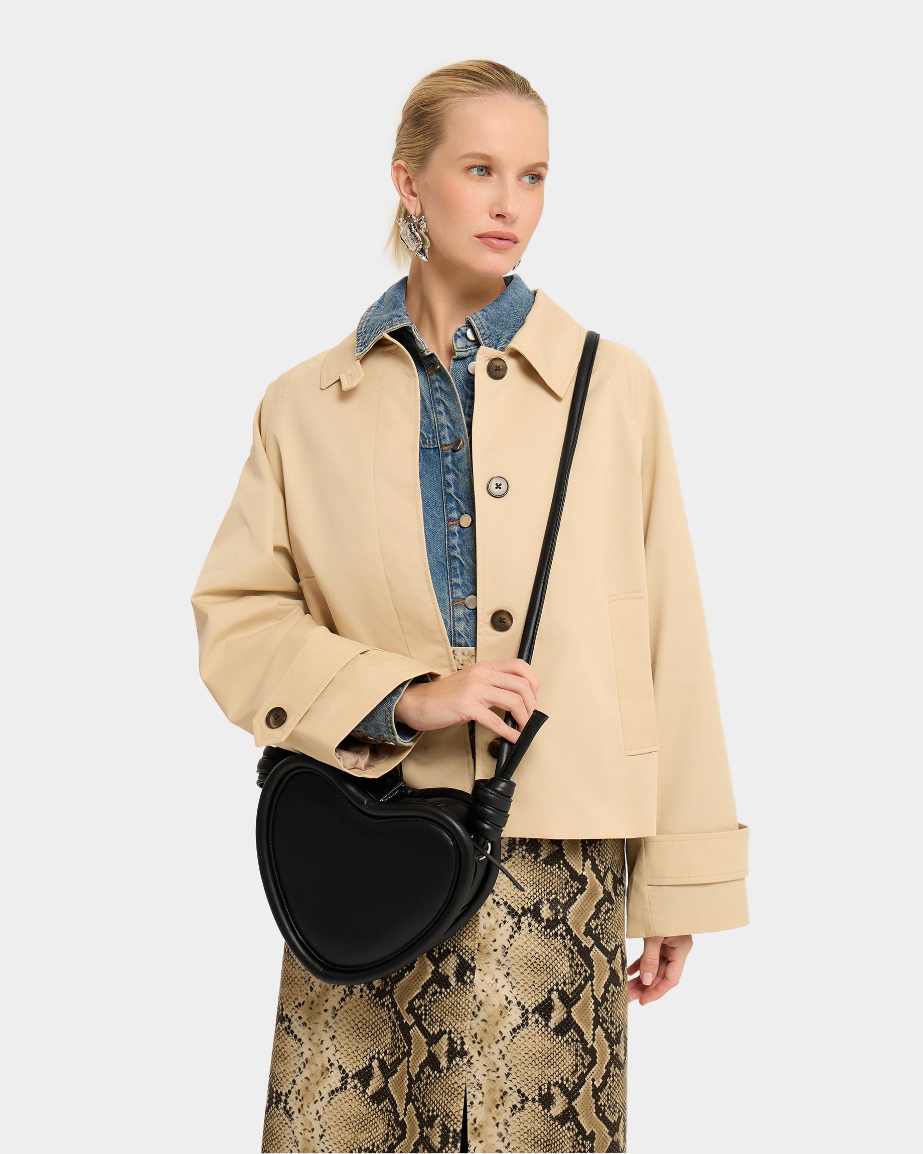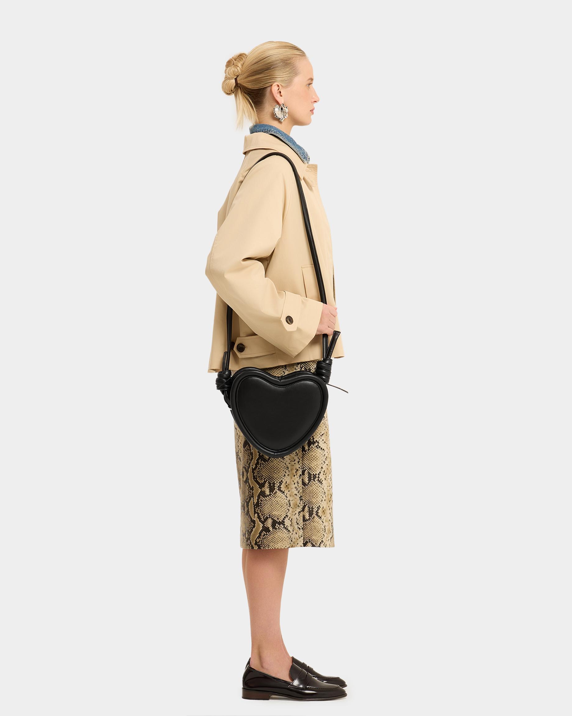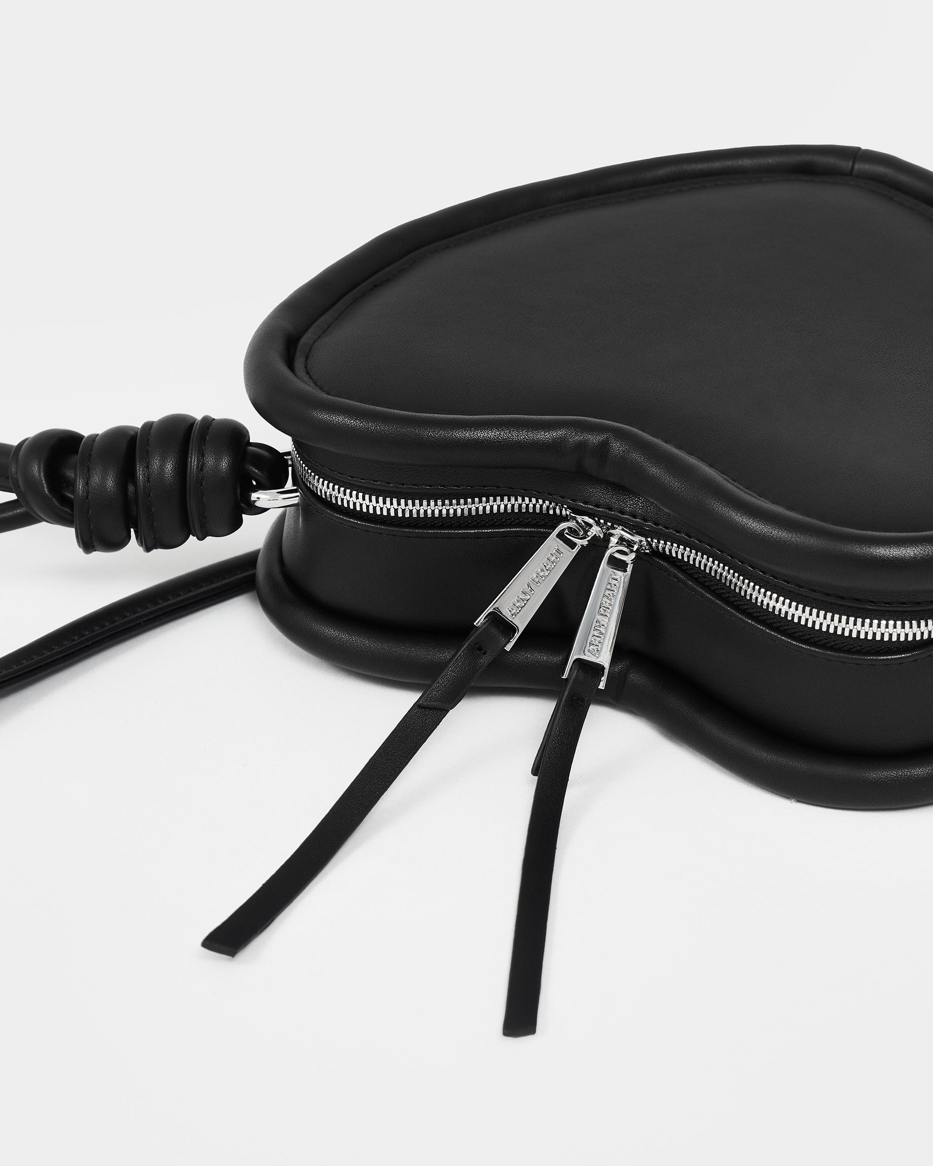 Каркасная сумка в форме сердца с тонким ремнем в виде жгута в черном цвете