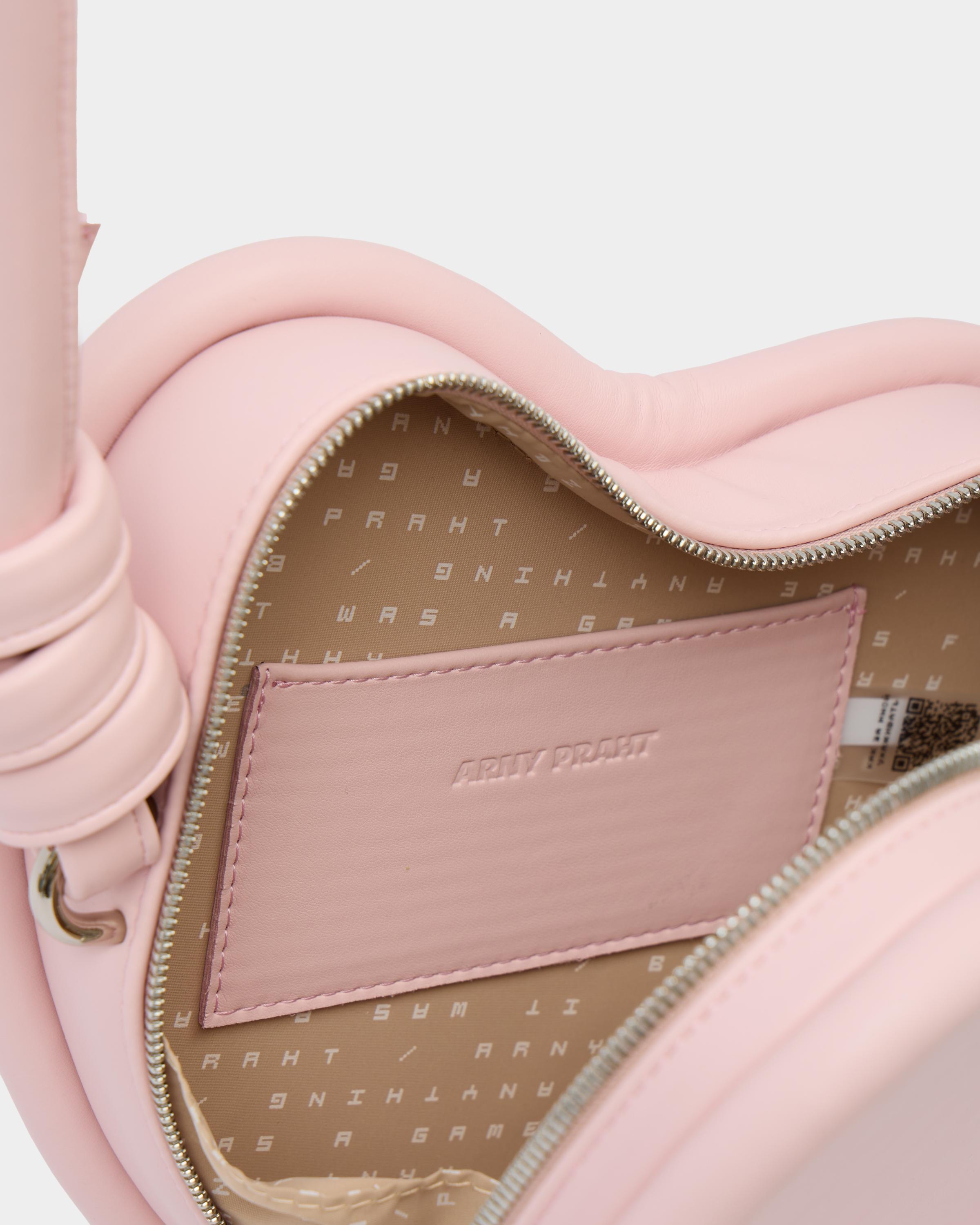 Каркасная сумка в форме сердца с тонким ремнем в виде жгута.