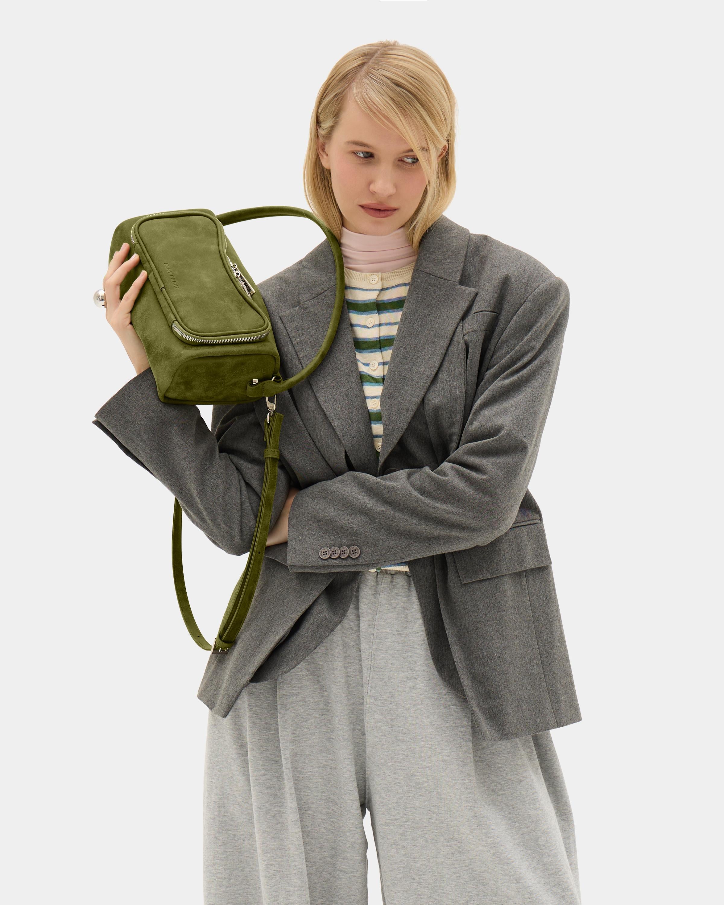 Прямоугольная сумка с фигурным карманом и дополнительным ремнем