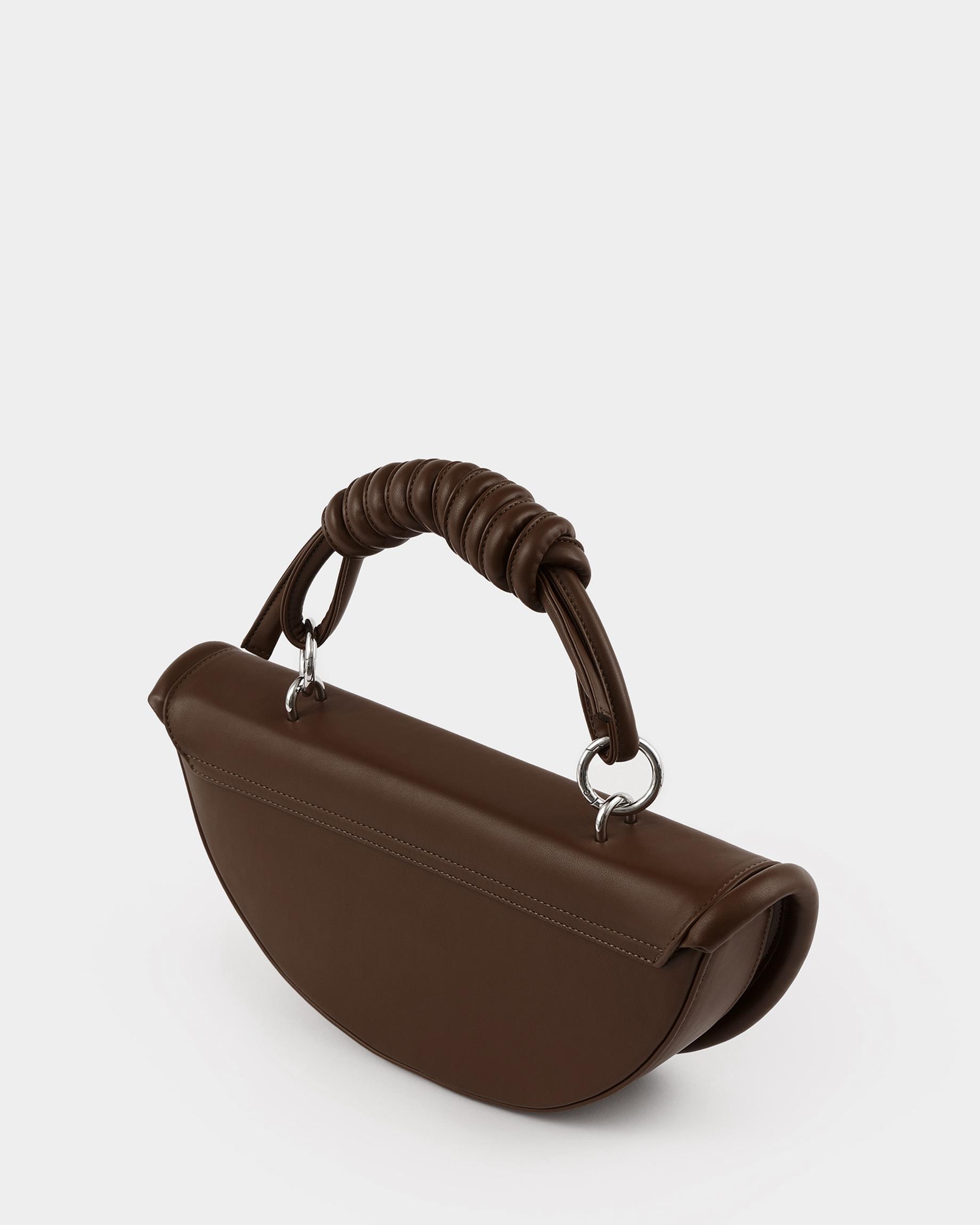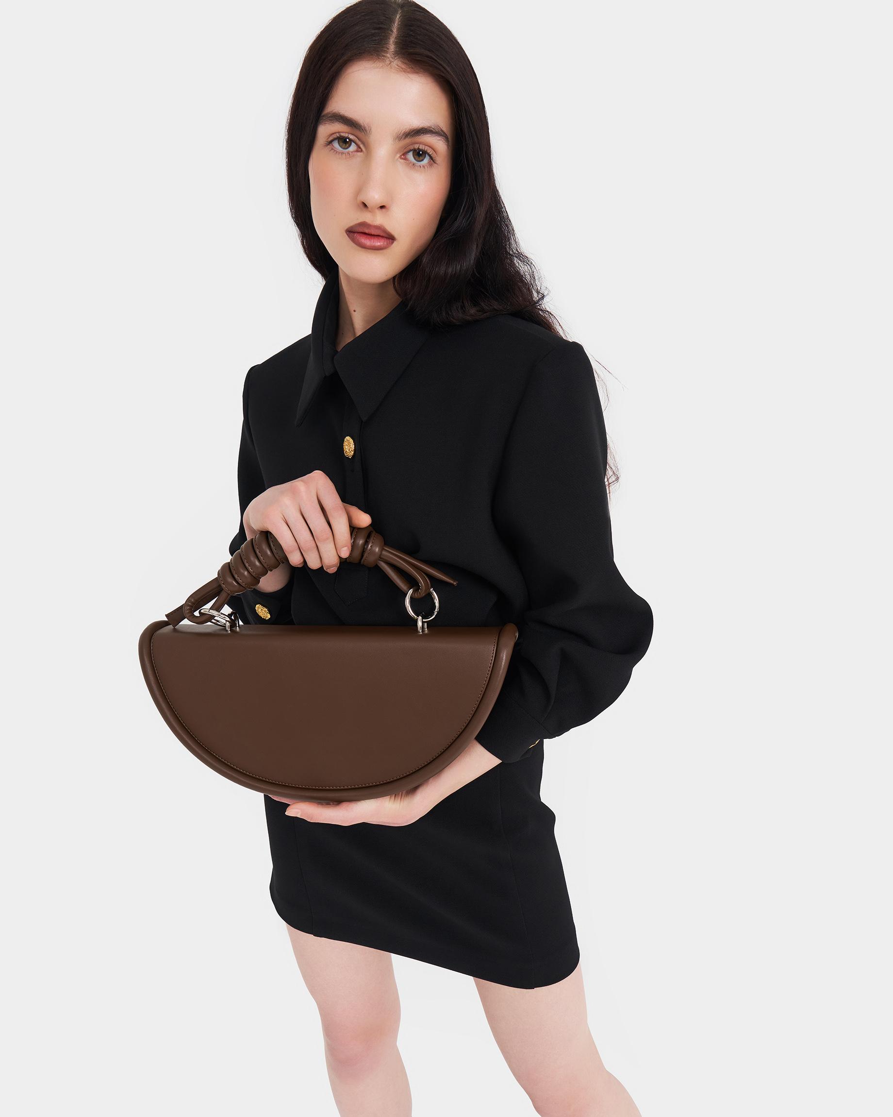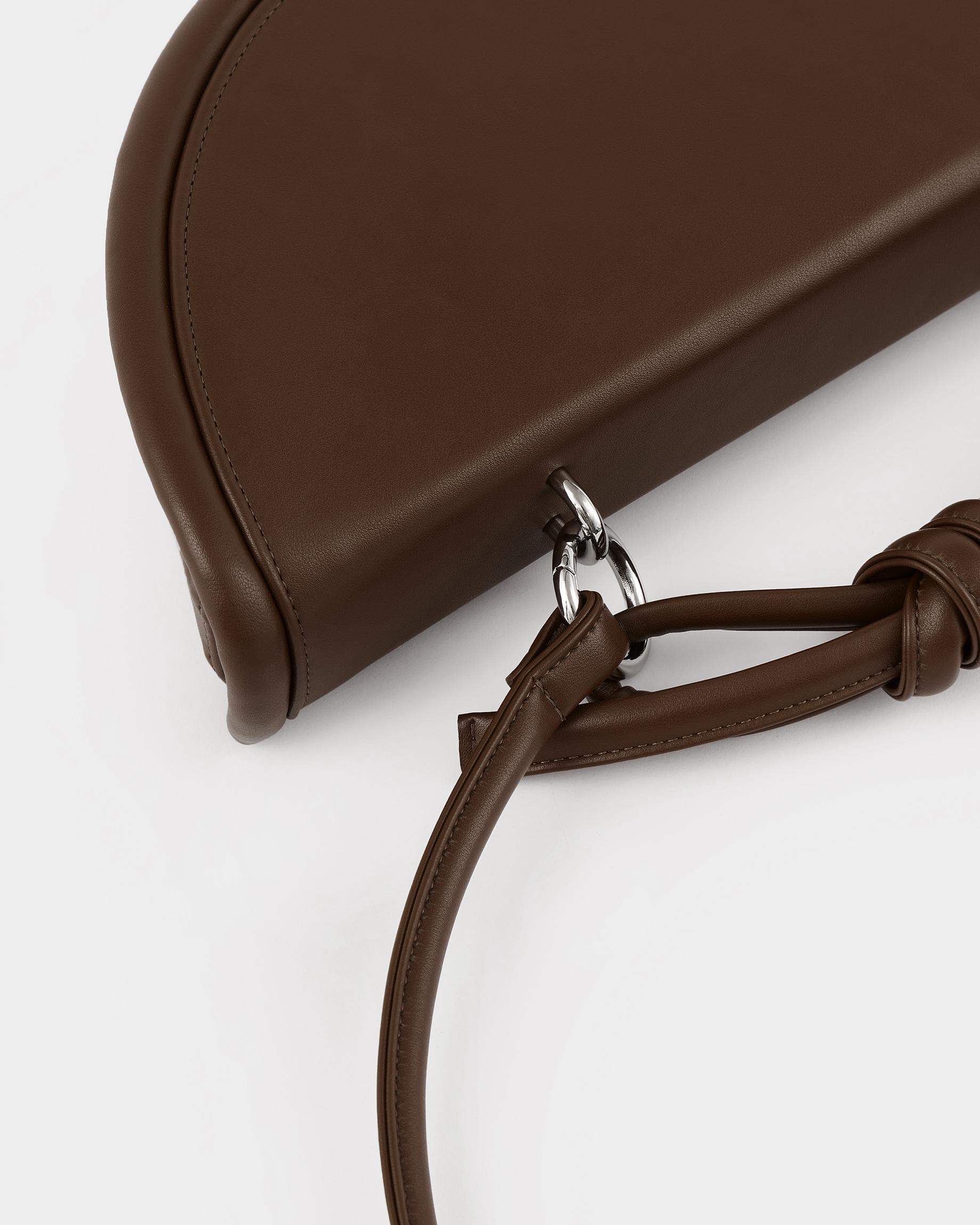 Полукруглая каркасная сумка c объемным кантом и ремнем в виде жгута в цвете горький шоколад