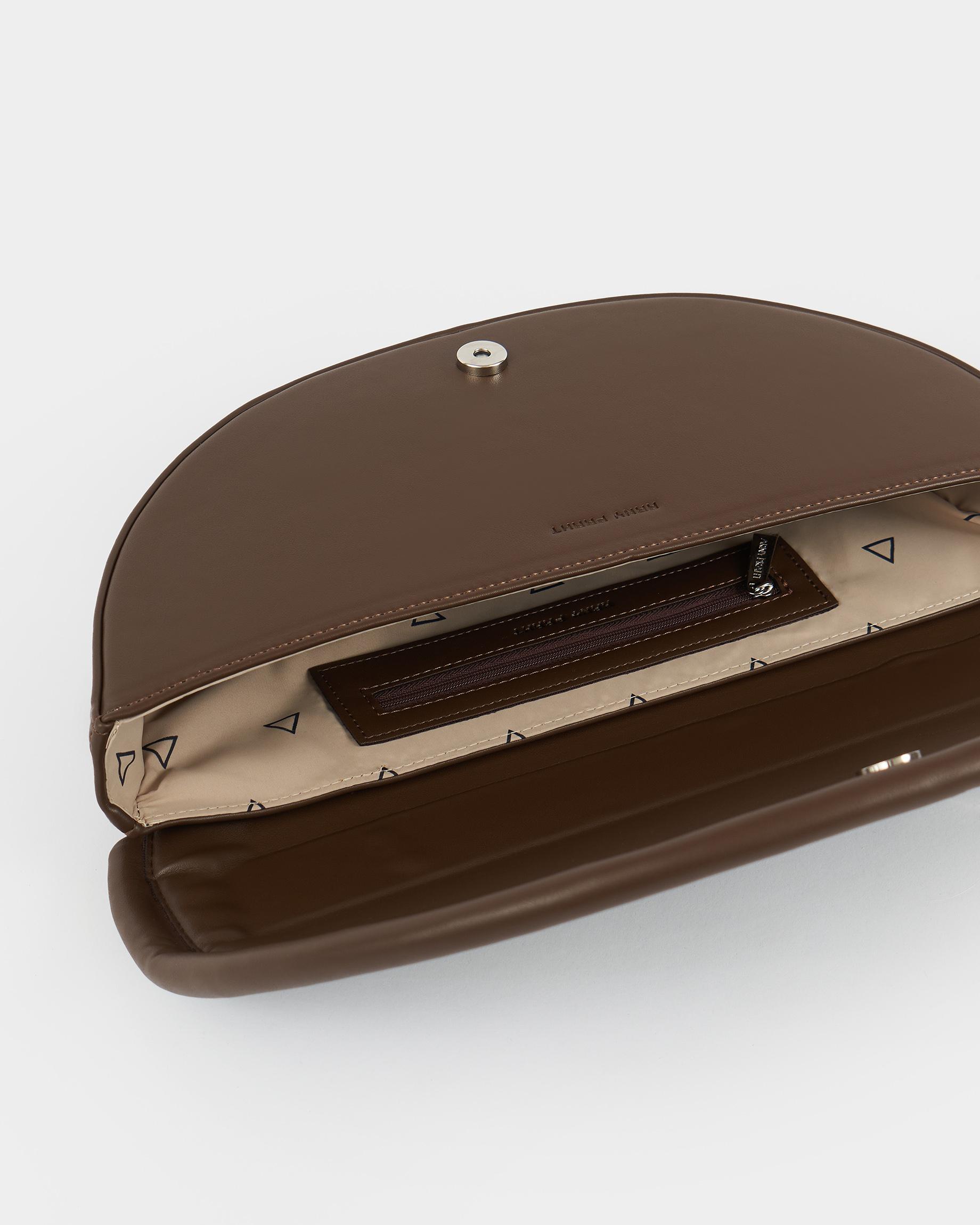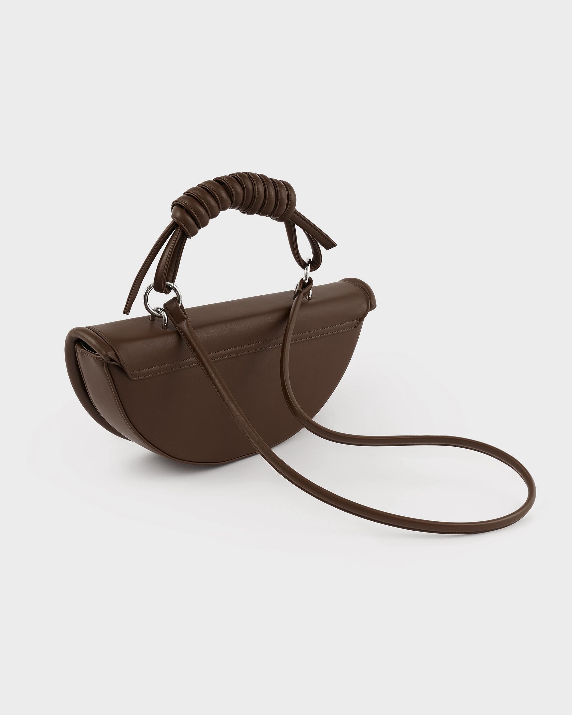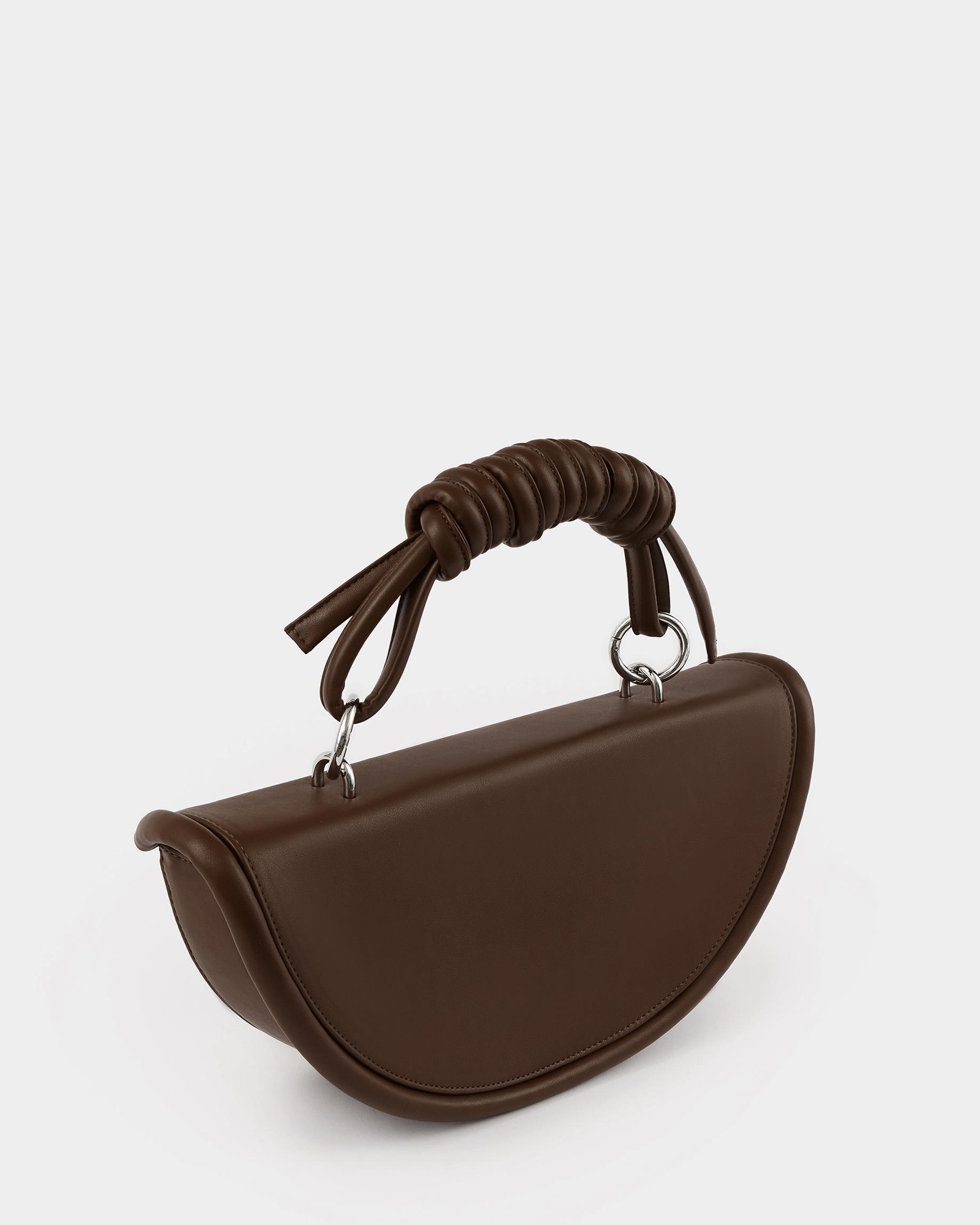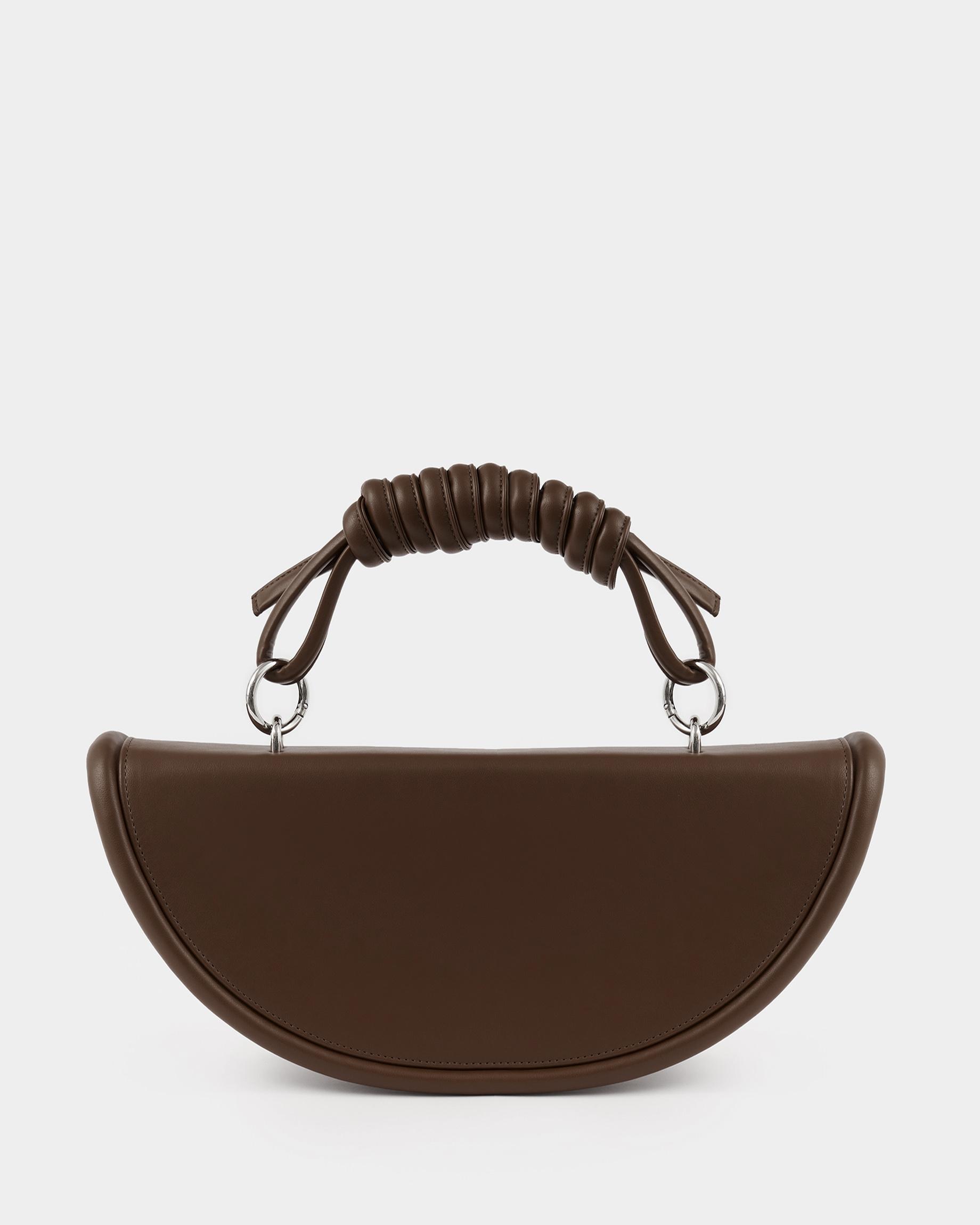 Полукруглая каркасная сумка c объемным кантом и ремнем в виде жгута в цвете горький шоколад