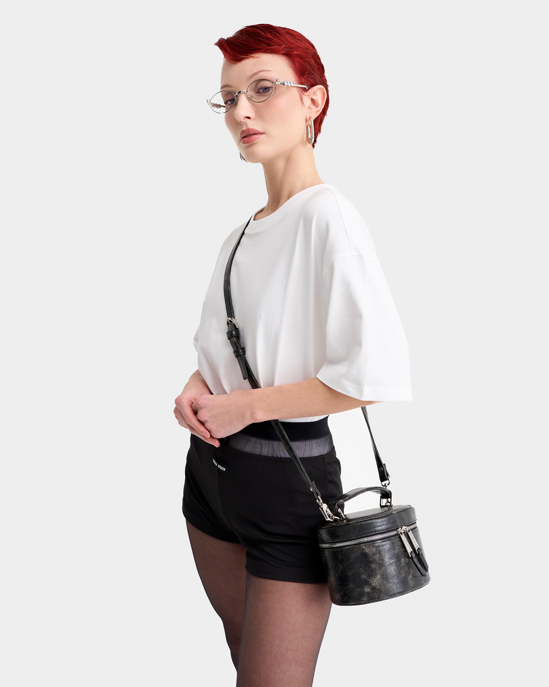 Каркасная сумка-косметичка небольшого размера в цвете каштан кракле