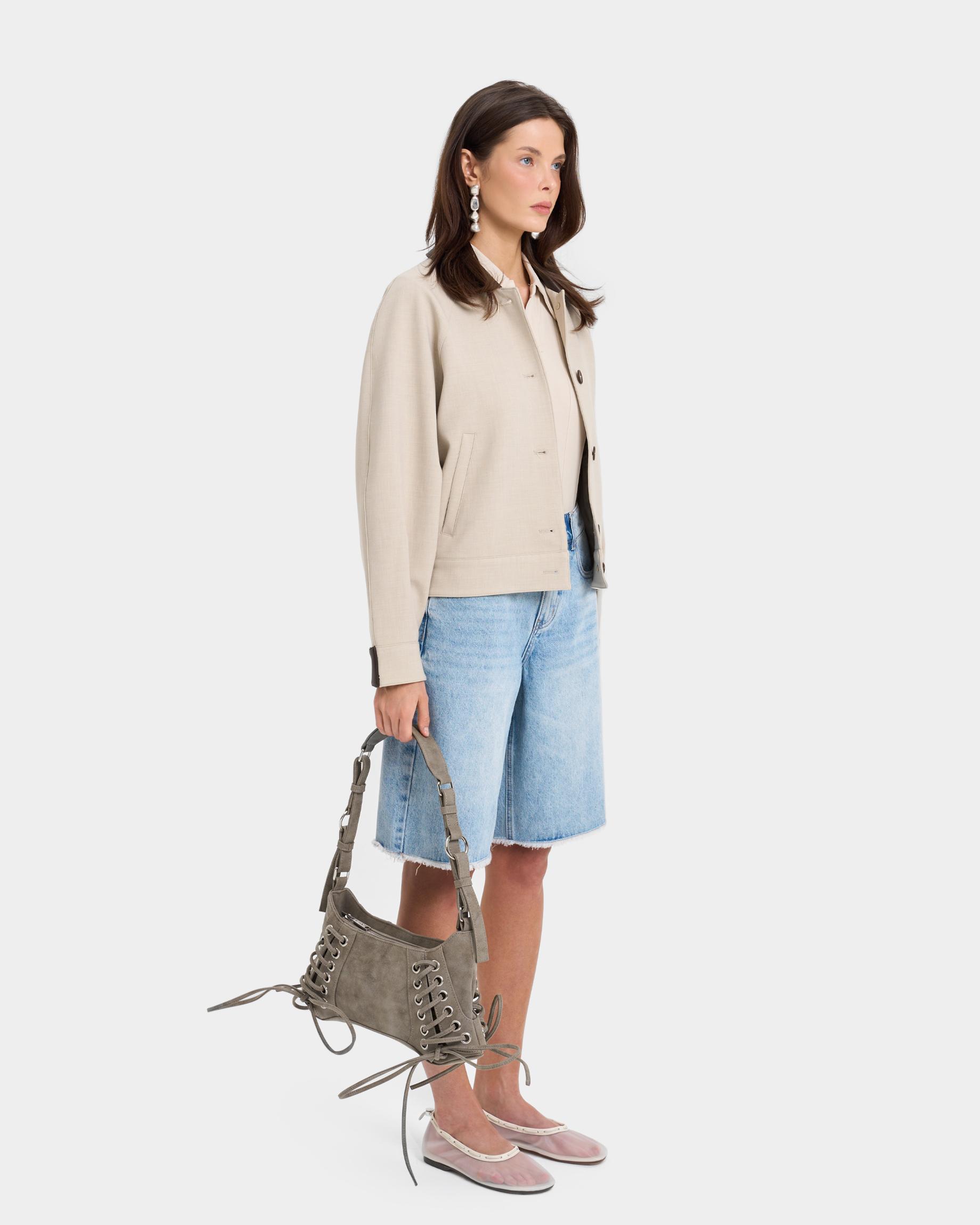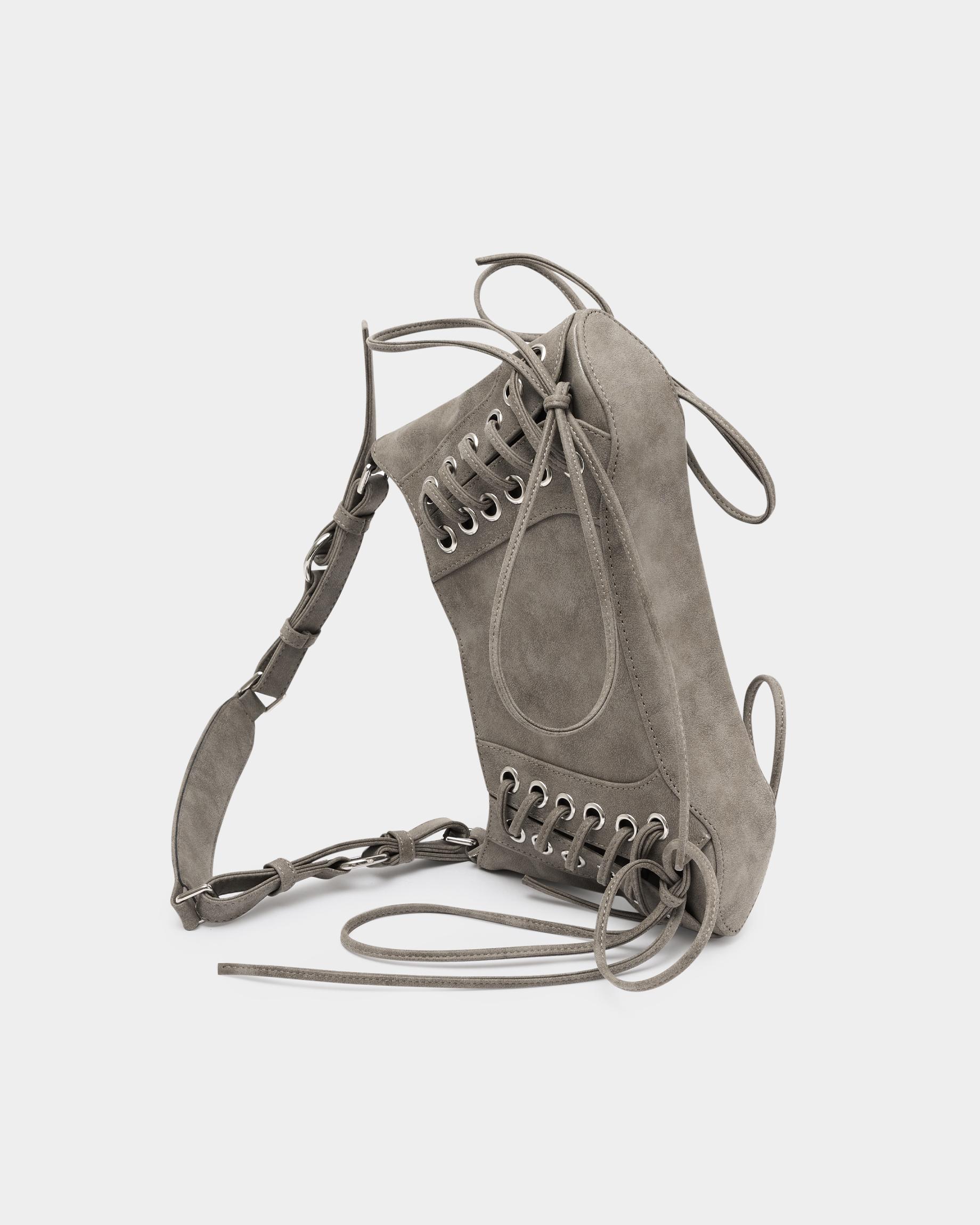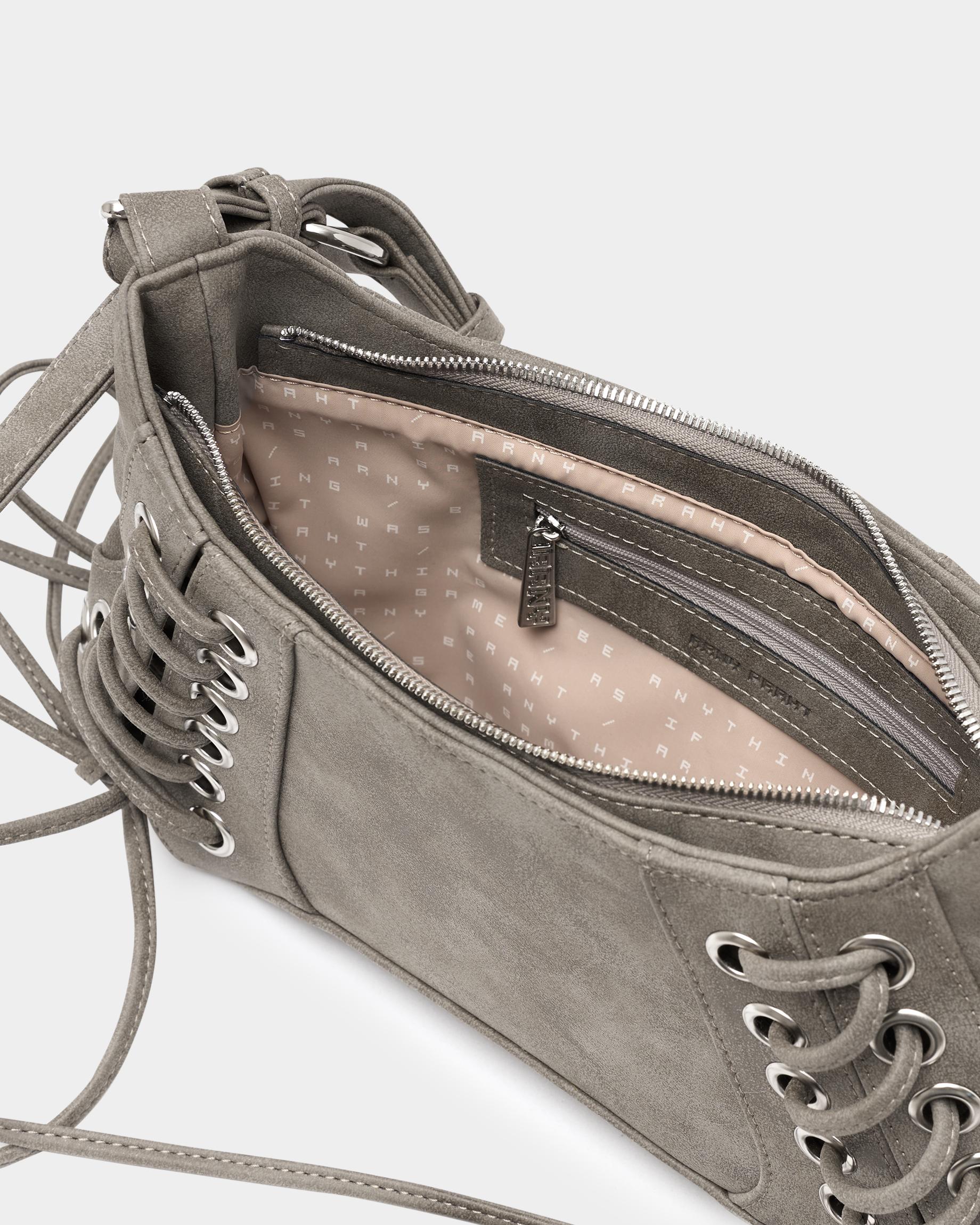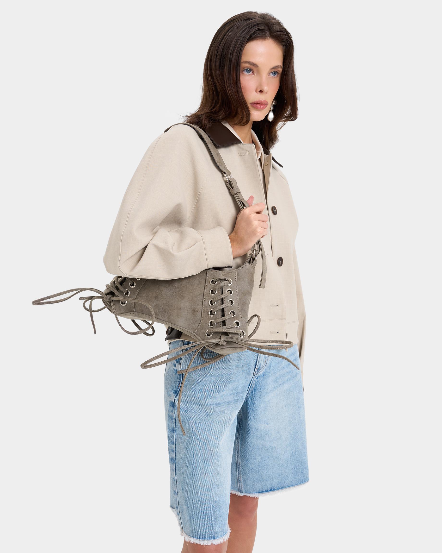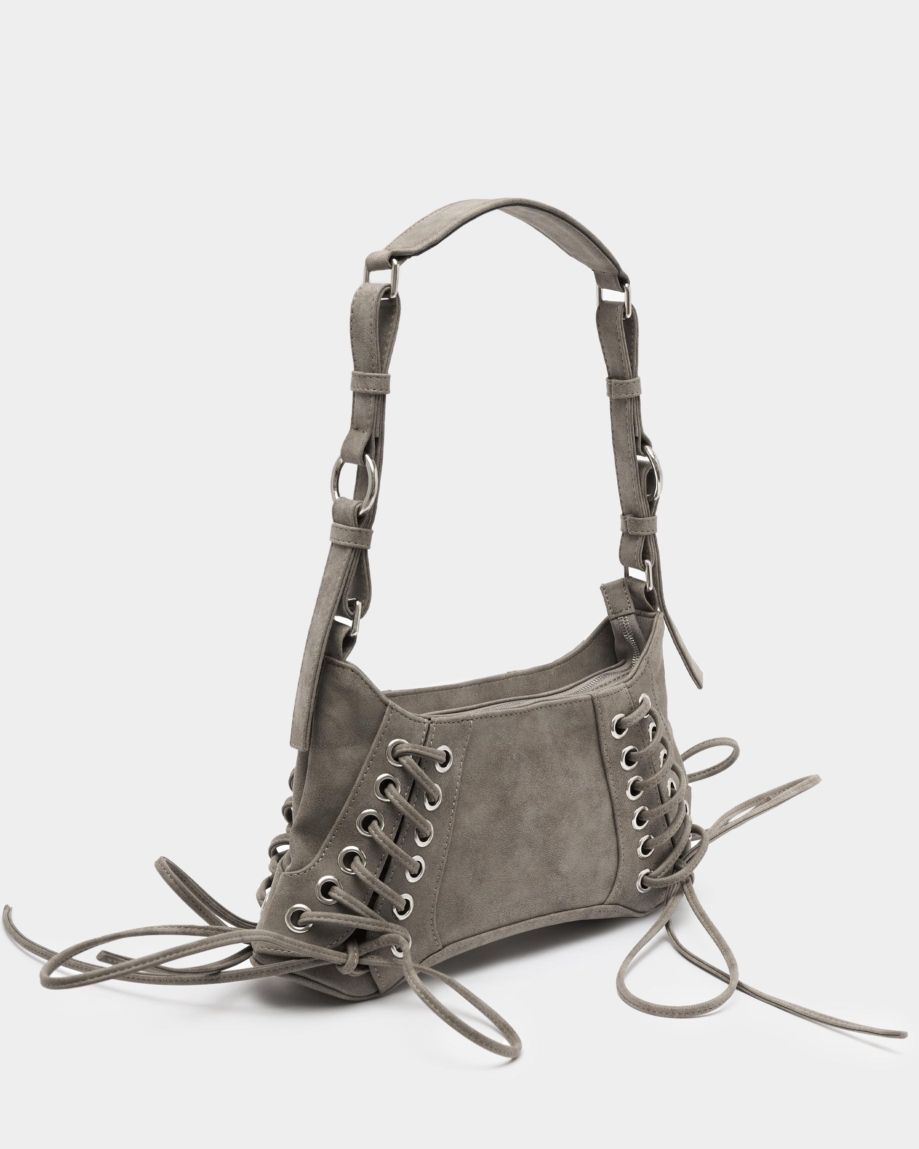 Сумка-багет из замшевой экокожи с широким ремнем и декоративной шнуровкой