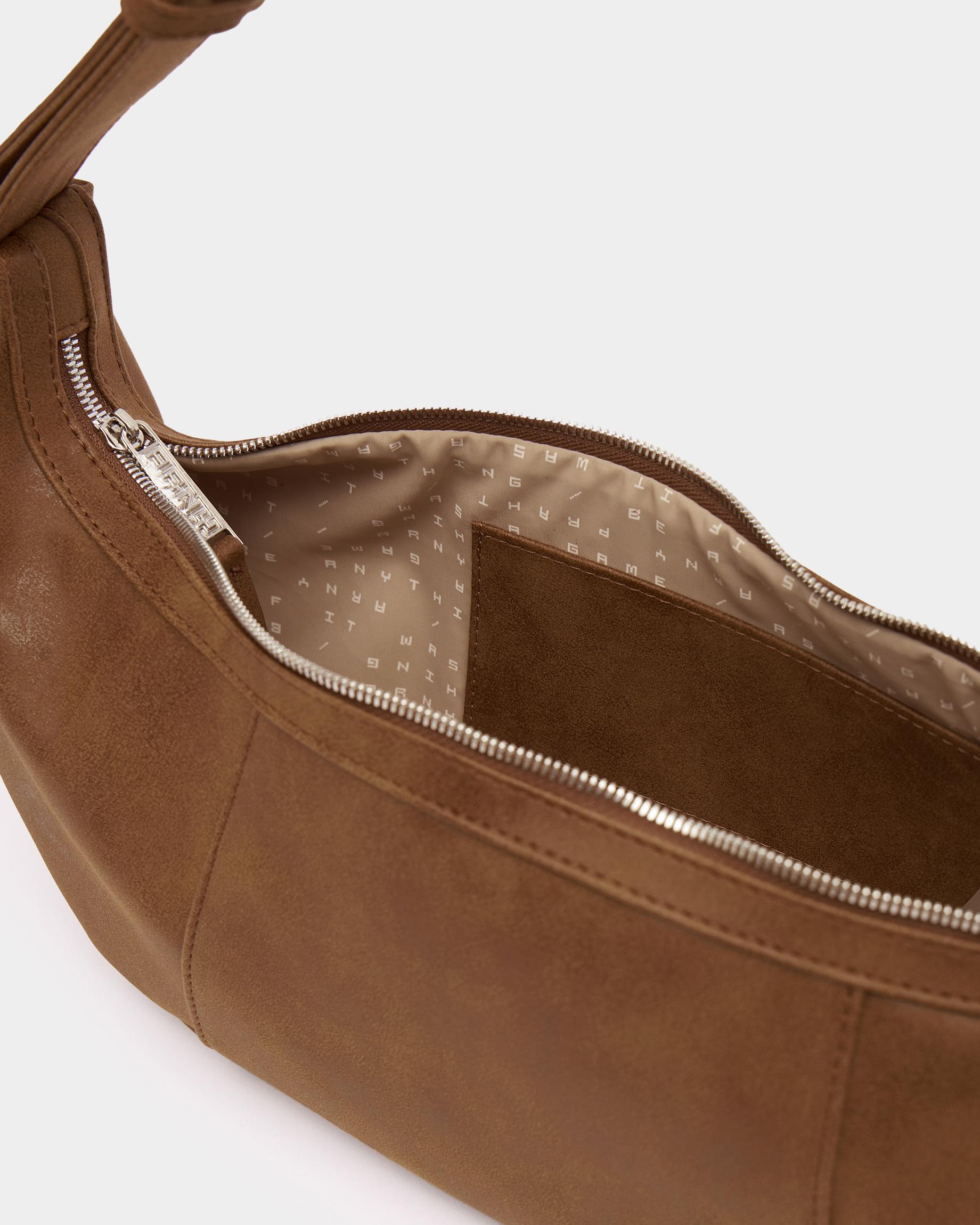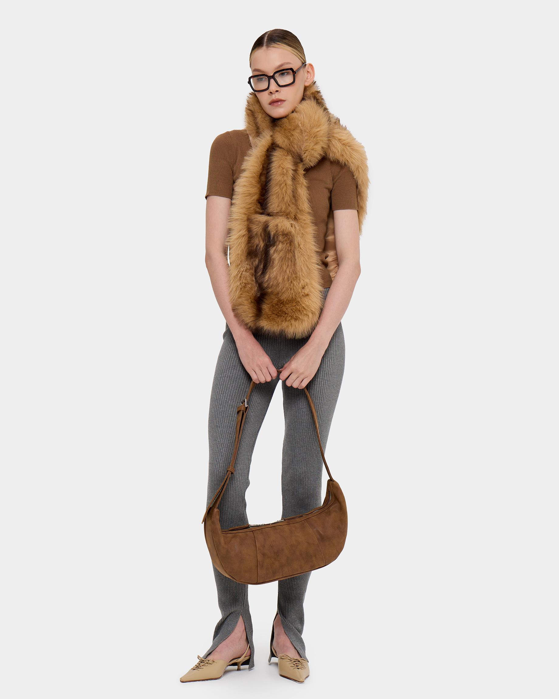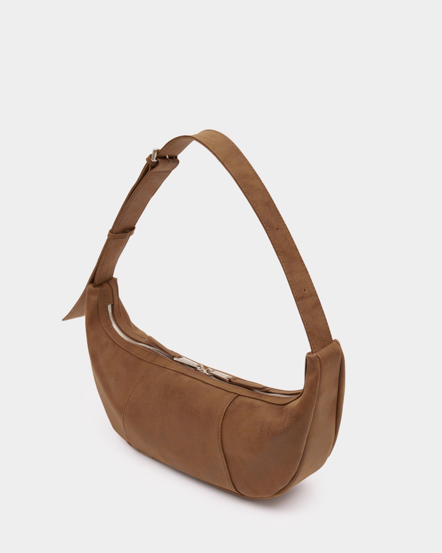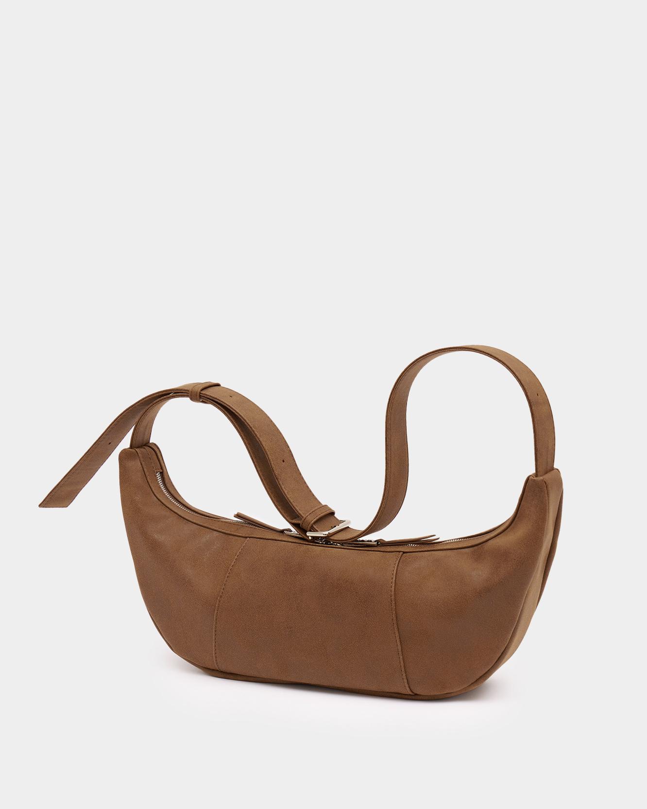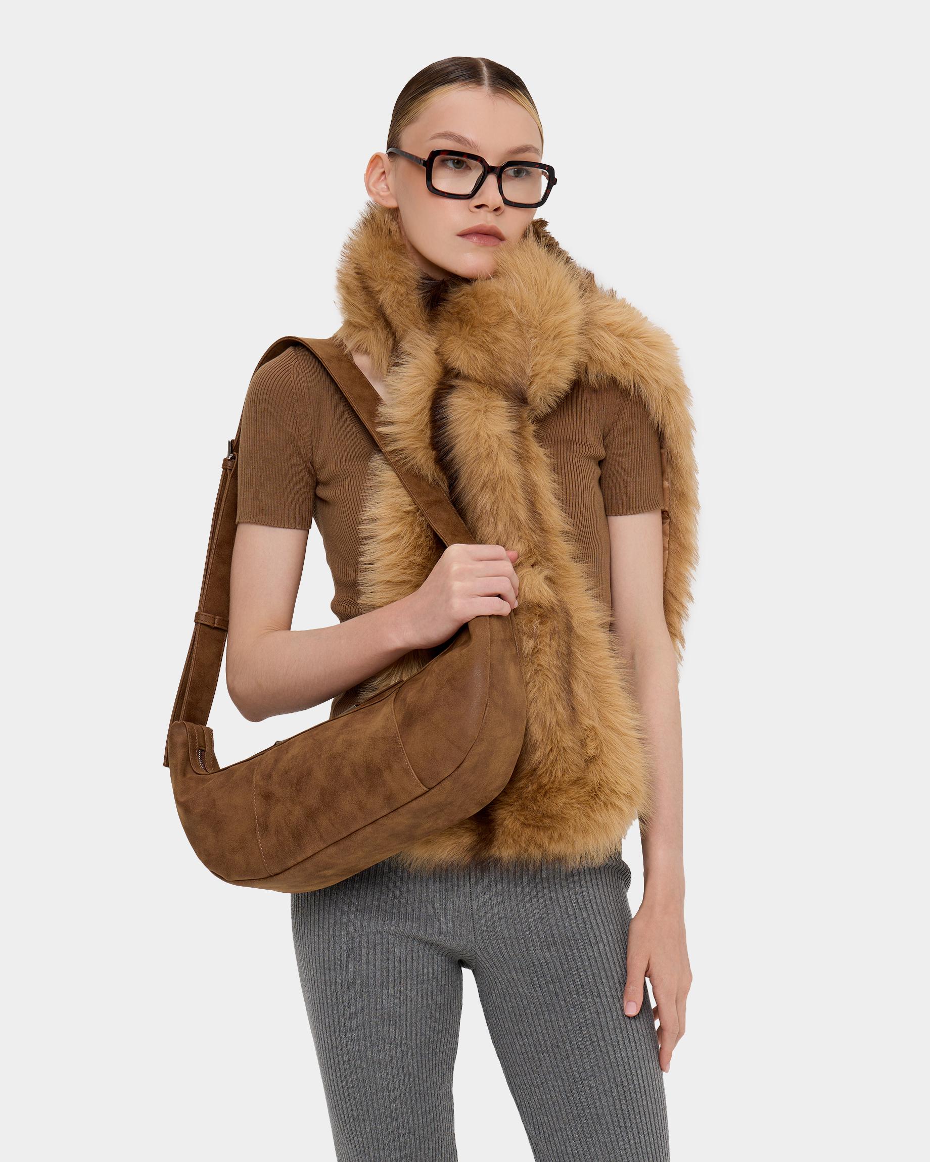 Полукруглая сумка-хобо из замшевой экокожи с широким ремнем