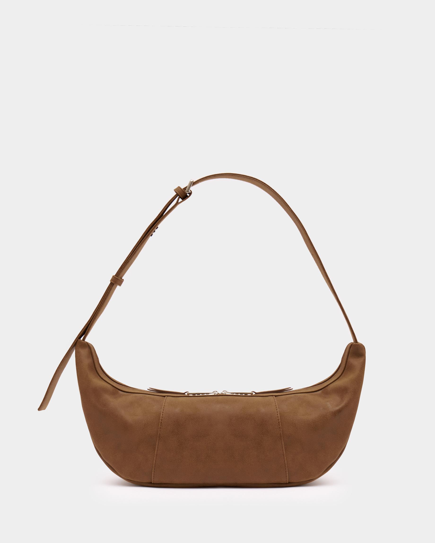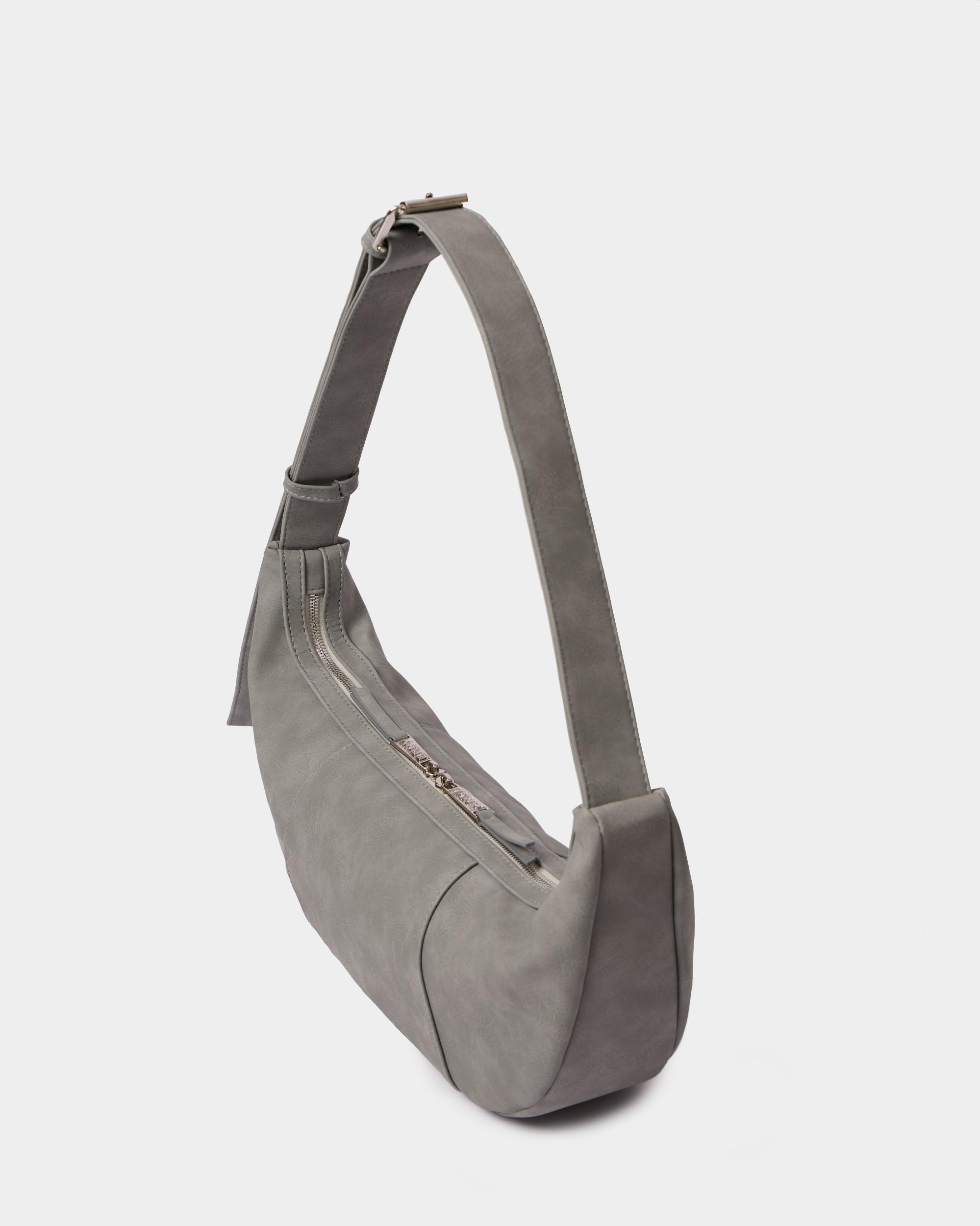 Полукруглая сумка-хобо из замшевой экокожи с широким ремнем