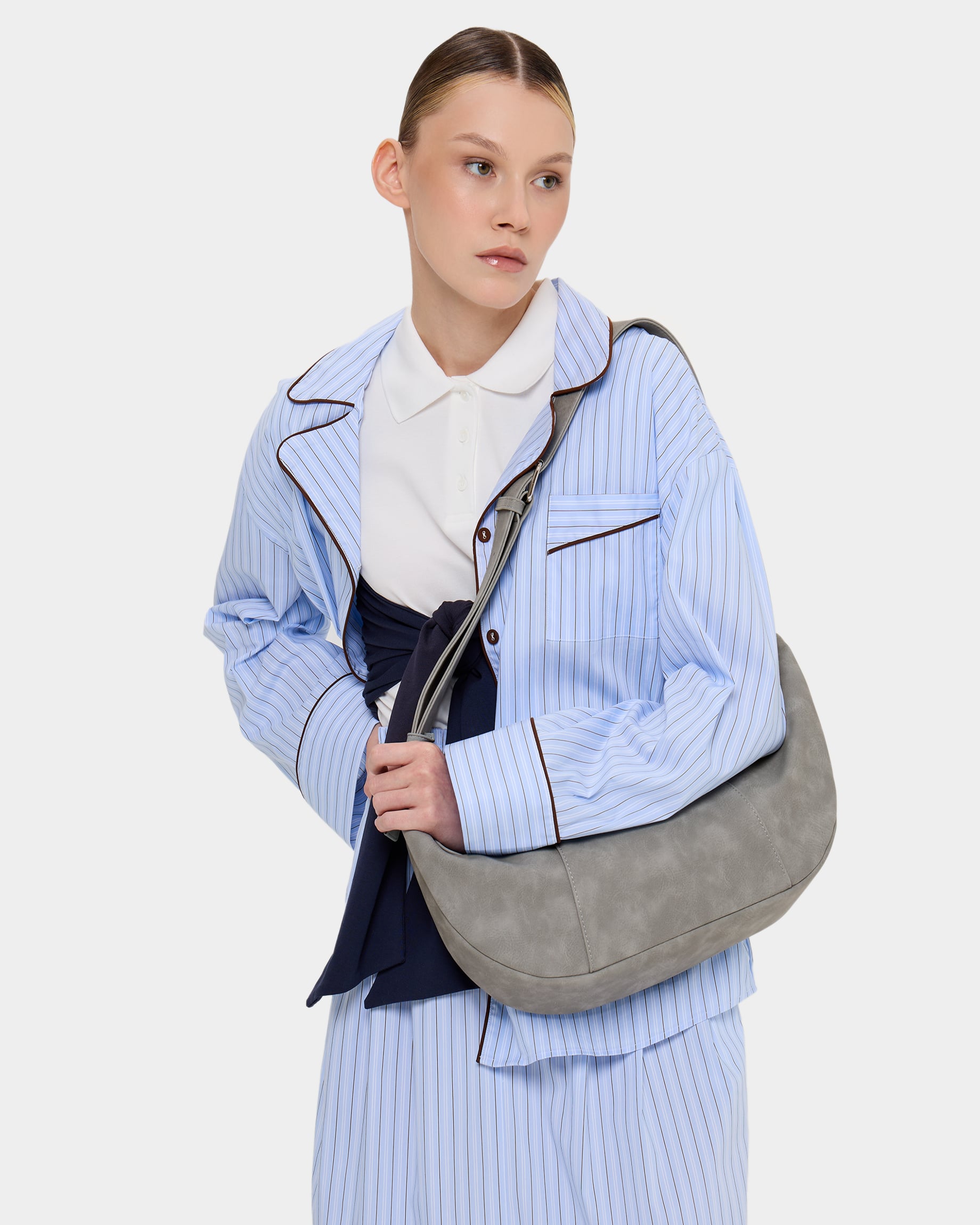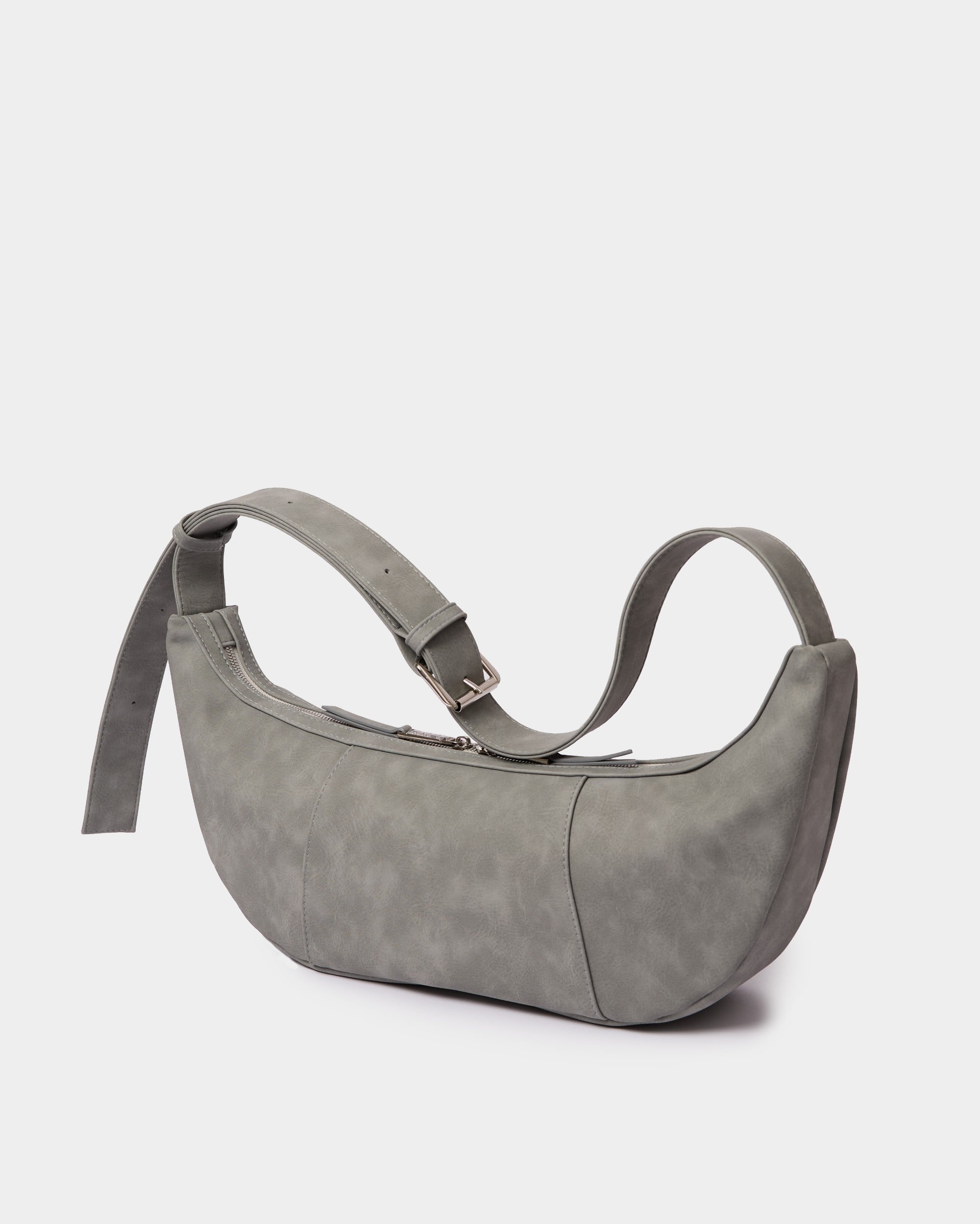 Полукруглая сумка-хобо из замшевой экокожи с широким ремнем