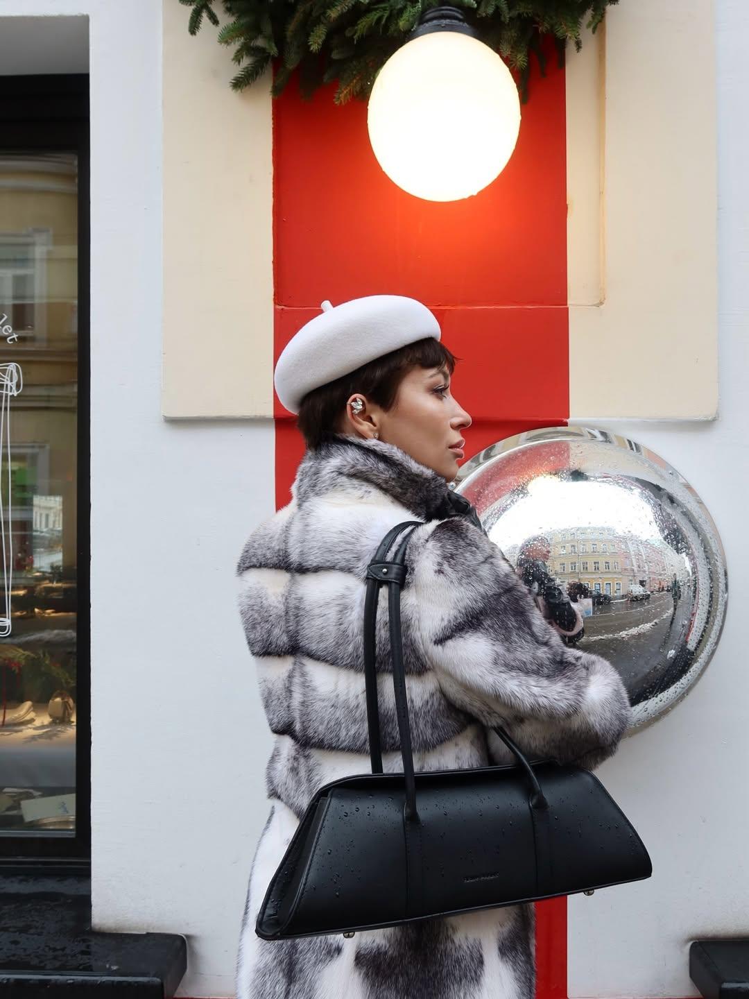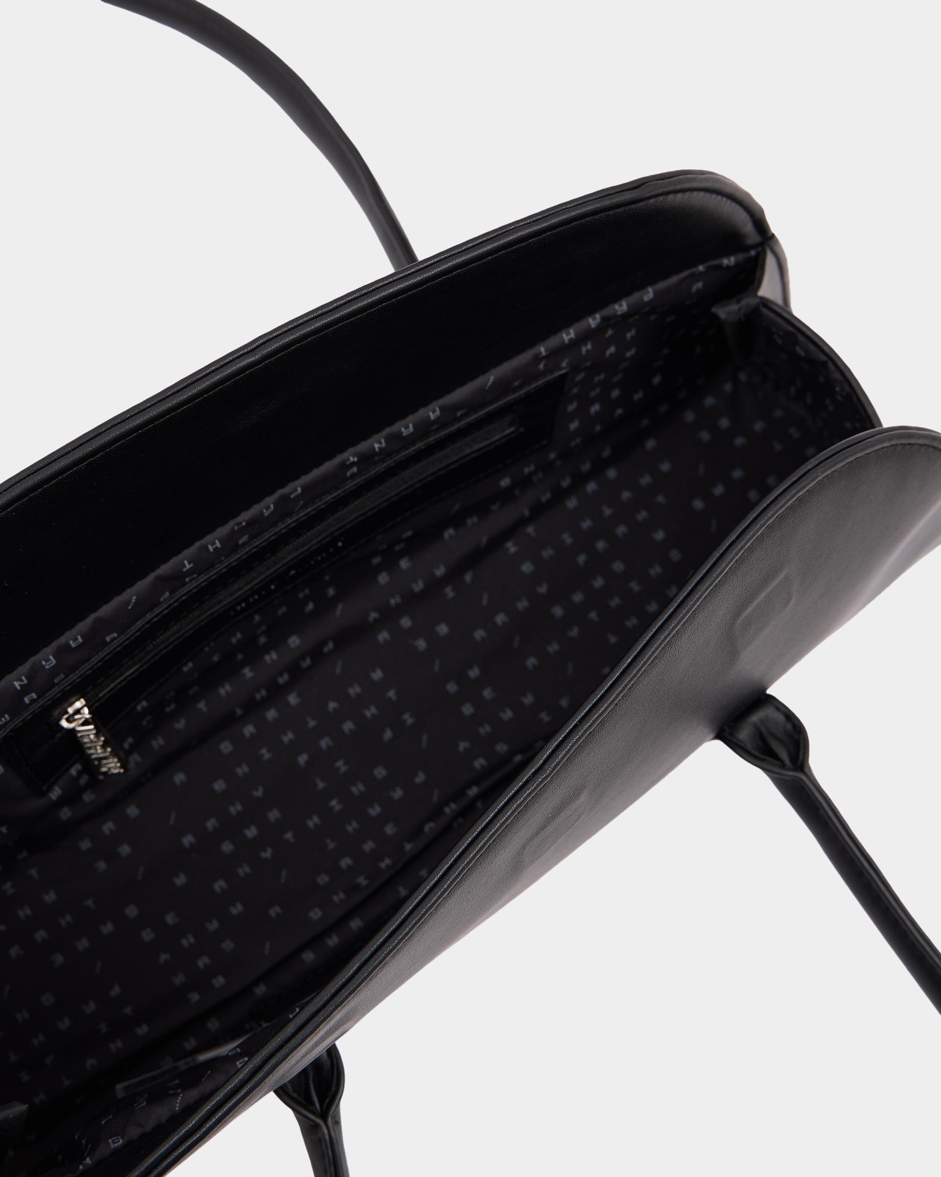Каркасная сумка-такса с тонкими ручками из экокожи в черном цвете